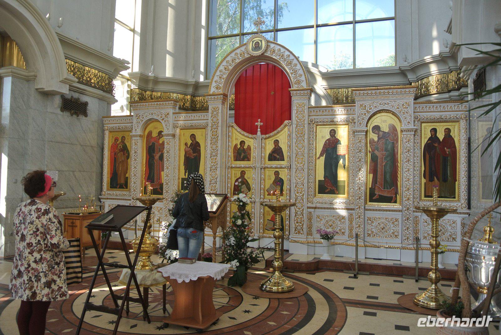 Nach diesem wunderbaren Erlebnis fuhren wir auf dem Freiheitsplatz und besichtigten dort den großen weißen orthodoxen Dom mit seiner goldenen Kuppel die die bei strahlenden Sonnenschein leuchtetet. Auch die daneben stehen kleinere Kirche haben wir von innen gesehen