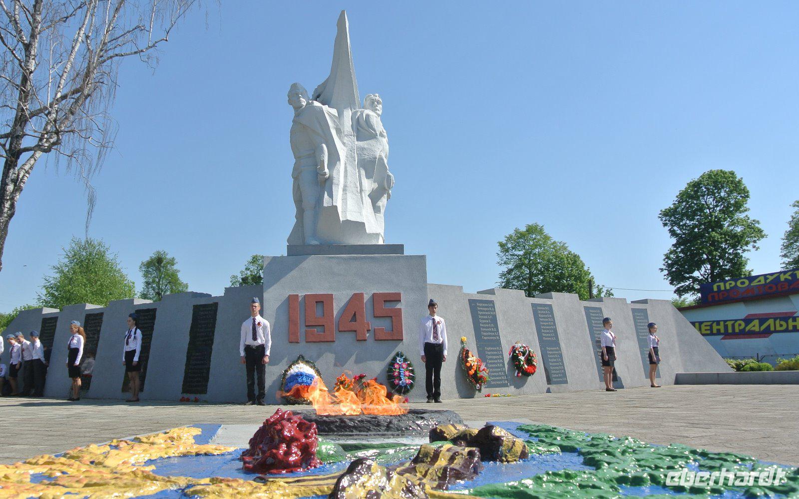 Da an diesem Tage Nationalfeiertag wegen des Endes des II. Weltkrieges am 09.05.1945 war, konnten wir in den Orten in den ne wir durchfuhren viel ZeremonienIn einer kleinen Stadt vor Tilsit machten wir einen Zwischenstopp um die Zeremonien und Wachablösungen der jungen uniformierten Pioniere vor dem großen kriegsdenkmal zu beobachten. Es war ein eindrucksvolles Erlebnis