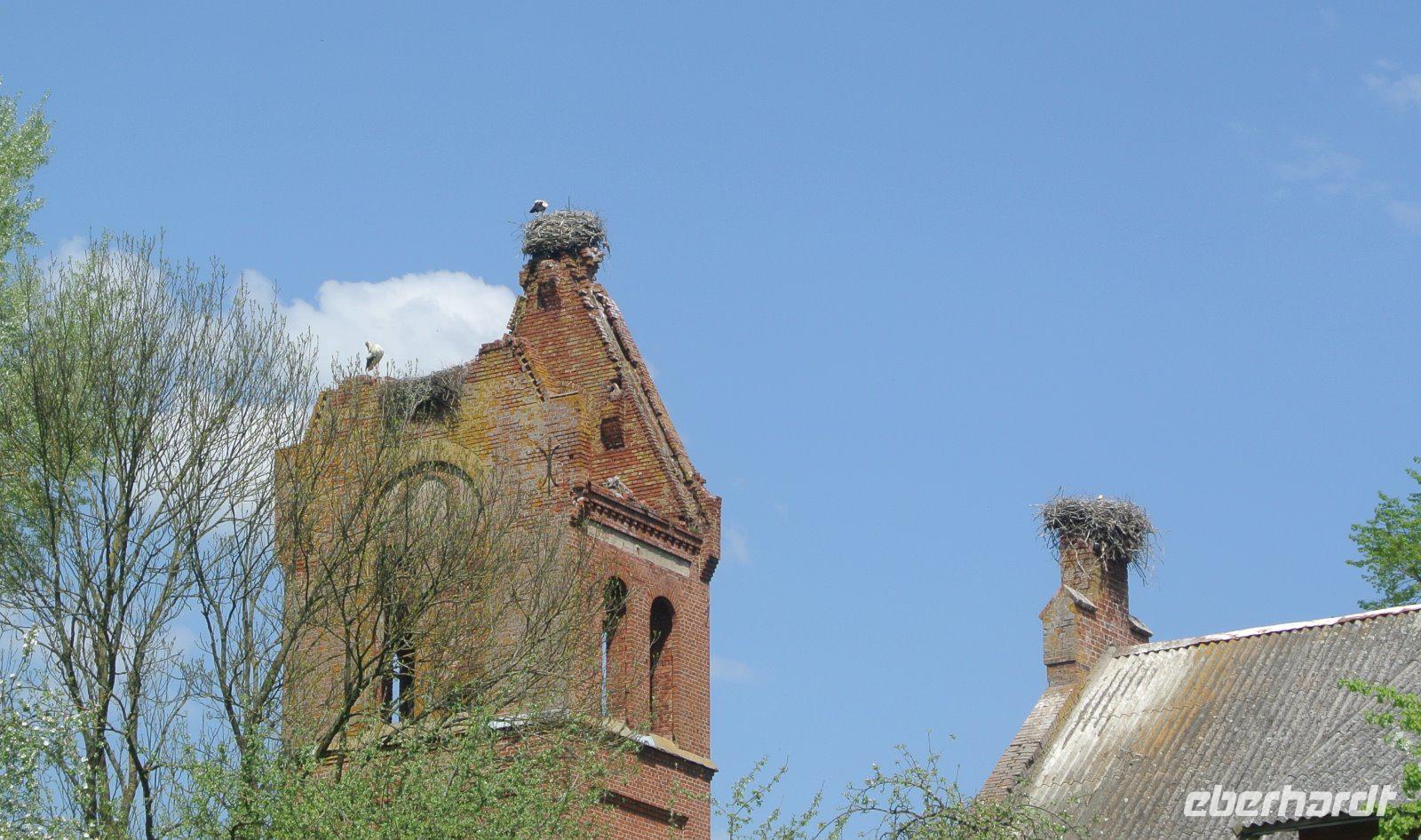 Auf dem Weg nach Gumbinnen machten wir einen Zwischenaufenthalt im „Dorf der Störche" Der Ort machte seinem Beinamen alle Ehre, denn wir konnten viel Nester mit Störchen in Bäumen, auf Dächern und auf dem Kirchturm bewundern