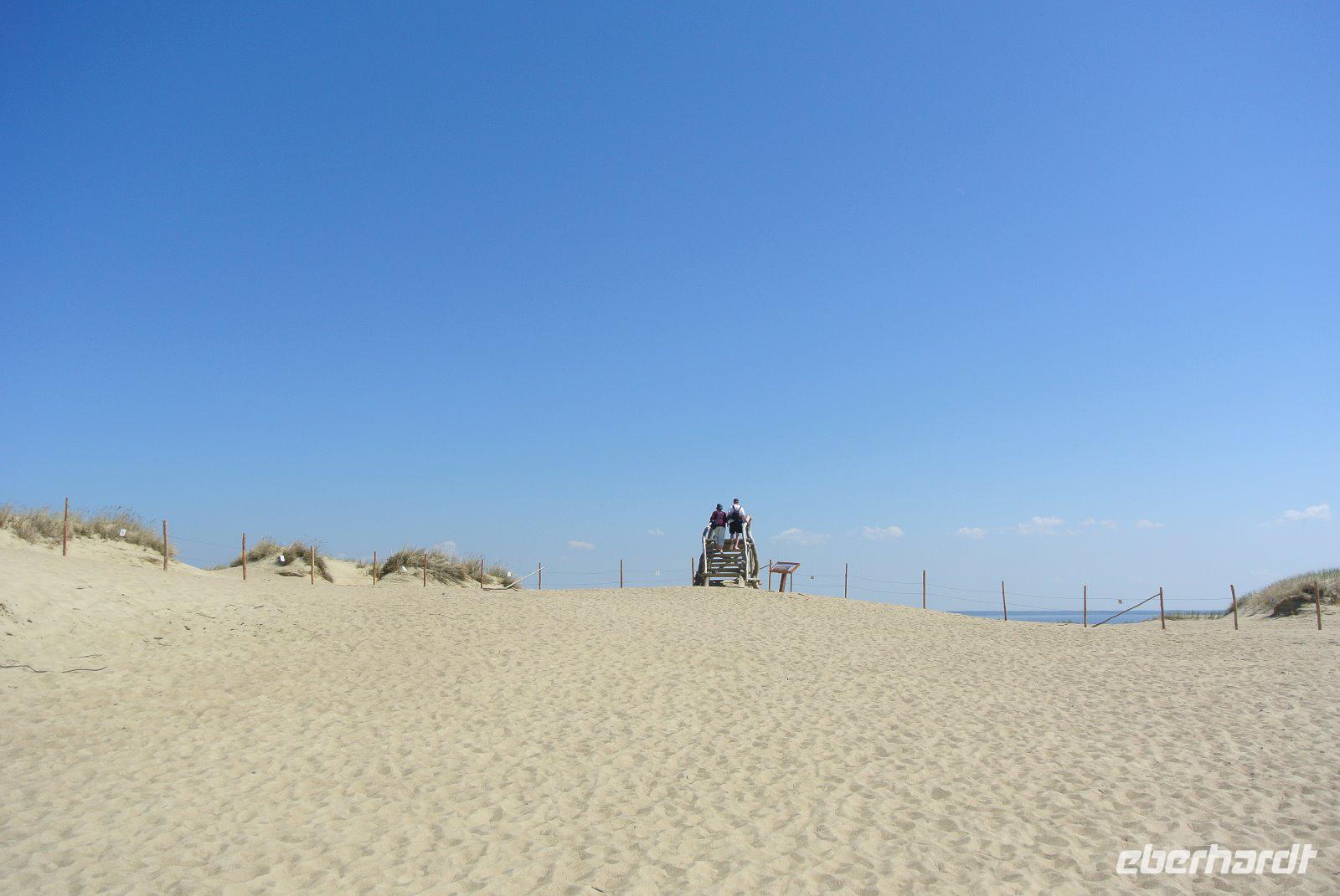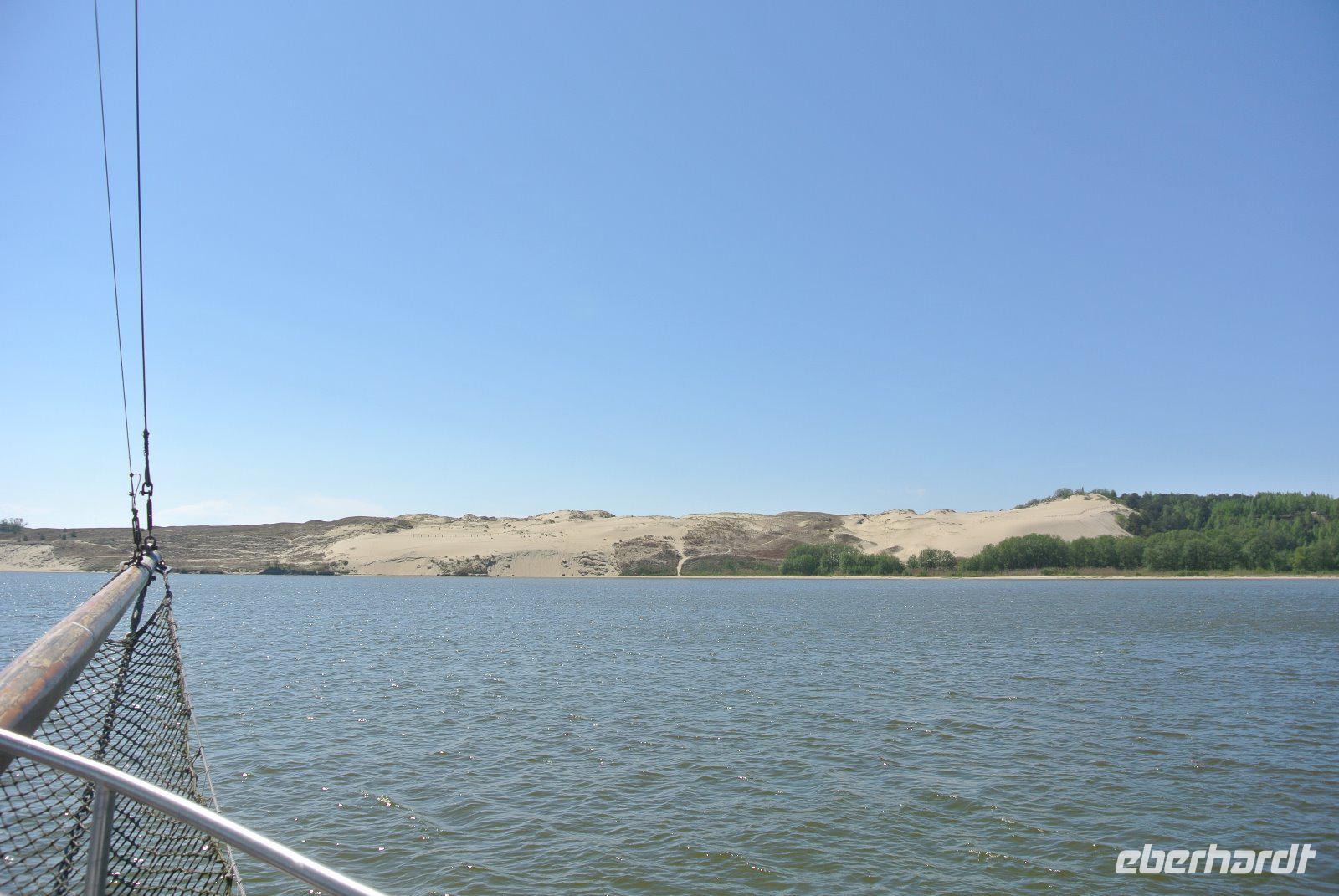 Wir fuhren den gesamten litauischen Teil der Kurischen Nehrung entlang bis zum Fähre am Ende der Nehrungmit der wir in 10 Minuten aufs Festland übersetzten.