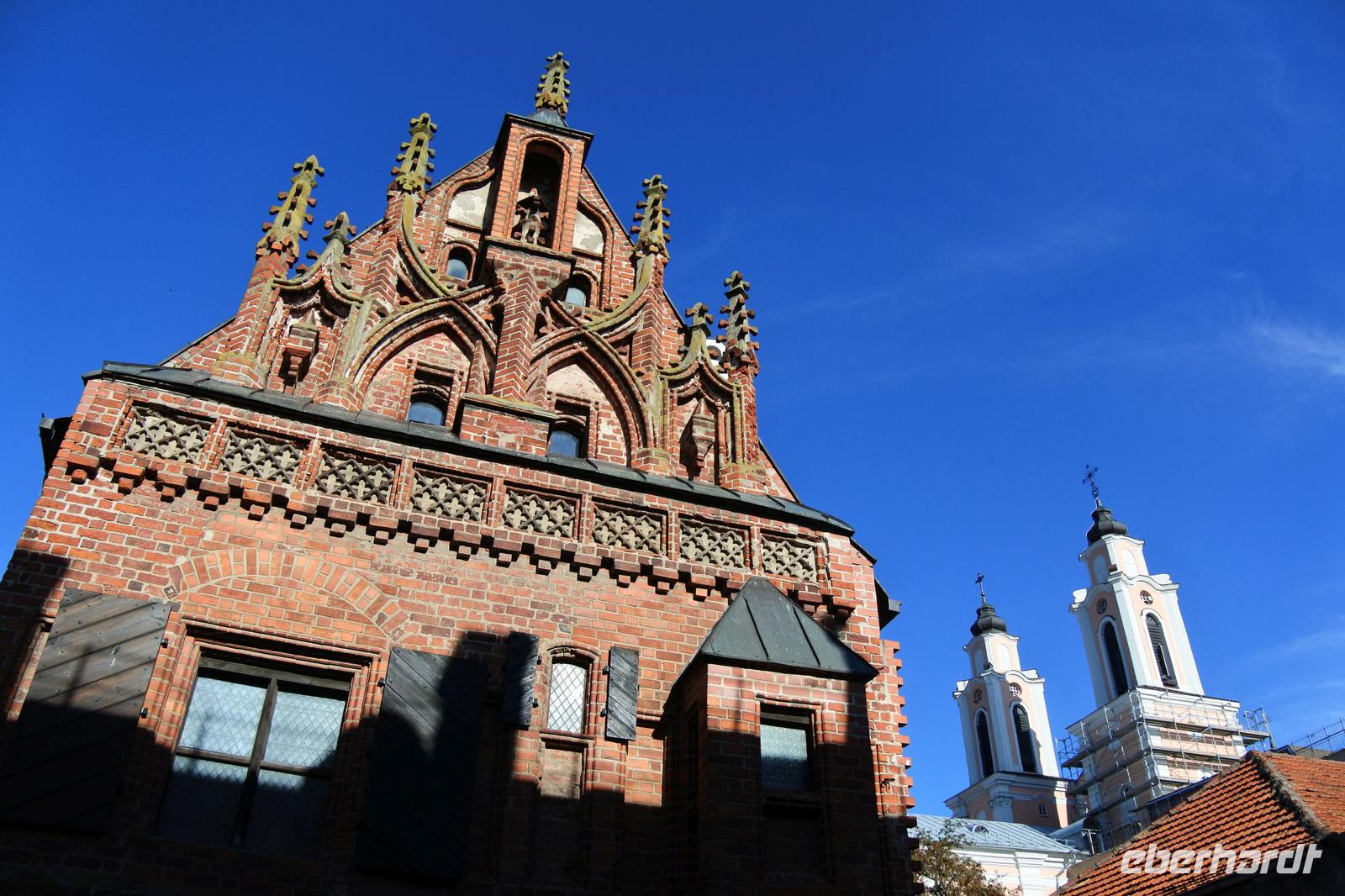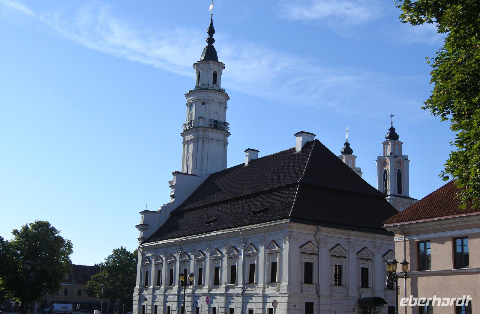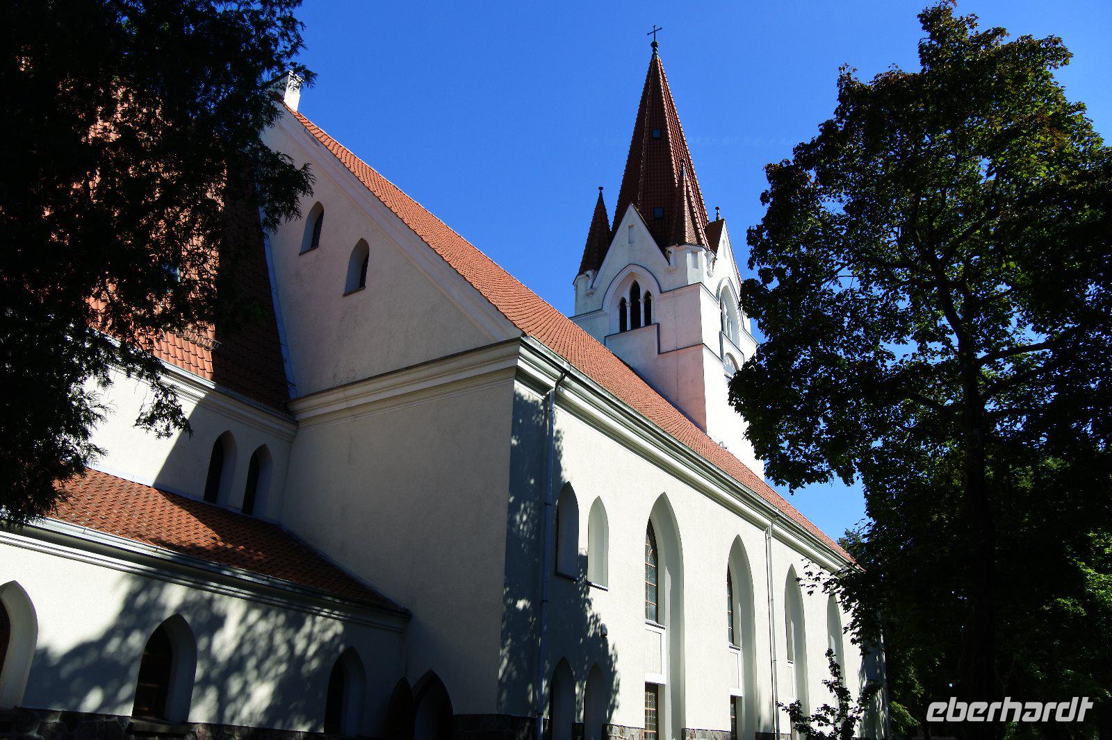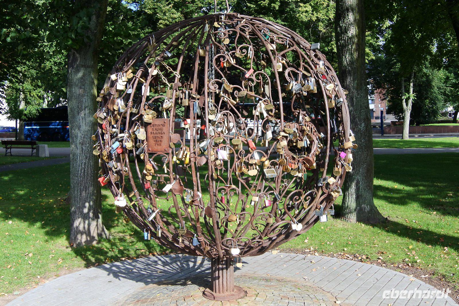 Nach dem Frühstück und dem Kofferladen fuhren wir durch den litauischen Teil der Kurischen Nehrung nach Klaipeda. Von einem Busparkplatz in der Nähe eines Museum-Segelschiffes aus, machten wir von 09:15 bis 10:00 Uhr eine Stadtrundgang mit Anita durch Klaipeda. Am Theaterplatz sangen wir vor vielen anderen Besuchern das Lied „Ännchen von Tharau" vor der Skulptur auf dem Theaterplatz. Danach fuhren wir gegen 11:15 Uhr nach Vente (Windenburger Eck) wo wir von 12:00 bis 12:50 Uhr einen schönen Aufenthalt an der Vogelwarte und dem alten Leuchtturm hatten. Von Vende ging die Fahrt nach Silute (Heydekrug). Von 14:15 - 15:30 Uhr hatten wir zunächst ein Mittagsessen im Hotel DEIMS. Danach besuchten wir von 15:45 - 16:15 Uhr die evangelische Kirche mit ihren eindrucksvollen, großen Wandgemälden. (Moderne Fresken) Diese wurden durch eine fachkundige Mitarbeiterin ausgiebig erklärt. Von Silute ging es gegen 16:15 Uhr über die Autobahn Richtung Kaunas. Nach einer 17:00 - 17:15 WC an einer Raststätte an der Autobahn 80 Km vor Kaunas kamen wir gegen 18:30 Uhr am Best Western Hotel in Kaunas an. Wegen einer großen internationalen Konferenz wurden die Zimmer in dem ursprünglich vorgesehen Park Inn Hotel von der Stadtverwaltung blockiert. Das Best Western Hotel ist ein landestypisch eingerichtetes Hotel mit einer eher rustikalen Atmosphäre. Für den kurzfristig durch die örtliche Agentur vorgenommen Hoteltausch, gab es als „Entschädigung" ein Freigetränk zum Abendessen und eine große Flasche Wodka für jeden Gast. Nach dem Abendessen um 19:30 Uhr machte die Reiseleiterin Anita mit uns einen Abend-Spaziergangdurch die Freiheit Allee einer Prachtstraße in Kaunas.