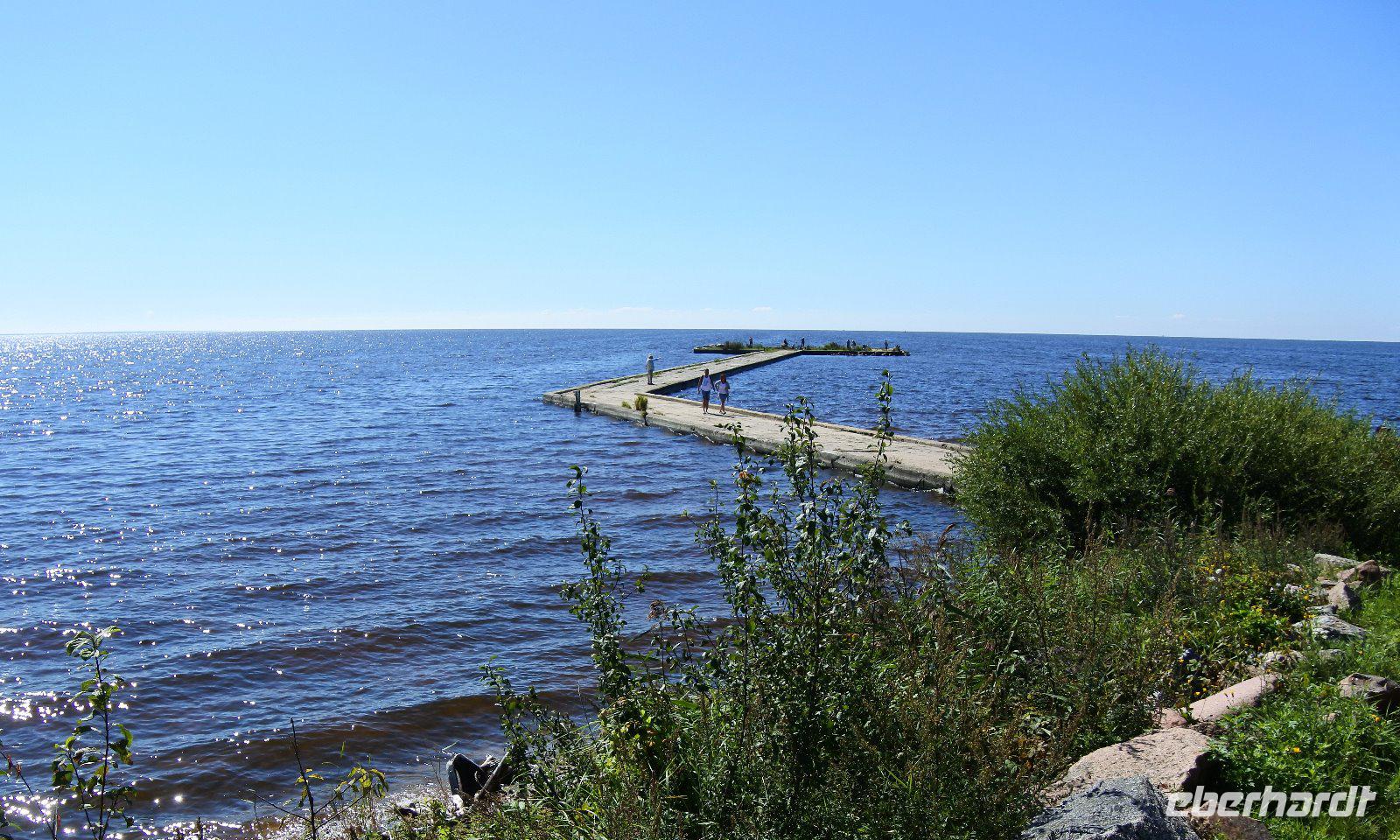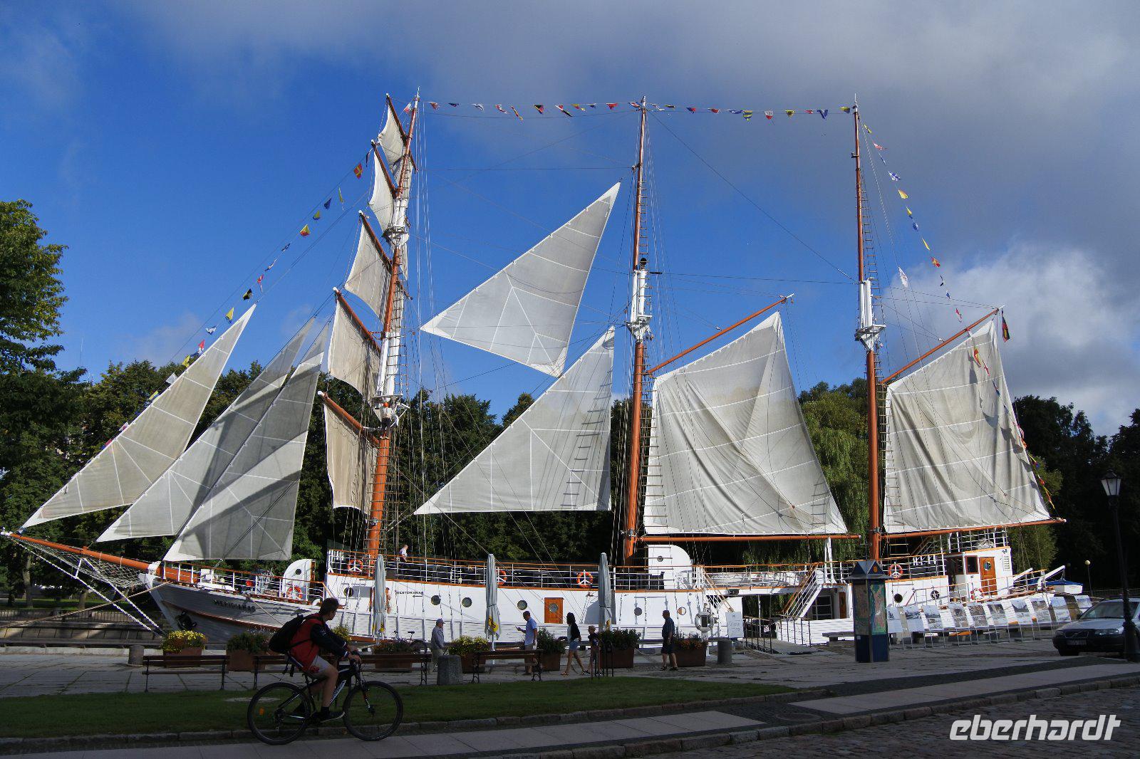 Danach fuhren wir gegen 11:45 Uhr mit dem Bus nach Nidden zurück und hatten von 12:00 - 13.00 Uhr ein Cepelinasessen (litauische Spezialität) im Restaurant Senasis Uostas am Hafen. Von 13:00 - 14:30 Uhr unternahmen wir eine lustige Schifffahrt mit dem Segelschiff Lana bis an die russische Grenze. Gegen 14:45 Uhr fuhren wir mit dem Bus vom Hafen zunächst zu den hohen Dünen in der Nähe von Nidden mit der grandiosen Sonnenuhr auf dem Gipfel einer Düne. Danach fuhren wir von den hohen Dünen zum Thomas Mann Haus und besichtigten das Museum auch von innen. Bis 17:30 Uhr machte Anita noch einen Rundgang mit uns zum alten Friedhof und dem Bernstein-Atelier. Ab 17:30 Uhr hatten wir bis zum Abendessen um 18:30 Uhr Zeit zur freien Verfügung