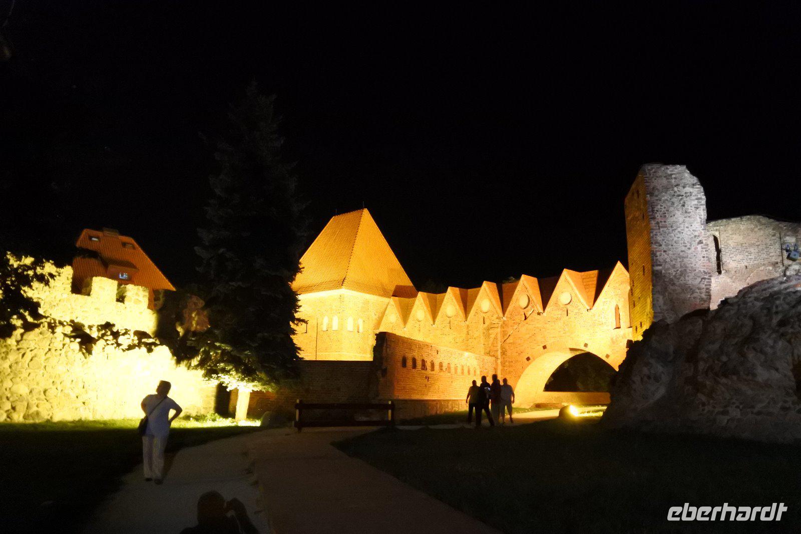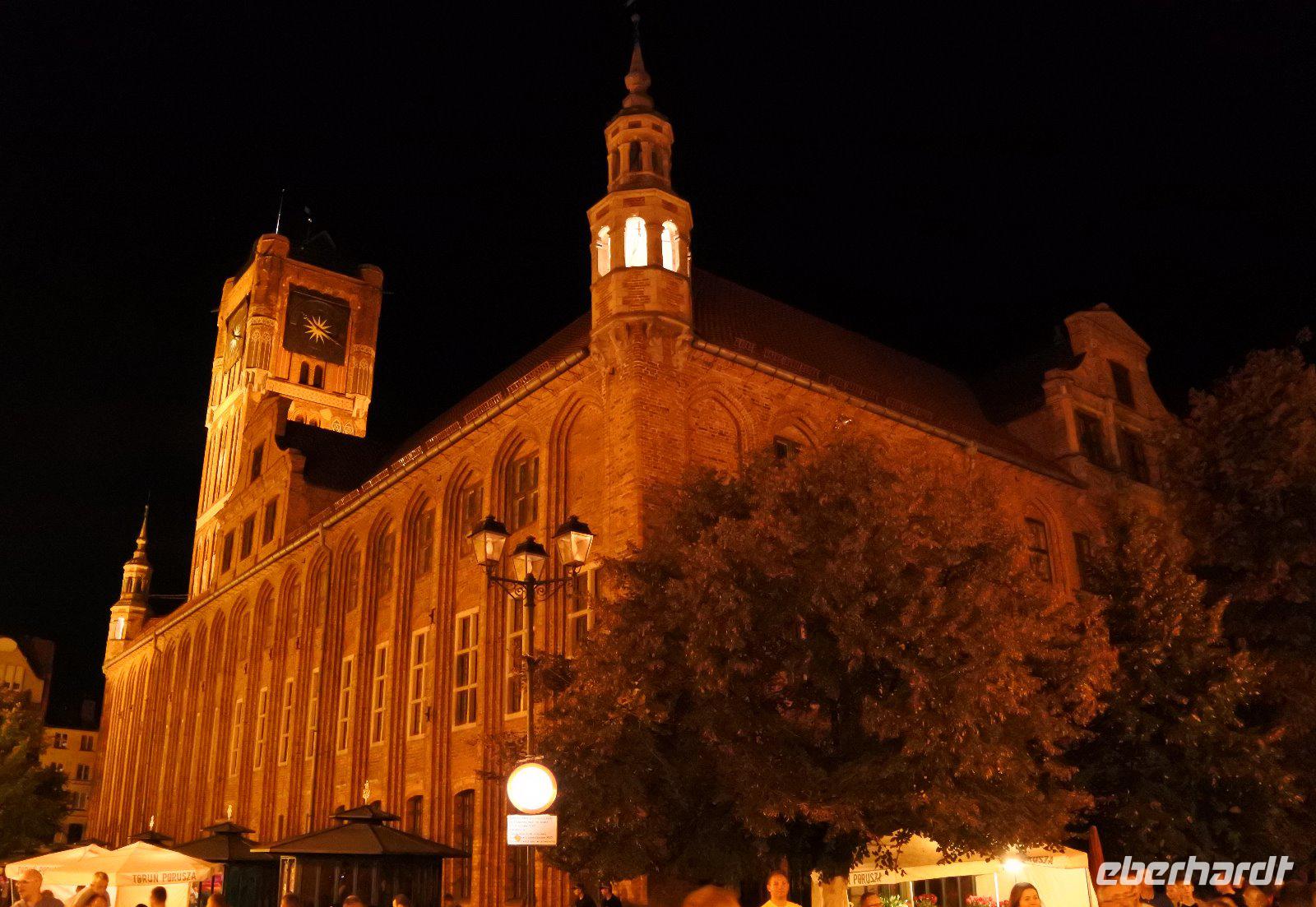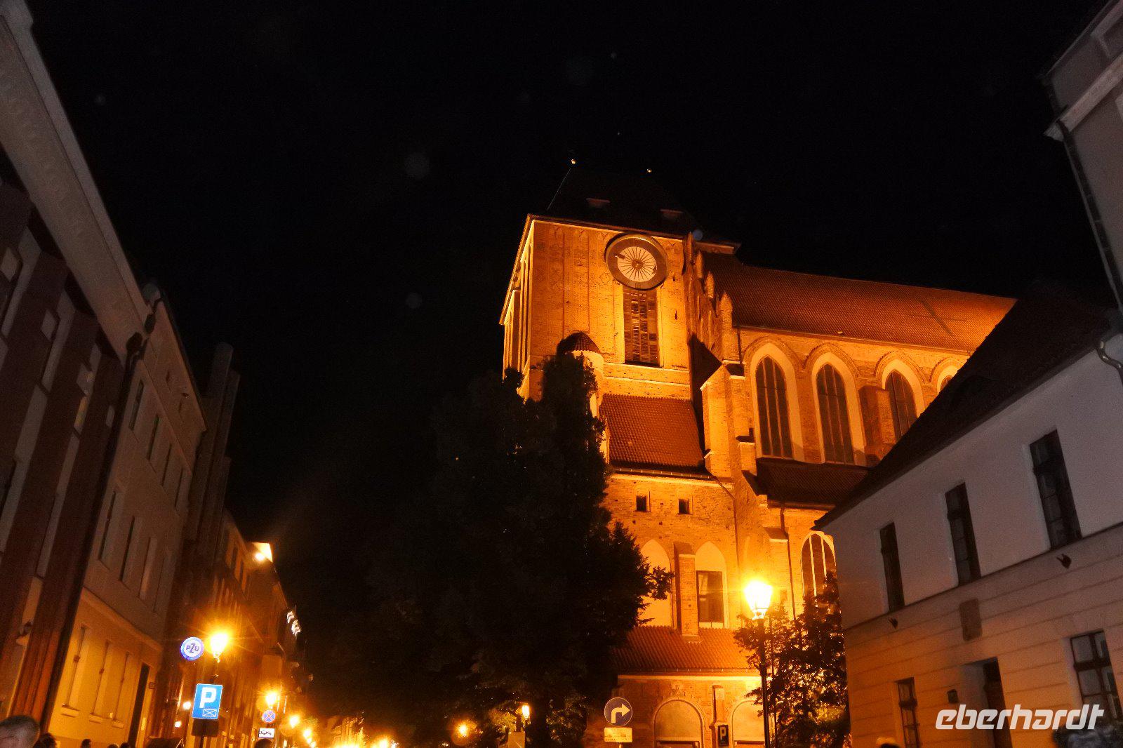 Nach einem gemütlichen und geselligen Abend, ging es am nächsten Morgen nach einem sehr reichhaltigen und sehr guten Frühstücksbuffet zur einer Rundfahrt durch den nördlichen Teil der Masuren. Nach dem Kofferladen in den Bus fuhren wir mit unserer örtlichen Reiseleiterin Malgorzata um 08:00 Uhr zunächst zur Wolfschanze wo wir von 09:00 bis 10:15 eine sehr fachkundige Führung durch einen sehr qualifizierten Führer hatten. 10:25 - 10:55 Uhr war Einkaufen von Mitbringsel im Supermarkt Tesco in Ketrzyn. Danach fuhren wir nach Hl. Linde wo wir pünktlich um 11:15 vor der Wallfahrtskirche ankamen. Zum Orgelkonzert um 11.30 Uhr konnte jeder von uns einen Sitzplatz in der Kirche finden und die Orgel Präsentation bis 11:50 Uhr entspannt genießen. Bis zum Beginn der Messe konnten wir die herrliche Barockkirche noch intensiver besichtigen. Von 12:05 - 12:55 Uhr hatten wir ein Mittagessen mit Pierogi im Restaurant gegenüber der Walfahrtkirche. Gegen 13:15 Uhr war Abfahrt des Busses nach Torun. Nach einer Pause an einer Shell Tankstellehinter bei Olsztyn mit sauberen WCs und einem Bistro von 15:00 - 15:45 kam wir um 19:30 Uhr am Mercure Hotel in Torun an. Die Ankunft war wegen eines Festivals in Torun - wegen dem viele Straßen gesperrt waren und ein dichter Verehr herrschte - um ca. 1 Stunde verspätet. Um 19:45 Uhr gab es ein Abendessen-Buffet im Restaurant. Danach machte der Reiseleiter Gerd mit einigen Gästen einen Abendspaziergang durch die überfüllte aber auch sehr schön beleuchtet Altstadt.