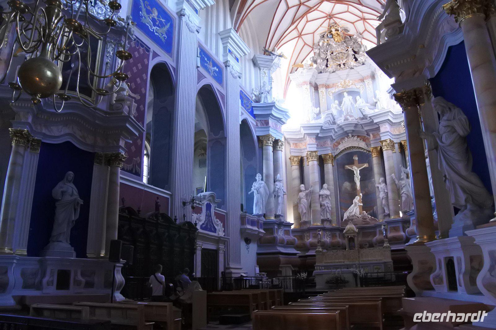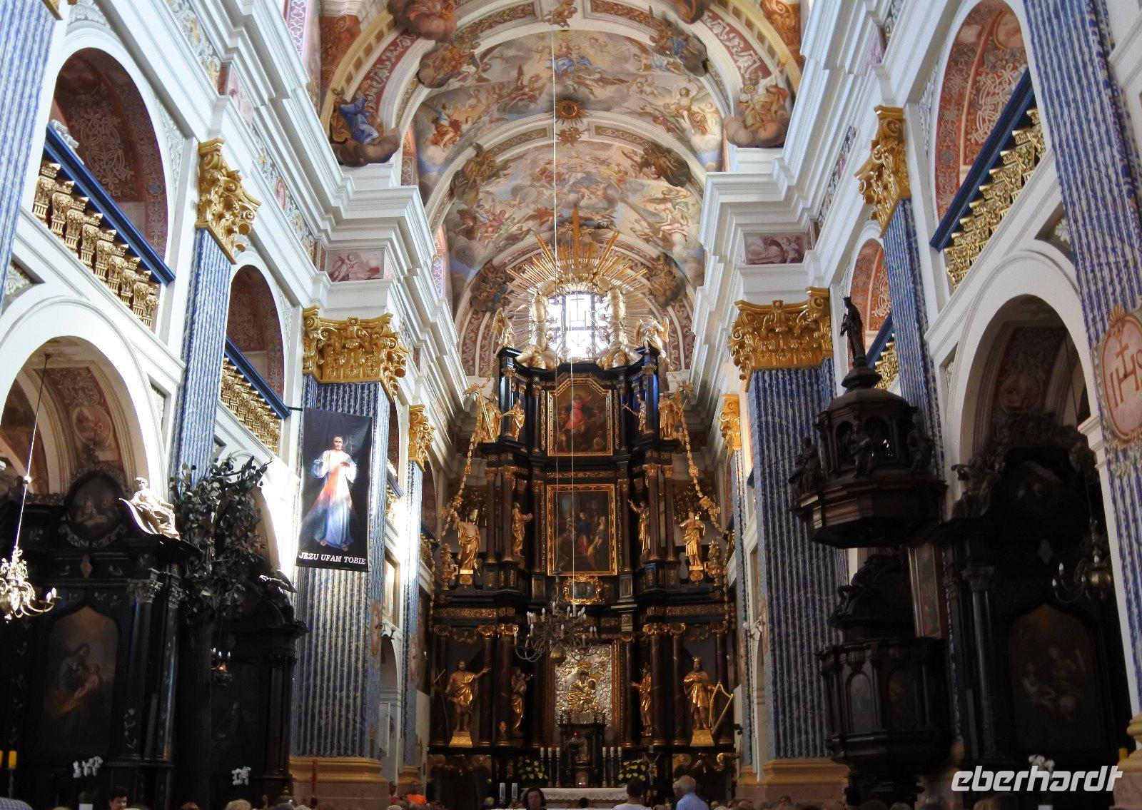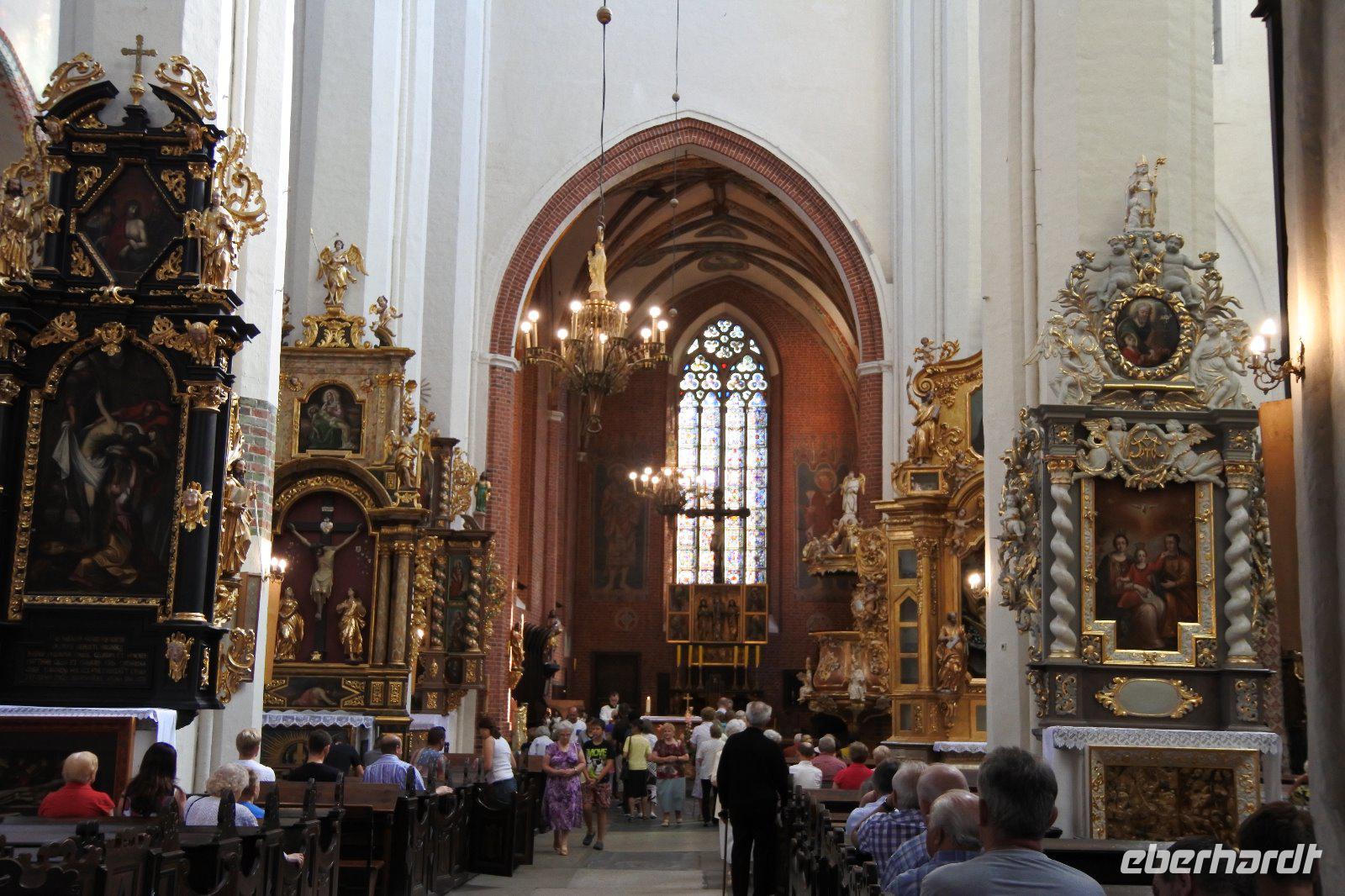 Nach einem gemütlichen und geselligen Abend, ging es am nächsten Morgen nach einem sehr reichhaltigen und sehr guten Frühstücksbuffet zur einer Rundfahrt durch den nördlichen Teil der Masuren. Nach dem Kofferladen in den Bus fuhren wir mit unserer örtlichen Reiseleiterin Malgorzata um 08:00 Uhr zunächst zur Wolfschanze wo wir von 09:00 bis 10:15 eine sehr fachkundige Führung durch einen sehr qualifizierten Führer hatten. 10:25 - 10:55 Uhr war Einkaufen von Mitbringsel im Supermarkt Tesco in Ketrzyn. Danach fuhren wir nach Hl. Linde wo wir pünktlich um 11:15 vor der Wallfahrtskirche ankamen. Zum Orgelkonzert um 11.30 Uhr konnte jeder von uns einen Sitzplatz in der Kirche finden und die Orgel Präsentation bis 11:50 Uhr entspannt genießen. Bis zum Beginn der Messe konnten wir die herrliche Barockkirche noch intensiver besichtigen. Von 12:05 - 12:55 Uhr hatten wir ein Mittagessen mit Pierogi im Restaurant gegenüber der Walfahrtkirche. Gegen 13:15 Uhr war Abfahrt des Busses nach Torun. Nach einer Pause an einer Shell Tankstellehinter bei Olsztyn mit sauberen WCs und einem Bistro von 15:00 - 15:45 kam wir um 19:30 Uhr am Mercure Hotel in Torun an. Die Ankunft war wegen eines Festivals in Torun - wegen dem viele Straßen gesperrt waren und ein dichter Verehr herrschte - um ca. 1 Stunde verspätet. Um 19:45 Uhr gab es ein Abendessen-Buffet im Restaurant. Danach machte der Reiseleiter Gerd mit einigen Gästen einen Abendspaziergang durch die überfüllte aber auch sehr schön beleuchtet Altstadt.