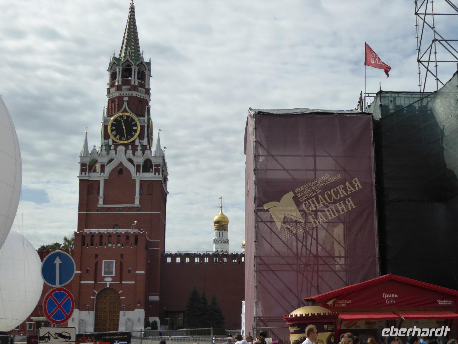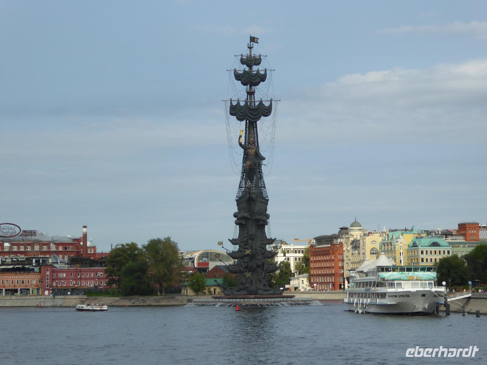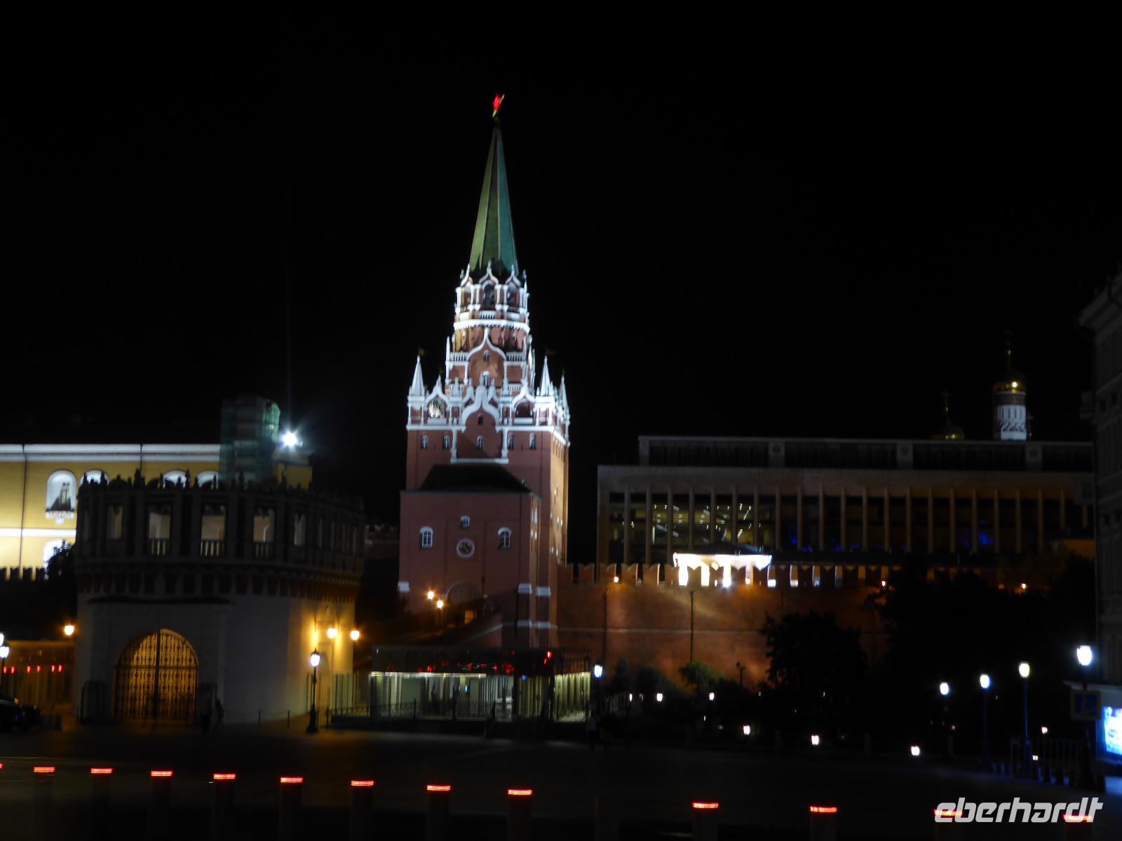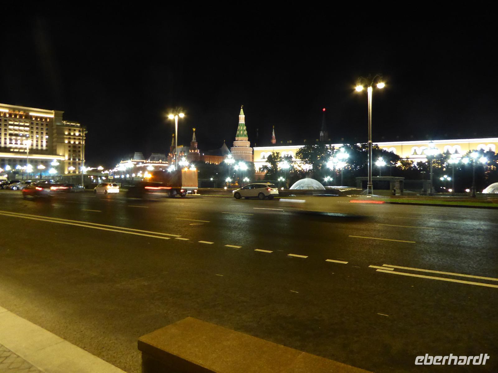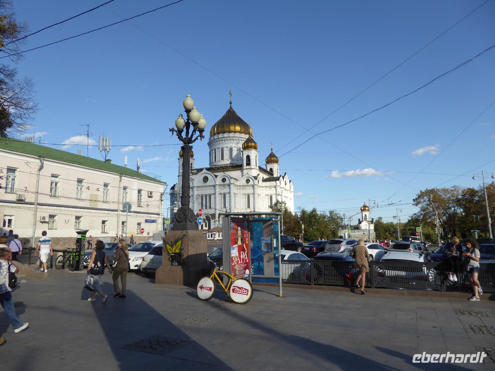 Der Tag beginnt mit einem gemütlichen Frühstück, gefolgt von einem Spaziergang zum Neuen Arbat. Wir erobern Moskau zu Fuß. Vorbei an hohen Wohnhäusern zwischen denen sich eine kleine Kirche mit grünen Zwiebelchen duckt, geht es bei schönstem Sonnenschein durch die Stadt. Hier eine bemalte Wand, dort ein blumengeschmückter Bogen, ein Souvenirgeschäft am anderen lockt uns, aber Valentina treibt uns an. Sie hat viel vor mit uns. Nun geht es in den Untergrund. Valentina hat die Fahrkarten gekauft und schleust uns durch die Schranke. Mit der Rolltreppe geht es steil Berg ab. Valentina ruft uns laut zu, wieviele Stationen wir fahren und wann wir wieder aussteigen müssen. Ein U-Bahnhof ist schöner als der andere. Ein Traum für jedes Fotografenherz. Irgendwann fahren wir wieder mit der Rolltreppe steil bergauf und sind in der Nähe vom Roten Platz. Wir spazieren durch das GUM, das allseits bekannte Kaufhaus Moskaus. Selbst die Toilette lädt zum Fotografieren ein. Der Rote Platz ist gesperrt. Es findet derzeit ein Musikfestival statt und große Tribühnen sind aufgebaut. So können wir Kreml und Basiliuskathedrale nur von Weitem bewundern. Valentina scheucht uns durch das Auferstehungstor Richtung Wachablösung, die wir auch pünktlich erreichen. Weiter geht es zum Pferdespringbrunnen am Alexandergarten und zum Mittagessen in einem ukrainischen Restaurant. Das Essen schmeckt hervorragend, wenn auch der schmucke Kellner nicht bereit ist, sich für unsere Fotoalben ablichten zu lassen. Am Nachmittag bewundern wir die Stadt noch einmal von der Wasserseite aus. Eine Schifffahrt auf der Moskwa rundet den Tag ab. Noch einmal wird der Tisch für uns reichlich gedeckt und dann fahren wir mit der Bahn zum Flughafen. So vermeiden wir es, in den Feierabendstau zu geraten und gemütlich ist es auch. Am Flughafen verabschieden wir uns von Valentina. Über Nacht fliegen wir nach Irkutsk. Baikalsee - wir kommen.