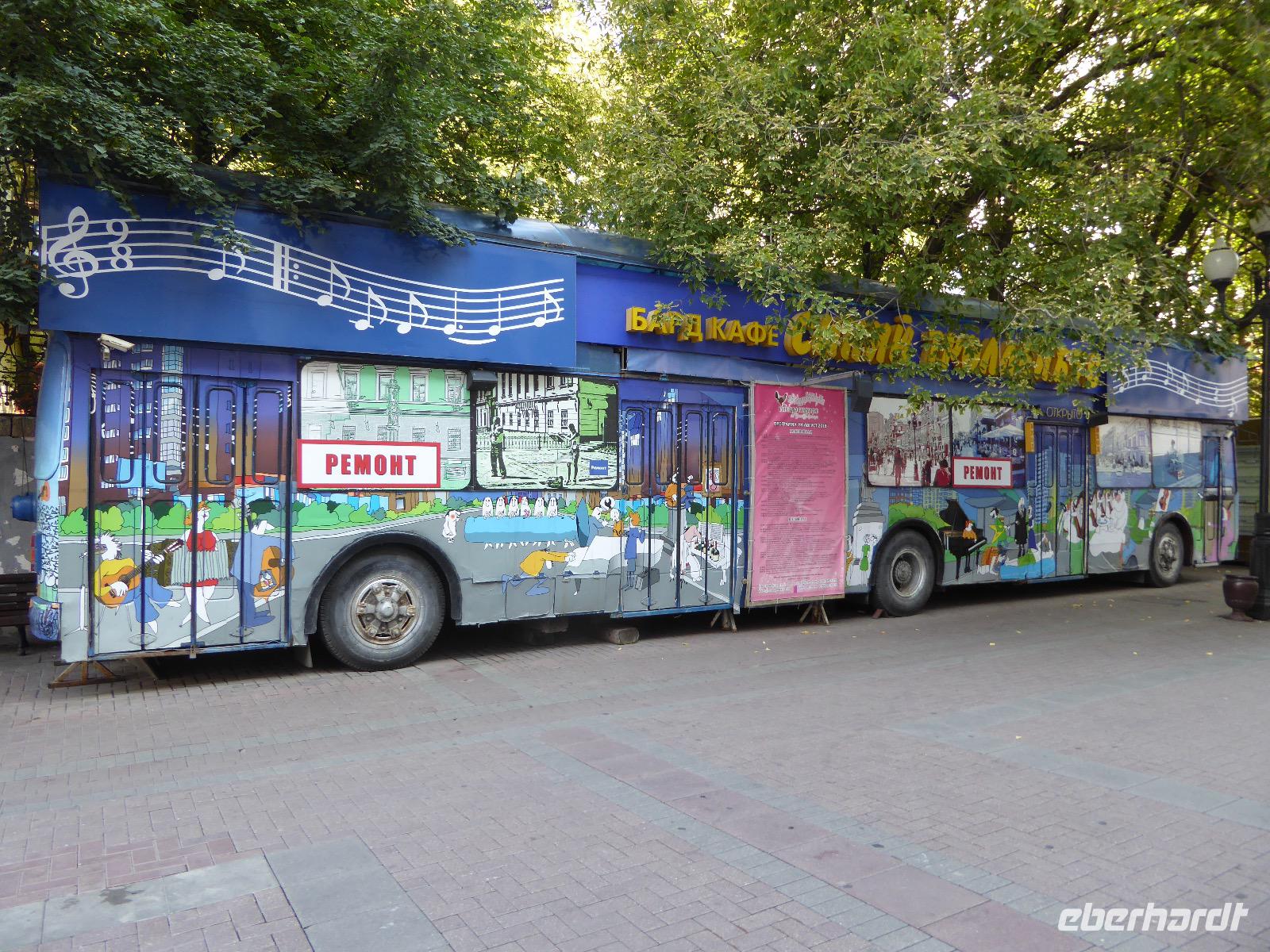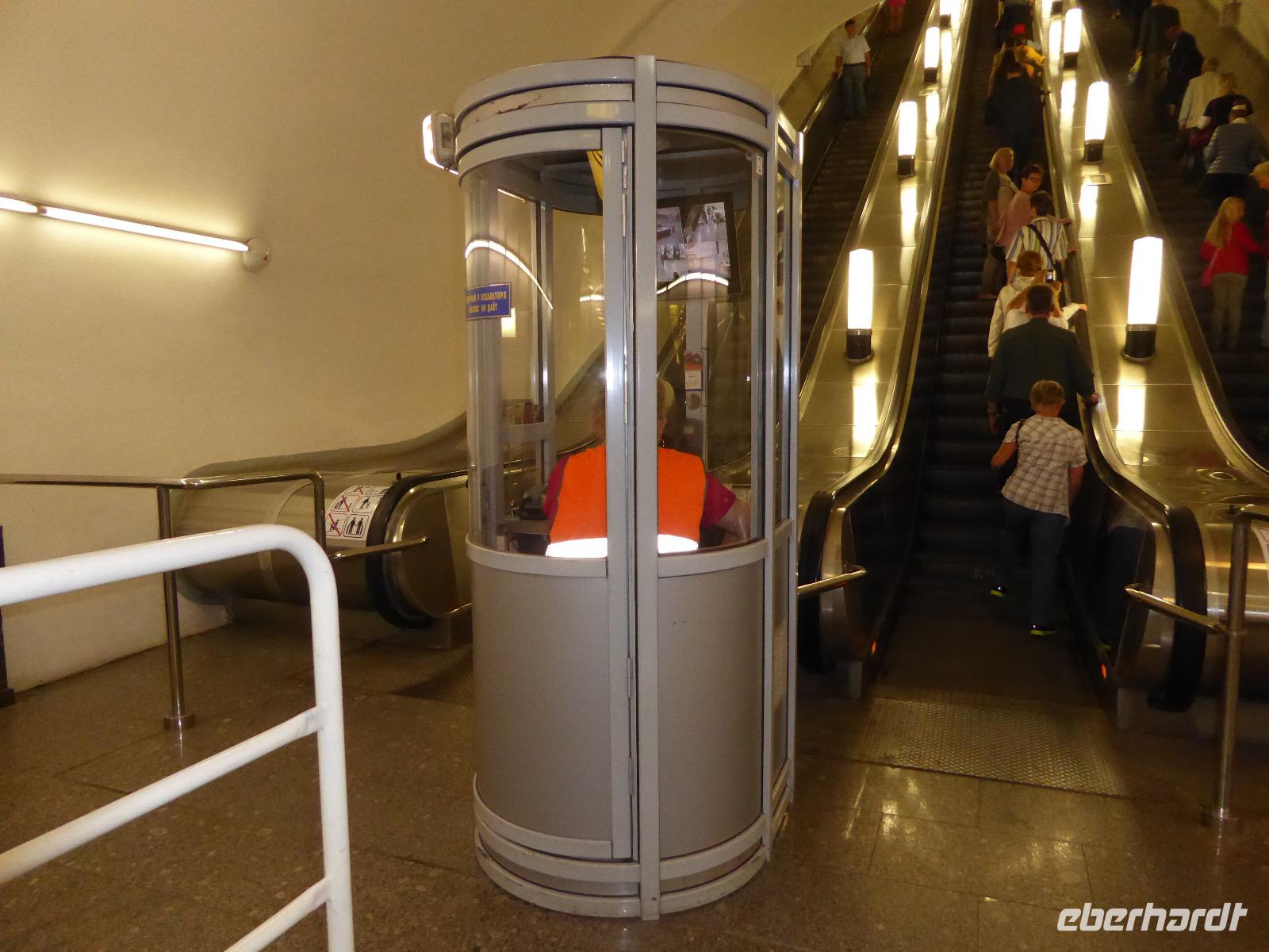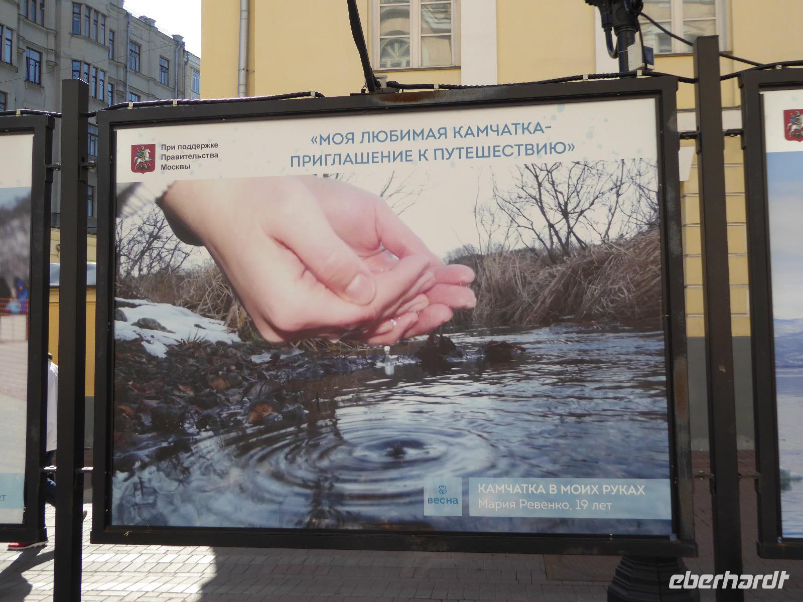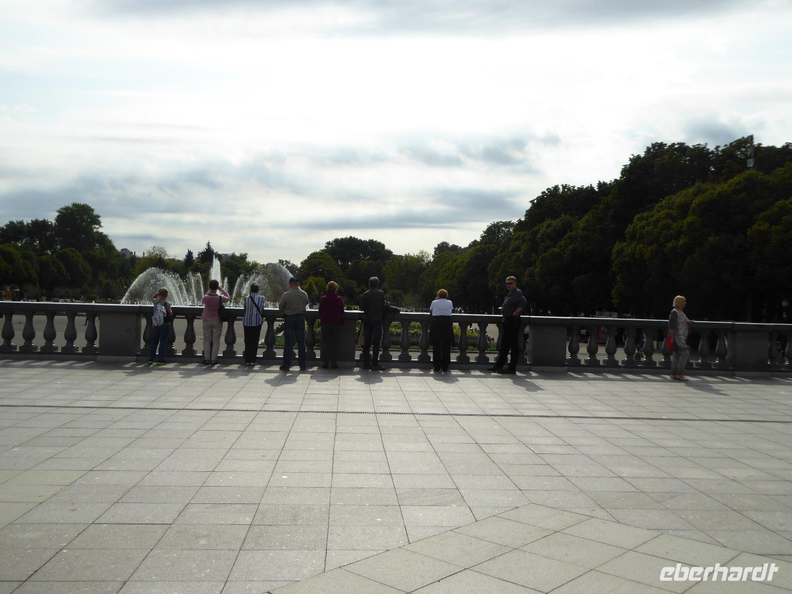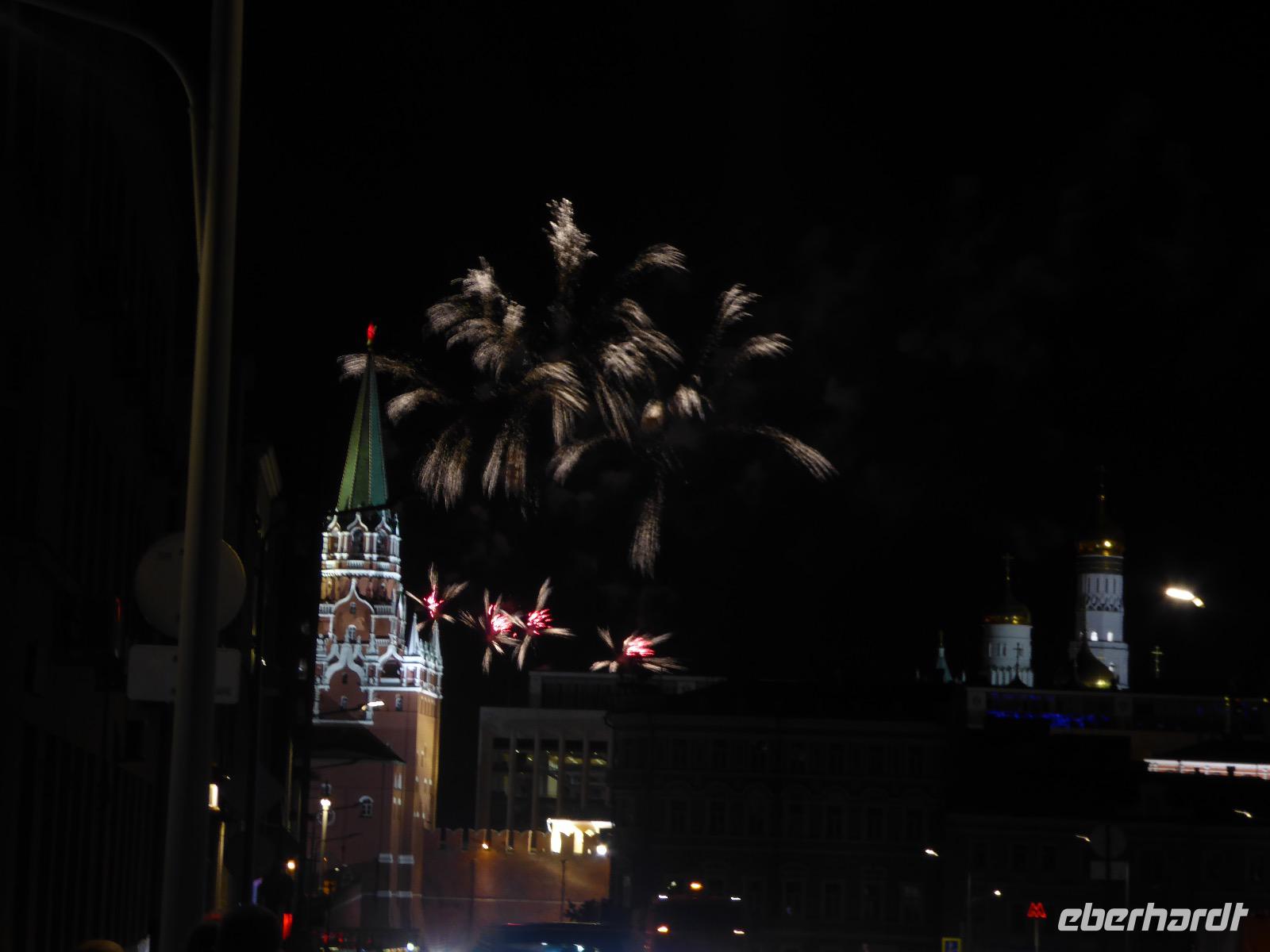 Der Tag beginnt mit einem gemütlichen Frühstück, gefolgt von einem Spaziergang zum Neuen Arbat. Wir erobern Moskau zu Fuß. Vorbei an hohen Wohnhäusern zwischen denen sich eine kleine Kirche mit grünen Zwiebelchen duckt, geht es bei schönstem Sonnenschein durch die Stadt. Hier eine bemalte Wand, dort ein blumengeschmückter Bogen, ein Souvenirgeschäft am anderen lockt uns, aber Valentina treibt uns an. Sie hat viel vor mit uns. Nun geht es in den Untergrund. Valentina hat die Fahrkarten gekauft und schleust uns durch die Schranke. Mit der Rolltreppe geht es steil Berg ab. Valentina ruft uns laut zu, wieviele Stationen wir fahren und wann wir wieder aussteigen müssen. Ein U-Bahnhof ist schöner als der andere. Ein Traum für jedes Fotografenherz. Irgendwann fahren wir wieder mit der Rolltreppe steil bergauf und sind in der Nähe vom Roten Platz. Wir spazieren durch das GUM, das allseits bekannte Kaufhaus Moskaus. Selbst die Toilette lädt zum Fotografieren ein. Der Rote Platz ist gesperrt. Es findet derzeit ein Musikfestival statt und große Tribühnen sind aufgebaut. So können wir Kreml und Basiliuskathedrale nur von Weitem bewundern. Valentina scheucht uns durch das Auferstehungstor Richtung Wachablösung, die wir auch pünktlich erreichen. Weiter geht es zum Pferdespringbrunnen am Alexandergarten und zum Mittagessen in einem ukrainischen Restaurant. Das Essen schmeckt hervorragend, wenn auch der schmucke Kellner nicht bereit ist, sich für unsere Fotoalben ablichten zu lassen. Am Nachmittag bewundern wir die Stadt noch einmal von der Wasserseite aus. Eine Schifffahrt auf der Moskwa rundet den Tag ab. Noch einmal wird der Tisch für uns reichlich gedeckt und dann fahren wir mit der Bahn zum Flughafen. So vermeiden wir es, in den Feierabendstau zu geraten und gemütlich ist es auch. Am Flughafen verabschieden wir uns von Valentina. Über Nacht fliegen wir nach Irkutsk. Baikalsee - wir kommen.