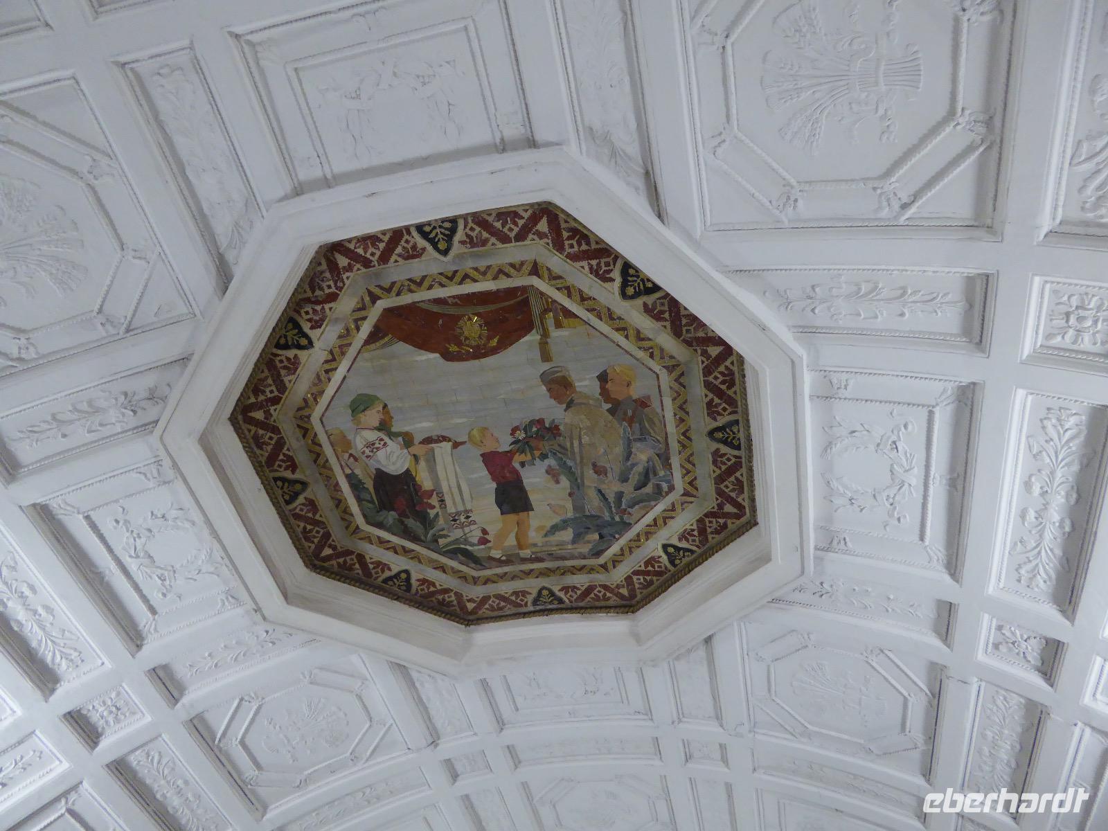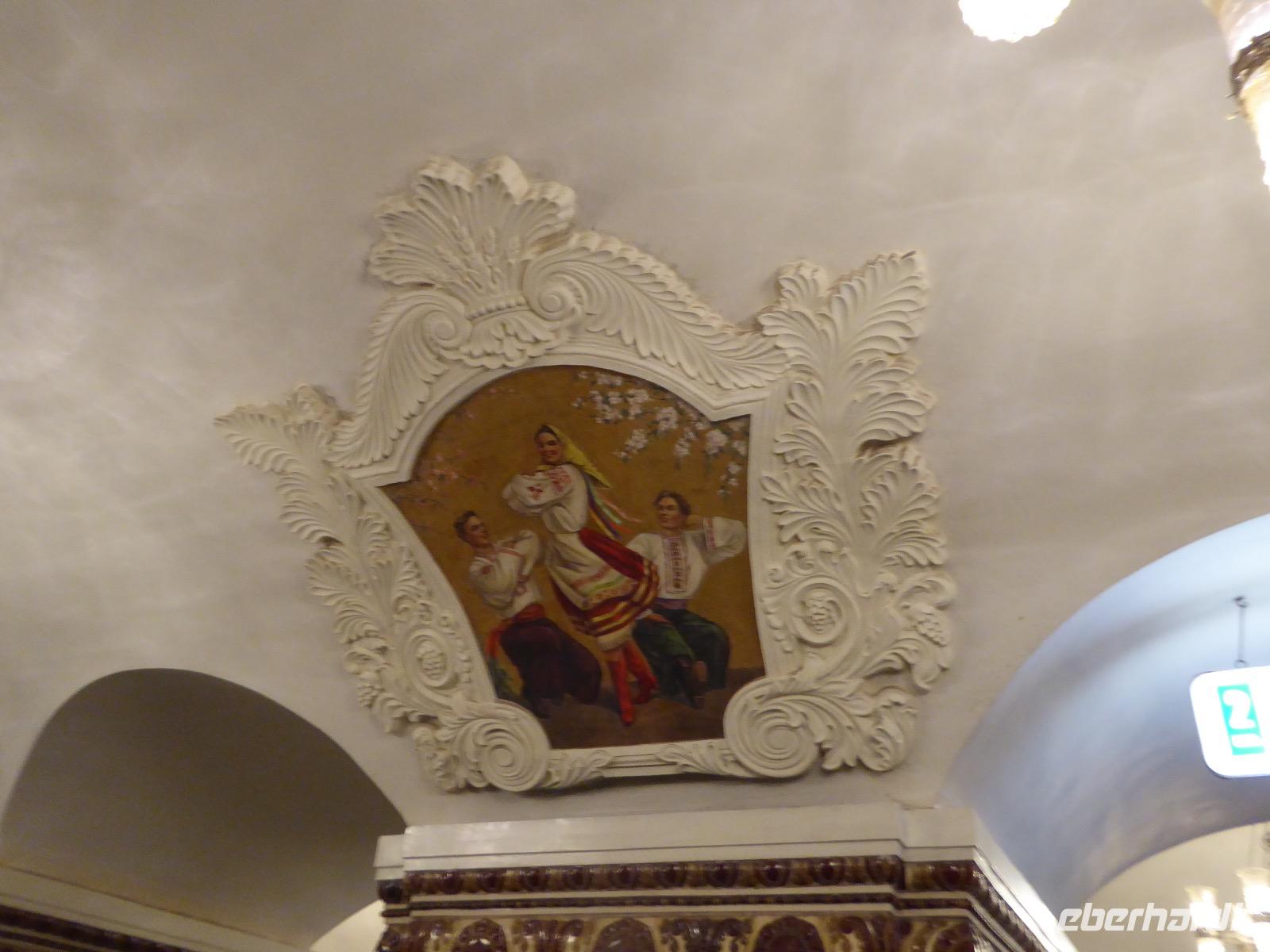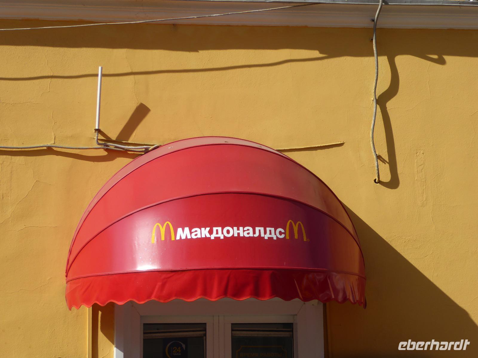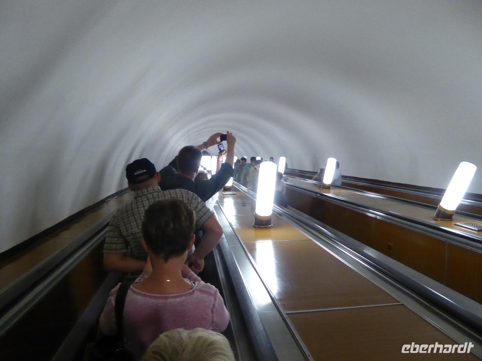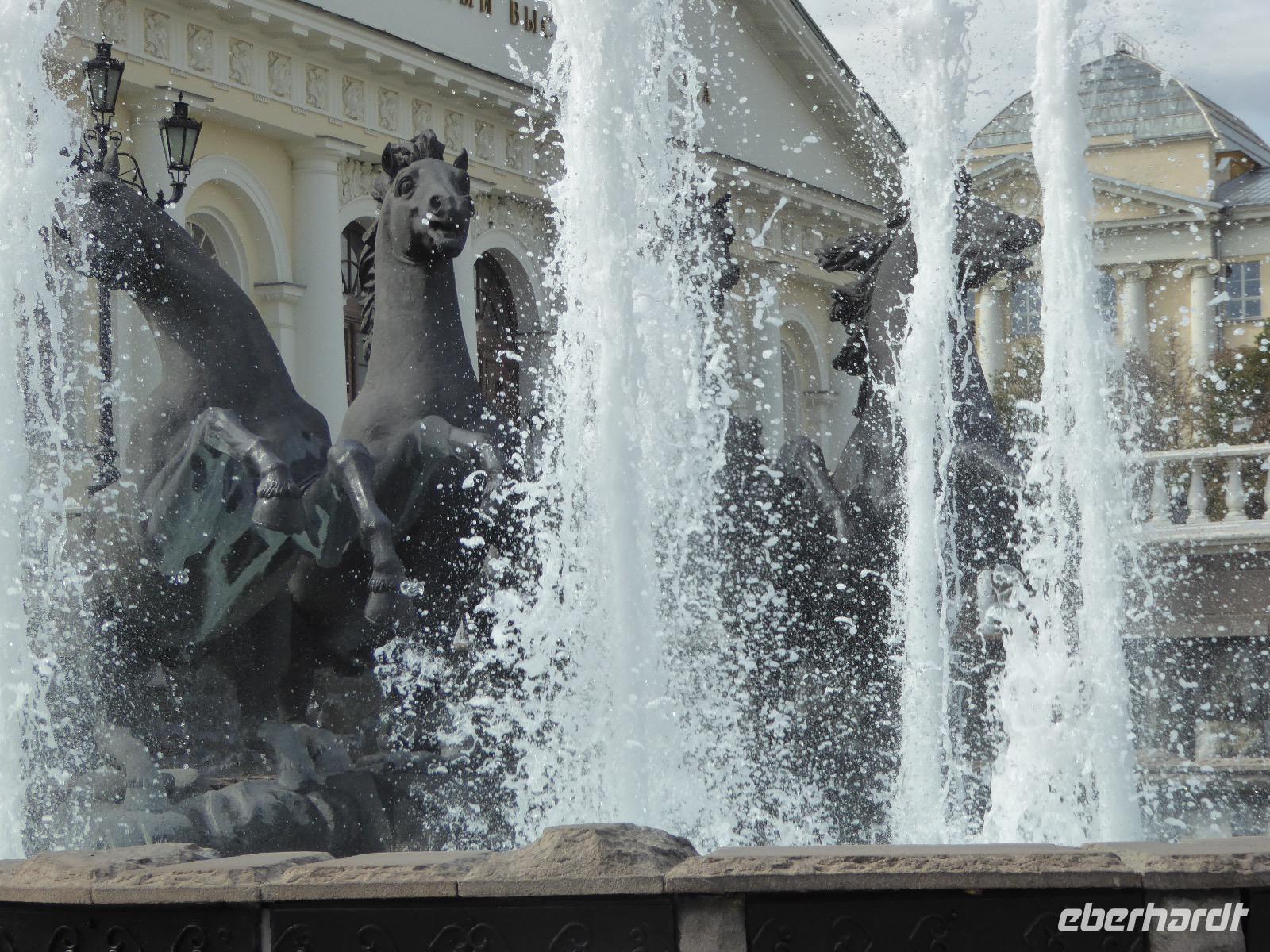 Der Tag beginnt mit einem gemütlichen Frühstück, gefolgt von einem Spaziergang zum Neuen Arbat. Wir erobern Moskau zu Fuß. Vorbei an hohen Wohnhäusern zwischen denen sich eine kleine Kirche mit grünen Zwiebelchen duckt, geht es bei schönstem Sonnenschein durch die Stadt. Hier eine bemalte Wand, dort ein blumengeschmückter Bogen, ein Souvenirgeschäft am anderen lockt uns, aber Valentina treibt uns an. Sie hat viel vor mit uns. Nun geht es in den Untergrund. Valentina hat die Fahrkarten gekauft und schleust uns durch die Schranke. Mit der Rolltreppe geht es steil Berg ab. Valentina ruft uns laut zu, wieviele Stationen wir fahren und wann wir wieder aussteigen müssen. Ein U-Bahnhof ist schöner als der andere. Ein Traum für jedes Fotografenherz. Irgendwann fahren wir wieder mit der Rolltreppe steil bergauf und sind in der Nähe vom Roten Platz. Wir spazieren durch das GUM, das allseits bekannte Kaufhaus Moskaus. Selbst die Toilette lädt zum Fotografieren ein. Der Rote Platz ist gesperrt. Es findet derzeit ein Musikfestival statt und große Tribühnen sind aufgebaut. So können wir Kreml und Basiliuskathedrale nur von Weitem bewundern. Valentina scheucht uns durch das Auferstehungstor Richtung Wachablösung, die wir auch pünktlich erreichen. Weiter geht es zum Pferdespringbrunnen am Alexandergarten und zum Mittagessen in einem ukrainischen Restaurant. Das Essen schmeckt hervorragend, wenn auch der schmucke Kellner nicht bereit ist, sich für unsere Fotoalben ablichten zu lassen. Am Nachmittag bewundern wir die Stadt noch einmal von der Wasserseite aus. Eine Schifffahrt auf der Moskwa rundet den Tag ab. Noch einmal wird der Tisch für uns reichlich gedeckt und dann fahren wir mit der Bahn zum Flughafen. So vermeiden wir es, in den Feierabendstau zu geraten und gemütlich ist es auch. Am Flughafen verabschieden wir uns von Valentina. Über Nacht fliegen wir nach Irkutsk. Baikalsee - wir kommen.