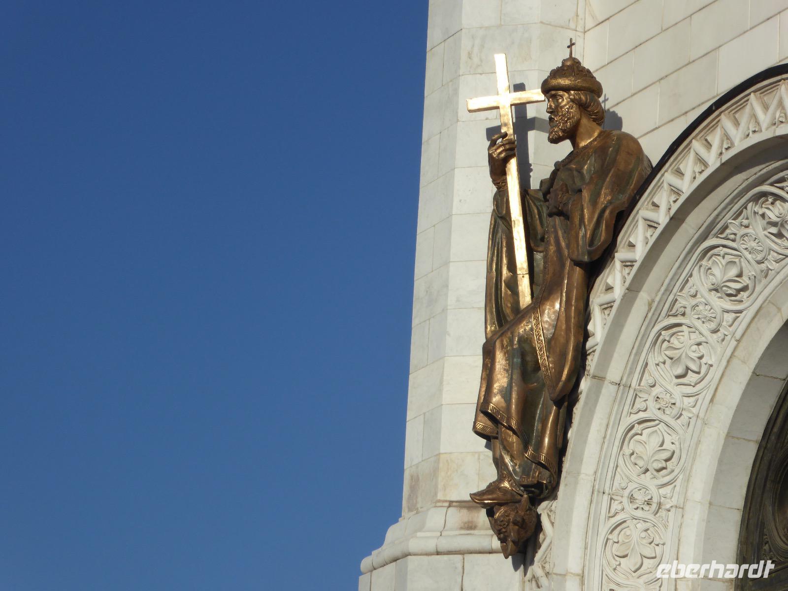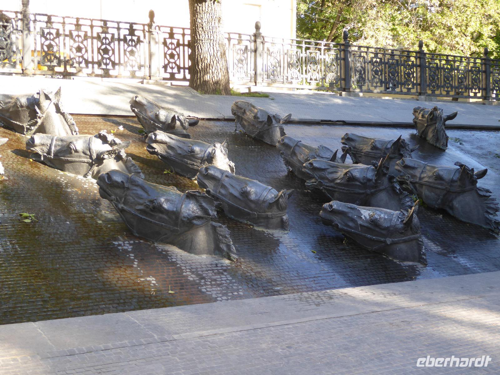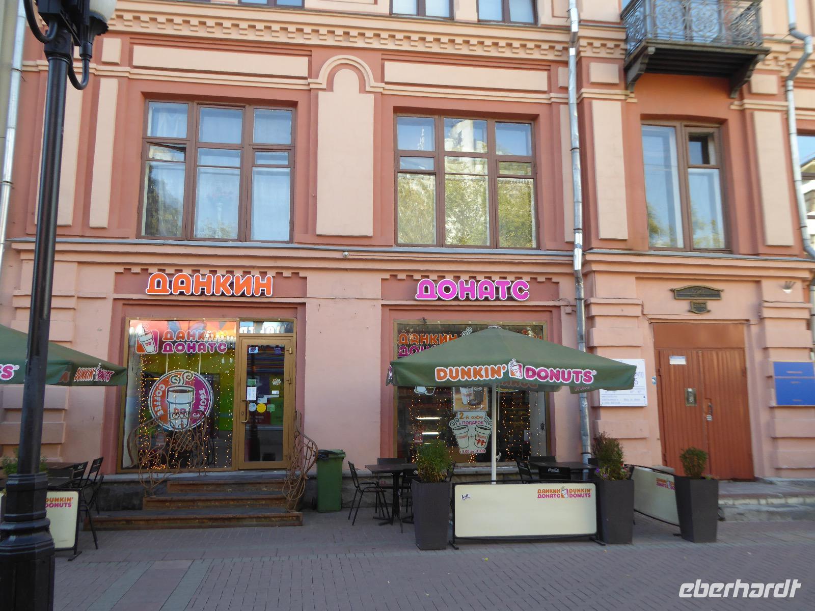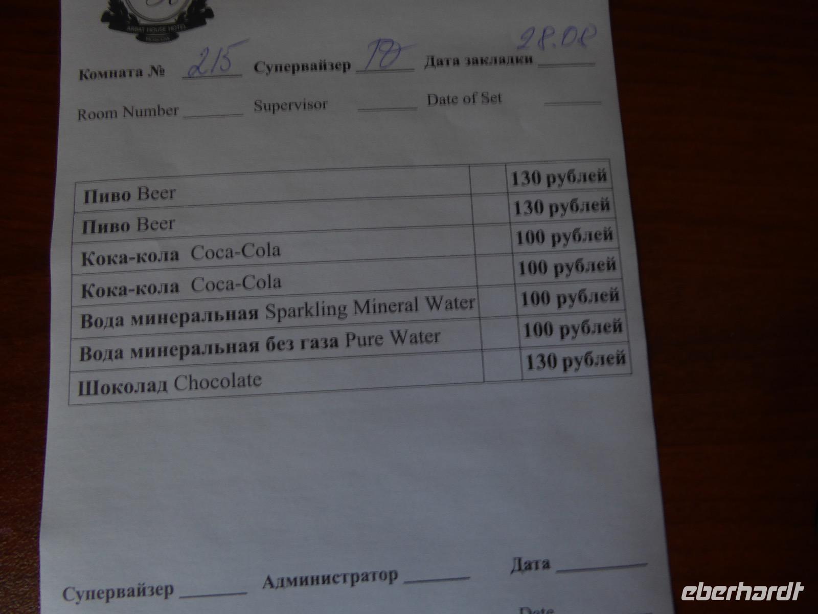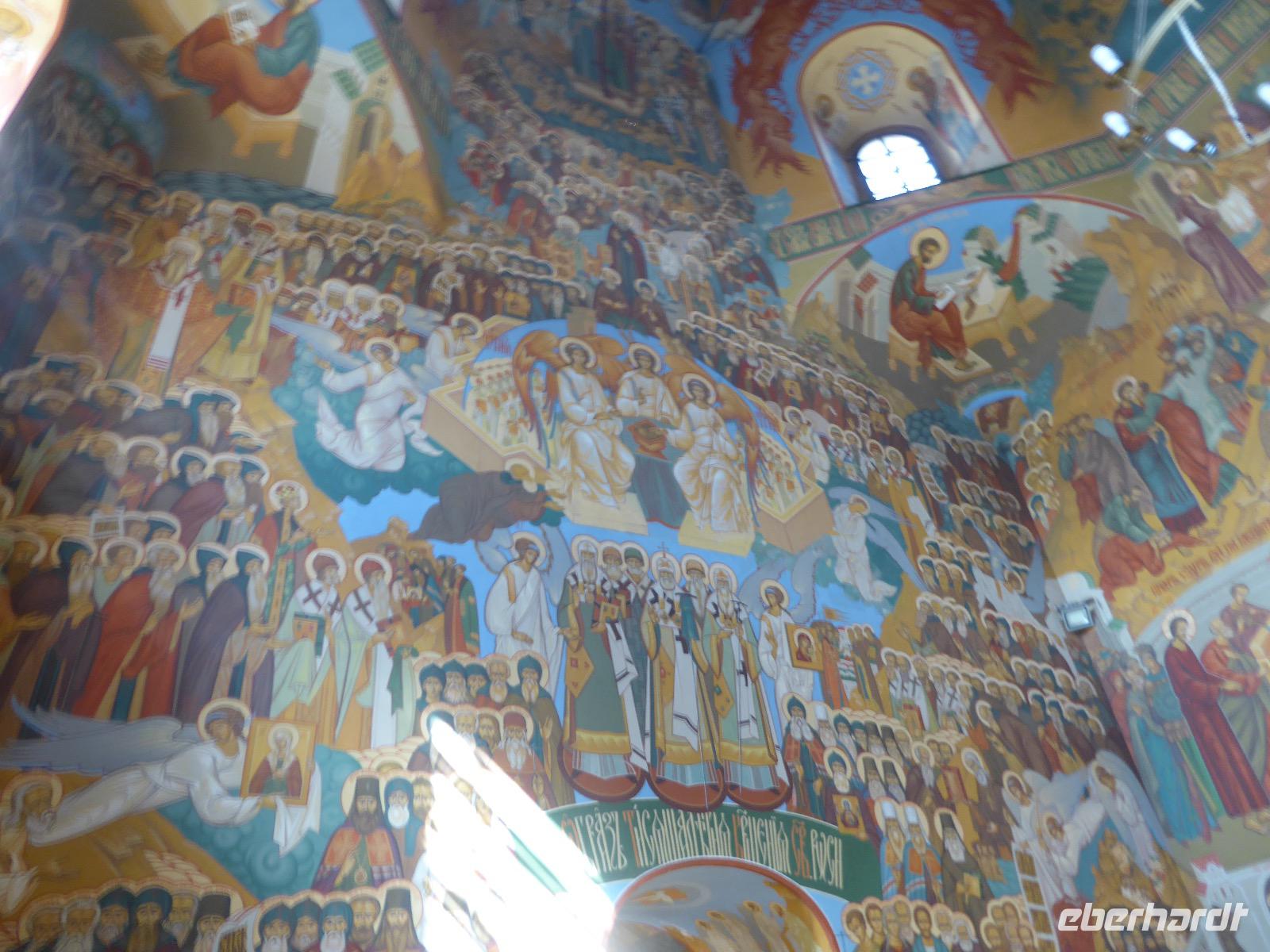 Der Tag beginnt mit einem gemütlichen Frühstück, gefolgt von einem Spaziergang zum Neuen Arbat. Wir erobern Moskau zu Fuß. Vorbei an hohen Wohnhäusern zwischen denen sich eine kleine Kirche mit grünen Zwiebelchen duckt, geht es bei schönstem Sonnenschein durch die Stadt. Hier eine bemalte Wand, dort ein blumengeschmückter Bogen, ein Souvenirgeschäft am anderen lockt uns, aber Valentina treibt uns an. Sie hat viel vor mit uns. Nun geht es in den Untergrund. Valentina hat die Fahrkarten gekauft und schleust uns durch die Schranke. Mit der Rolltreppe geht es steil Berg ab. Valentina ruft uns laut zu, wieviele Stationen wir fahren und wann wir wieder aussteigen müssen. Ein U-Bahnhof ist schöner als der andere. Ein Traum für jedes Fotografenherz. Irgendwann fahren wir wieder mit der Rolltreppe steil bergauf und sind in der Nähe vom Roten Platz. Wir spazieren durch das GUM, das allseits bekannte Kaufhaus Moskaus. Selbst die Toilette lädt zum Fotografieren ein. Der Rote Platz ist gesperrt. Es findet derzeit ein Musikfestival statt und große Tribühnen sind aufgebaut. So können wir Kreml und Basiliuskathedrale nur von Weitem bewundern. Valentina scheucht uns durch das Auferstehungstor Richtung Wachablösung, die wir auch pünktlich erreichen. Weiter geht es zum Pferdespringbrunnen am Alexandergarten und zum Mittagessen in einem ukrainischen Restaurant. Das Essen schmeckt hervorragend, wenn auch der schmucke Kellner nicht bereit ist, sich für unsere Fotoalben ablichten zu lassen. Am Nachmittag bewundern wir die Stadt noch einmal von der Wasserseite aus. Eine Schifffahrt auf der Moskwa rundet den Tag ab. Noch einmal wird der Tisch für uns reichlich gedeckt und dann fahren wir mit der Bahn zum Flughafen. So vermeiden wir es, in den Feierabendstau zu geraten und gemütlich ist es auch. Am Flughafen verabschieden wir uns von Valentina. Über Nacht fliegen wir nach Irkutsk. Baikalsee - wir kommen.