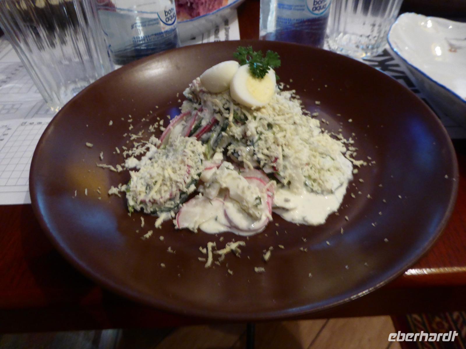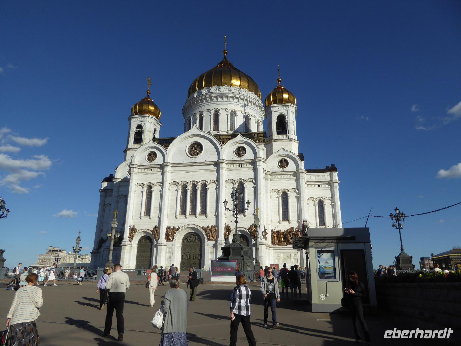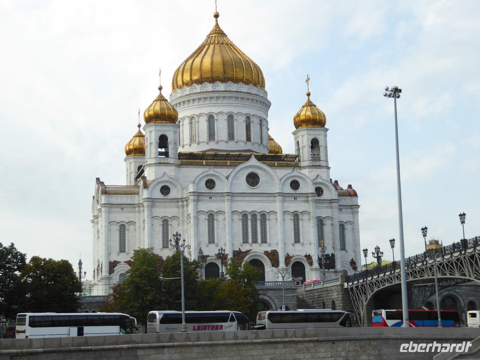Kurz vor acht trifft sich unsere kleine Reisegruppe am Flughafen Schönefeld. Wir müssen unsere Koffer durch die Sicherheitsschleuse schicken bevor wir einchecken können. Die Plätze für die Gruppe sind reserviert, dadurch sitzen wir alle recht dicht beieinander. Nach gut zwei Stunden sind wir bereits in Moskau. Am Einreiseschalter werden wir kurz kontrolliert, bekommen unser Einreiseformular, fertig. Am Ausgang wartet Valentina, unsere örtliche Reiseleiterin für die nächsten zwei Tage. Das Transferauto ist relativ klein, trotzdem passen wir zusammen mit unseren Koffern hinein. Valentina beginnt bereits auf dem Transfer uns ihre Stadt vorzustellen. Wir sind neugierig auf Moskau. Zunächst aber bringen wir unsere Koffer ins Hotel, dann geht es zu Fuß durch die Stadt. Ziel ist u.a. die Christi Erlöserkirche. Ein weißes Gotteshaus mit glänzenden goldenen Kuppelchen. Mit einer Höhe von 103 Metern ist die Christi Erlöserkirche eines der höchsten sakralen Bauwerke der Welt. Ein besonderes Erlebnis erwartet uns. Da heute ein kirchlicher Feiertag ist, hält der höchste Patriarch der russisch-orthodoxen Kirche, Kyrill I. hier einen Gottesdienst. Wie in einem russischen Märchen sind der Patriarch und seine Priester gekleidet. Hellblaue Mäntelchen mit silbernen Muster. Und singen können die! Fantastisch. Kein Wunder, dass so viele Leute hier sind. Bald aber müssen wir zurück zum Hotel, kurzes Händewaschen und schon geht es weiter zum Abendessen. Jetzt ist unsere Gruppe vollständig, denn Toni aus München ist ebenfalls im Hotel angekommen. Wir laufen zum Quartier Nr. 44. In einem echten russischen Wohnzimmer sind wir zu einem Gala-Dinner eingeladen. Immer wieder werden Speisen gereicht, obwohl der Tisch schon voll war als wir kamen. Salate, Pasteten, Lachs, Schaschlik und wieder Salat. Wir sind kurz vorm Platzen. Ein Gläschen Wodka gibt's von Eberhardt zur Verdauung und für die Vorstellungsrunde. Anschließend müssen wir uns unbedingt noch die Füße vertreten. Wir laufen zum Roten Platz und erleben die wundervoll beleuchteten Gebäude. Moskau verabschiedet sich von uns in dieser Nacht mit einem Feuerwerk. Was für ein Auftakt für unsere abenteuerliche Reise.