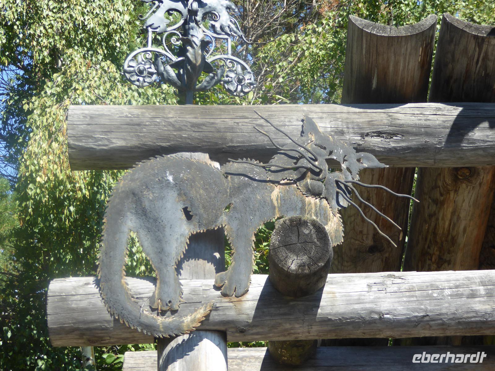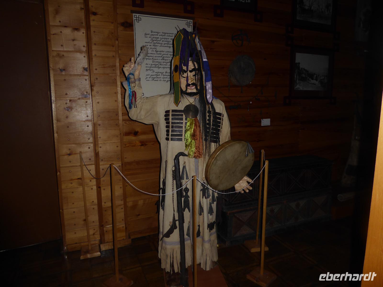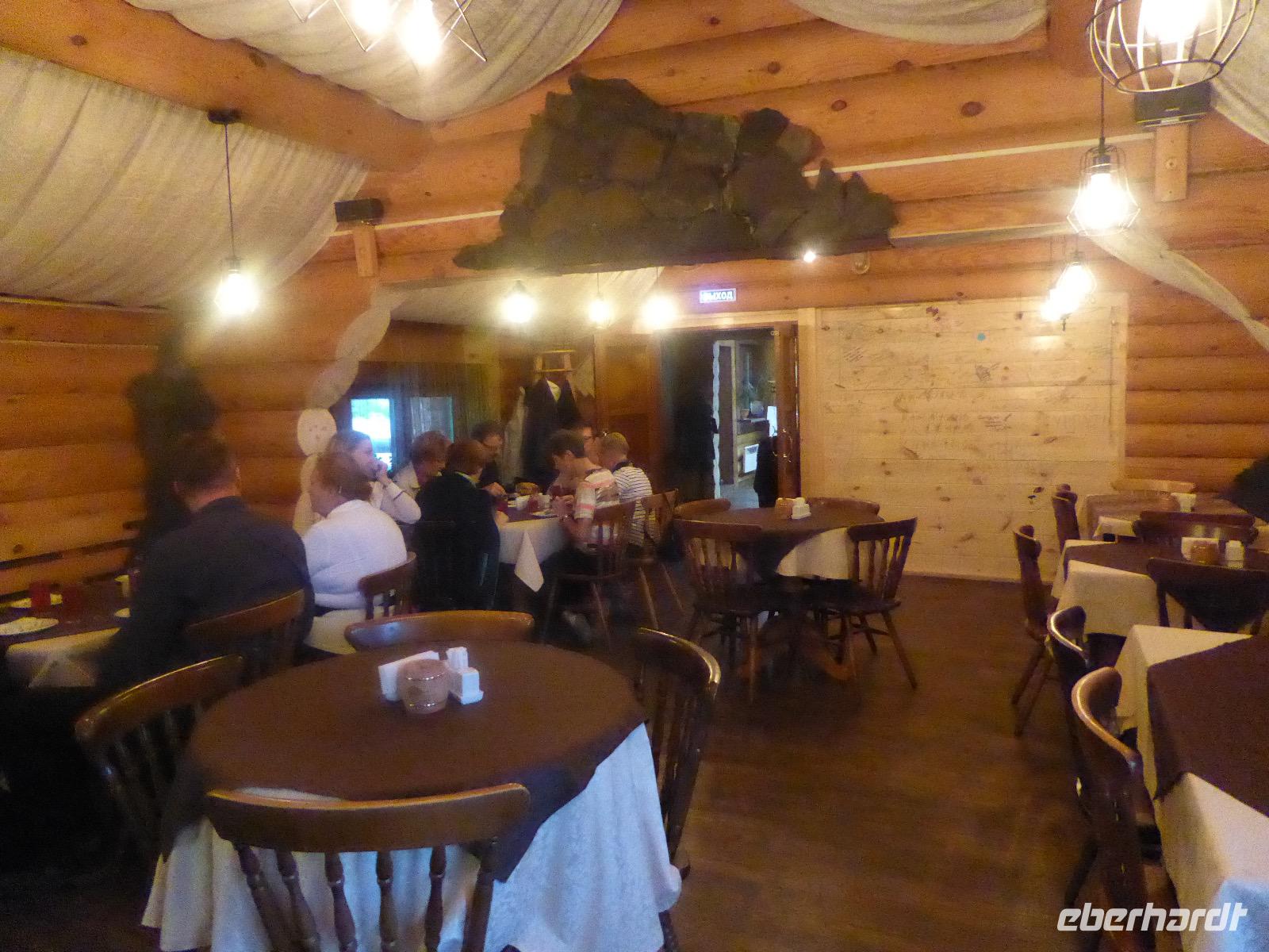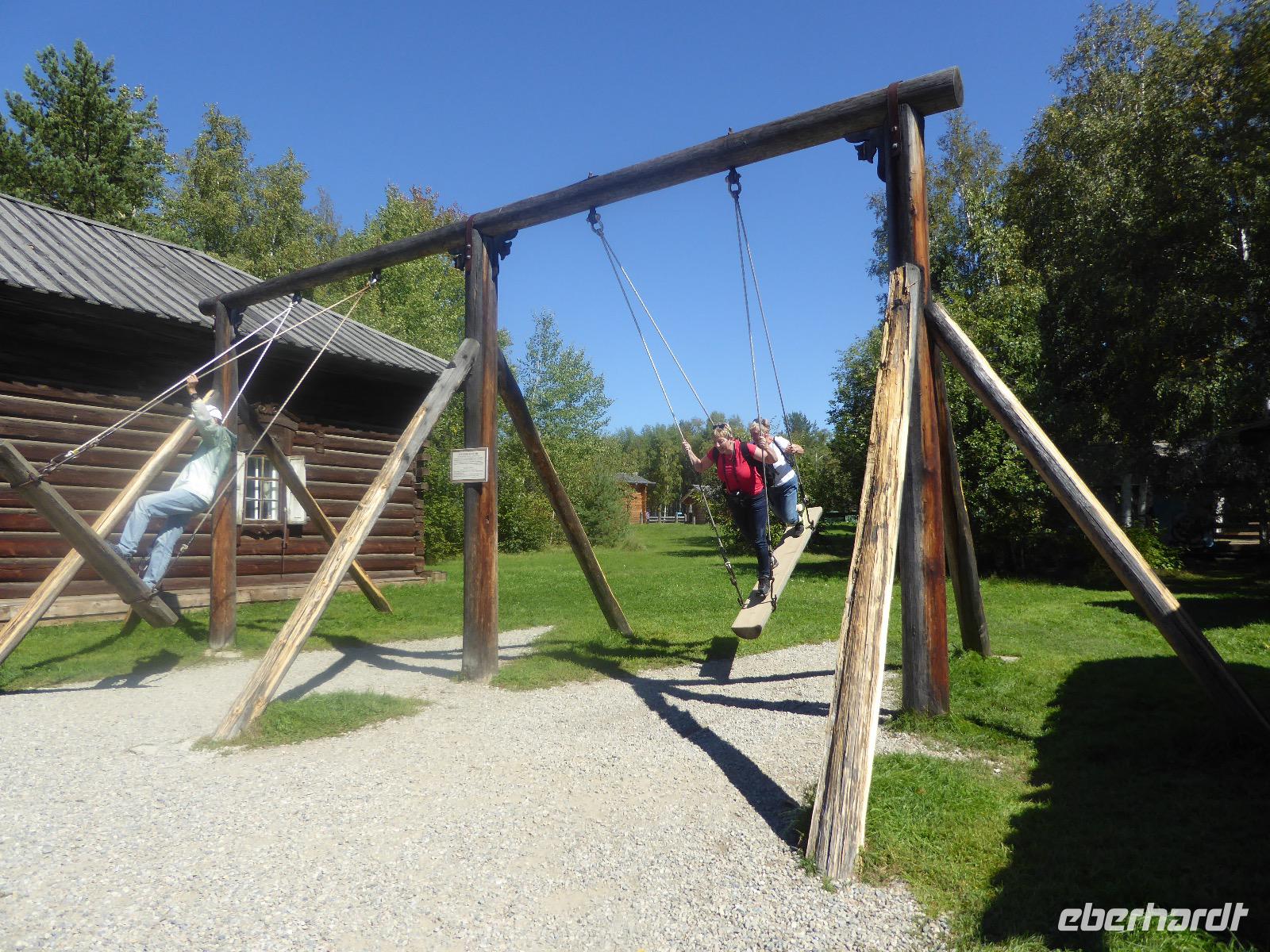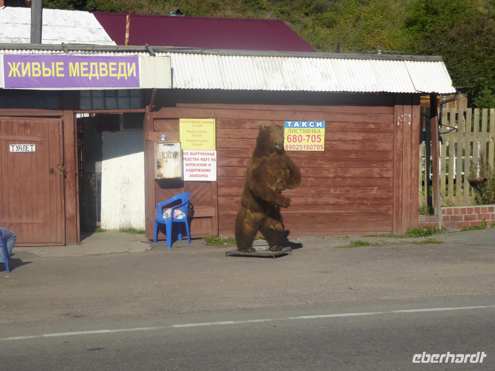 Am Vormittag besuchen wir als erstes die Swjato-Nikolski-Kirche. Kaufmann Xenofont Serebrjakow war im 19. Jahrhundert mit einem Schiff auf dem Baikalsee unterwegs als er in ein großes Unwetter geriet. Voller Inbrunst begann er zum Heiligen Nikolaus zu beten und diesen um seine Rettung anzuflehen. Das Wunder geschah. Der Kaufmann gelobte, zu Ehren des Heiligen Nikolaus eine Kirche zu errichten. Heute ist die Kirche wieder aus Holz, jedoch war sie viele Jahre aus Stein. Als der oberste Patriarch der russisch-orthodoxen Kirche Listwjanka besuchte, gab er den Gläubigen den Auftrag, die Kirche wieder mit Holz zu gestalten, denn so entspricht es den Traditionen der Russisch-Orthodoxen. Im Innern sind wunderschöne Ikonen des 18. Jahrhunderts zu sehen. Ein Mütterchen beäugt unsere Tanja argwöhnig, ob sie uns denn alles richtig erzähle. Kurzerhand übernimmt sie das selbst und fordert Tanja auf, eine weitere Geschichte zu erzählen. Diese handelt von Reliquien (in Form von sterblichen Überresten, die nach einem Brand in Irkutsk, in die Kirche von Listwjanka verbracht wurden. Sie zaubert aus einem hinteren Räumchen ein Foto hervor, auf dem deutlich zu sehen ist, wie der Geist des Verstorbenen über der Kirche schwebt (wissenschaftlich bewiesen natürlich). Wir bedanken uns bei Mütterchen Nina für die Erzählungen und verabschieden uns. Leider können wir ihre Einladung, in einer Stunde am Gottesdienst teilzunehmen, nicht annehmen. Uns erwartet das Freilichtmuseum Talzy. Hier besichtigen wir alte Bauernhäuser, die aus der gesamten Umgebung zusammengetragen wurden. In einem kleinen Museumsraum sind Kleidungsstücke (Ritterrüstungen), Waffen, Münzen und andere historische Gegenstände ausgestellt. Das Besondere aber, was wir erleben, sind zwei Männer, die uns mit großartigen Kosakenliedern erfreuen. Anschließend schauen wir weitere Gebäude von Innen und Außen an. Ziemlich klein sind die Häuschen, mit traditionellem Bett auf der Ofenbank und schönem Samowar. Dem Verwalter, der die Steuern eintrieb, ging es besser. Das können wir an der Ausstattung seines Hauses sehen. Vor dem Mittagessen bleibt Zeit, Souvenire einzukaufen. Mit uns kann man gute Geschäfte machen. Im Garten der Tschainaja - Teestube, sind wir zu einem Mittagessen mit russischen Spezialitäten eingeladen. Zur Vorspeise gibt es einen Weißkrautsalat mit Preiselbeeren und eine Pelmenisuppe. Das Hauptgericht ist ein gebackener Omul und zum Nachtisch gibt es Blini mit süßer Milchsoße. Als Getränke werden warmer Sanddornsaft (hmmm, ein Gedicht!) und Tee gereicht. Rundum gesättigt besichtigen wir den letzten Teil des Museums, die burjatische Abteilung. Diese befindet sich in einer Jurte, wo allerlei Zauberzeug käuflich erworben werden kann. Dazu gehören verschiedene Kräutertees, Metallschalen, deren Klang alle Weh-Wehchen heilen kann und vieles mehr. Außerdem kann man sich als burjatische Heldin verkleiden und sich in dieser Tracht fotografieren lassen. Wir haben unseren Spaß. Gleich um die Ecke haben wir ein anderes Kunstwerk entdeckt. Das Häuschen von Babajaga ist hier aus Metall erbaut. Wir nutzen die Gelegenheit, um unser Gruppenfoto zu schießen. Nun müssen wir aber weiter, denn wir wollen noch das Limnologische Museum besichtigen. Unser Fahrer Alexander ist so nett und setzt uns nicht auf dem Parkplatz ab, sondern fährt uns zu einem kleinen Trampelpfad, der steil, aber direkt zum Eingang führt. Im Baikal-Museum, einer Abteilung des Limnologischen Museums, erzählt uns Tanja, wie der Baikalsee geologisch entstanden ist. Außerdem gibt es Aquarien, in denen alle Lebewesen des Baikalsee zu sehen sind. Besonders putzig sind die Baikalrobben, die unermüdlich ihre Runden drehen. Von artgerechter Haltung hat man hier wahrscheinlich noch nichts gehört, trotzdem macht es uns Vergnügen, den Robben zuzuschauen. Unser letztes Abenteuer für heute ist die Fahrt mit dem Sessellift auf einen Aussichtspunkt, von dem wir eine hervorragende Sicht über den Baikalsee haben. Während wir nach oben rauschen, kommen uns auf der anderen Seite Chinesen entgegen. Irgendwann fangen wir an, sie mit Ni Hau zu grüßen und können dann gar nicht mehr aufhören. Was für ein Spaß! Für beide Seiten. Danke, Tanja, das war eine gute Idee. Das Abendessen nehmen wir in einem Restaurant in der Nähe des Hotels ein. Es gibt nur drei Gänge und keinen Omul. Nein, satt geworden sind wir trotzdem. Als Geschenk bekommen wir jeder einen Zedernzapfen, den man auseinanderrupfen muss, um an die leckeren Kerne zu kommen. Unser voller Bauch schreit nach einem Abendspaziergang. Außerdem wollen wir Wodka für die Lieben daheim einkaufen. Wie wäre es also mit einem Spaziergang zum Magasin Kopeka? Gesagt getan. An allen Regalen im Magasin stehen Schilder mit der Aufschrift - nicht zu verkaufen -. Wir lachen, ein Laden, in dem man nichts kaufen darf? Des Rätsels Lösung heißt: Schulanfang. Am 1. September darf kein Alkohol verkauft werden. Schade. Also gehen wir zurück ins Hotel, verabschieden uns, von denen, die schlafen gehen und nehmen noch ein Bierchen, heute für 190 Rubel und gezapft. Gute Nacht.