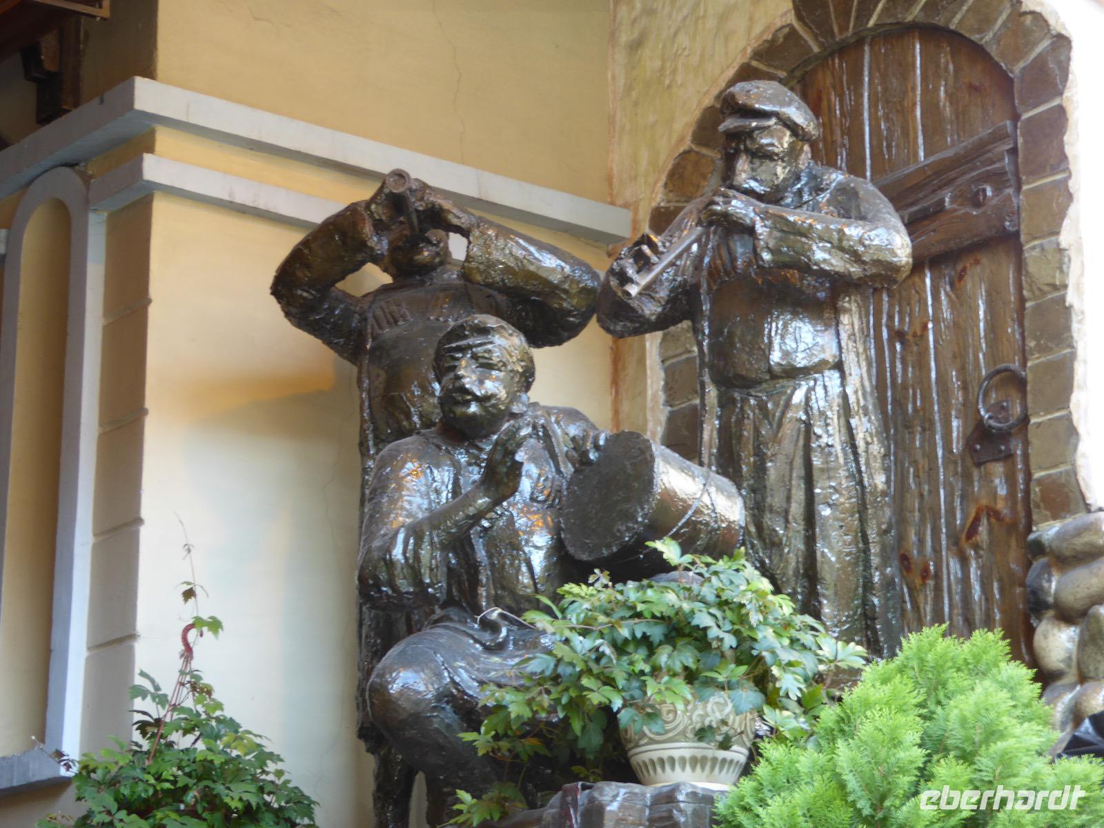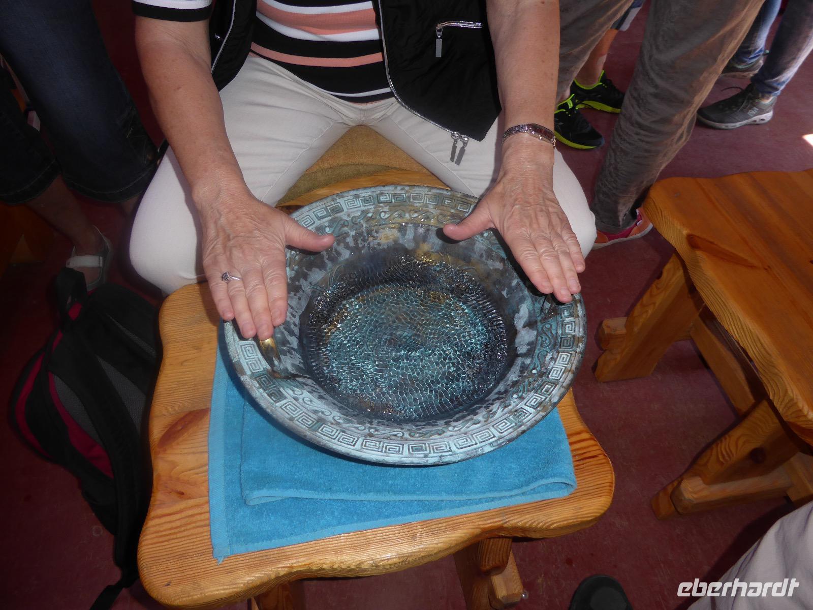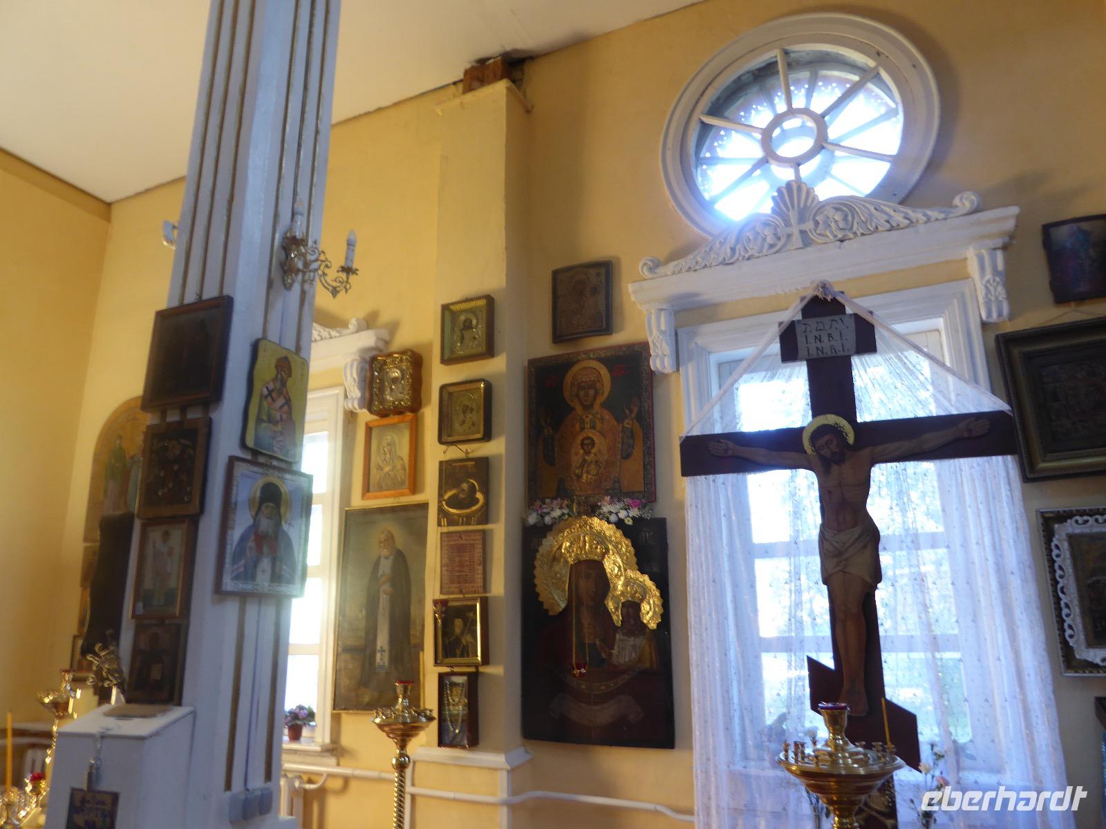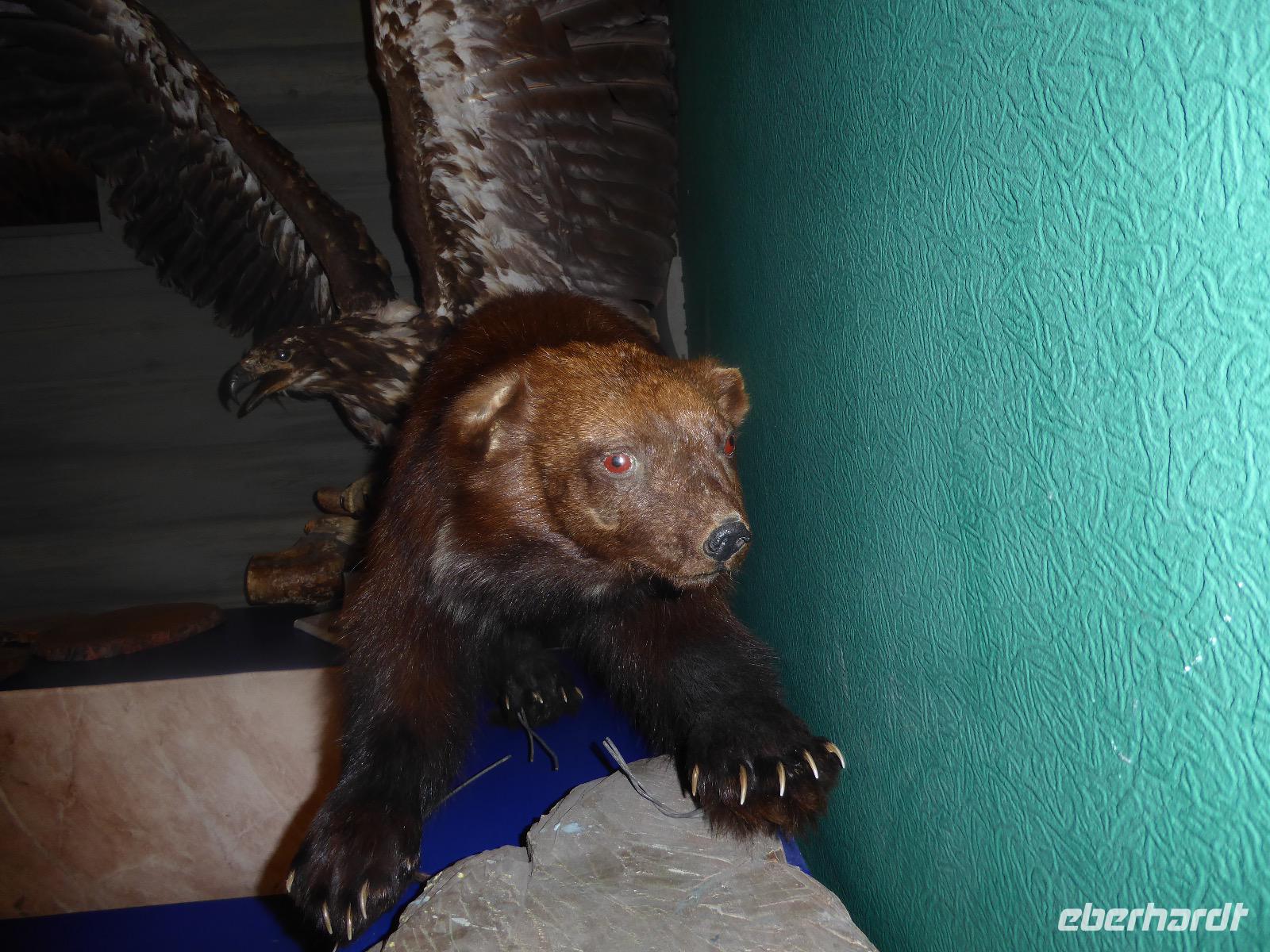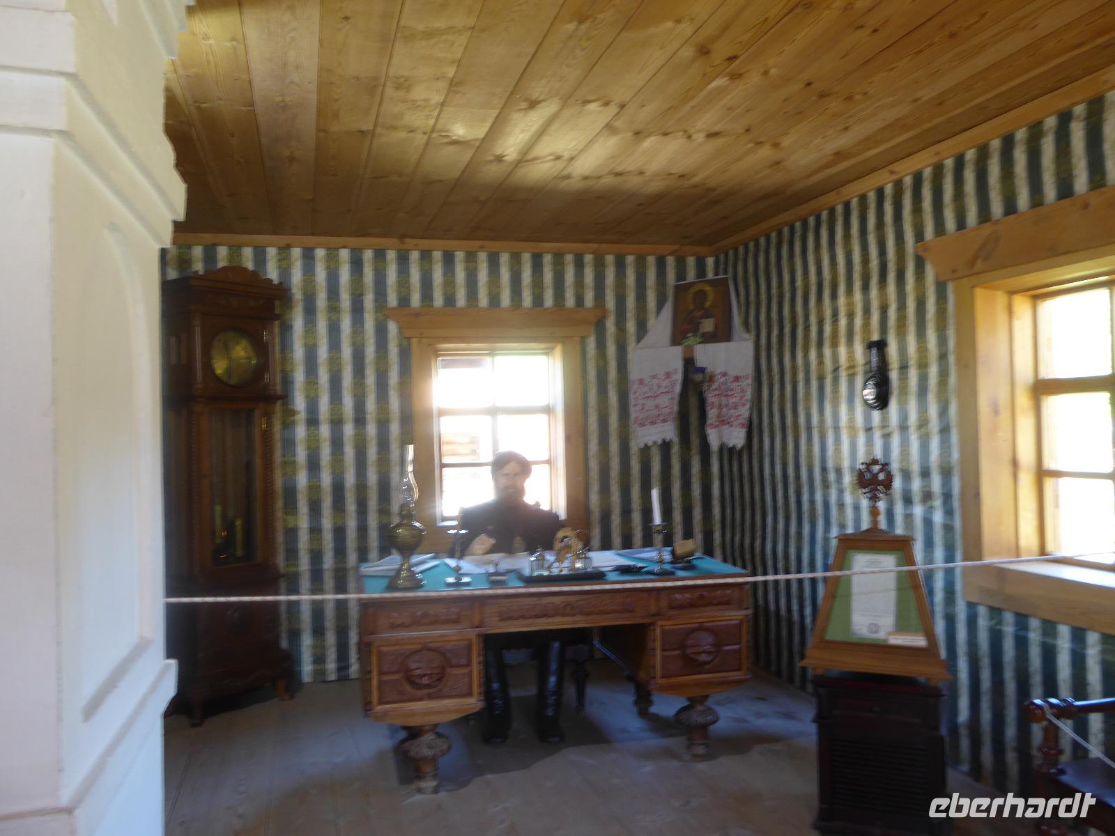 Am Vormittag besuchen wir als erstes die Swjato-Nikolski-Kirche. Kaufmann Xenofont Serebrjakow war im 19. Jahrhundert mit einem Schiff auf dem Baikalsee unterwegs als er in ein großes Unwetter geriet. Voller Inbrunst begann er zum Heiligen Nikolaus zu beten und diesen um seine Rettung anzuflehen. Das Wunder geschah. Der Kaufmann gelobte, zu Ehren des Heiligen Nikolaus eine Kirche zu errichten. Heute ist die Kirche wieder aus Holz, jedoch war sie viele Jahre aus Stein. Als der oberste Patriarch der russisch-orthodoxen Kirche Listwjanka besuchte, gab er den Gläubigen den Auftrag, die Kirche wieder mit Holz zu gestalten, denn so entspricht es den Traditionen der Russisch-Orthodoxen. Im Innern sind wunderschöne Ikonen des 18. Jahrhunderts zu sehen. Ein Mütterchen beäugt unsere Tanja argwöhnig, ob sie uns denn alles richtig erzähle. Kurzerhand übernimmt sie das selbst und fordert Tanja auf, eine weitere Geschichte zu erzählen. Diese handelt von Reliquien (in Form von sterblichen Überresten, die nach einem Brand in Irkutsk, in die Kirche von Listwjanka verbracht wurden. Sie zaubert aus einem hinteren Räumchen ein Foto hervor, auf dem deutlich zu sehen ist, wie der Geist des Verstorbenen über der Kirche schwebt (wissenschaftlich bewiesen natürlich). Wir bedanken uns bei Mütterchen Nina für die Erzählungen und verabschieden uns. Leider können wir ihre Einladung, in einer Stunde am Gottesdienst teilzunehmen, nicht annehmen. Uns erwartet das Freilichtmuseum Talzy. Hier besichtigen wir alte Bauernhäuser, die aus der gesamten Umgebung zusammengetragen wurden. In einem kleinen Museumsraum sind Kleidungsstücke (Ritterrüstungen), Waffen, Münzen und andere historische Gegenstände ausgestellt. Das Besondere aber, was wir erleben, sind zwei Männer, die uns mit großartigen Kosakenliedern erfreuen. Anschließend schauen wir weitere Gebäude von Innen und Außen an. Ziemlich klein sind die Häuschen, mit traditionellem Bett auf der Ofenbank und schönem Samowar. Dem Verwalter, der die Steuern eintrieb, ging es besser. Das können wir an der Ausstattung seines Hauses sehen. Vor dem Mittagessen bleibt Zeit, Souvenire einzukaufen. Mit uns kann man gute Geschäfte machen. Im Garten der Tschainaja - Teestube, sind wir zu einem Mittagessen mit russischen Spezialitäten eingeladen. Zur Vorspeise gibt es einen Weißkrautsalat mit Preiselbeeren und eine Pelmenisuppe. Das Hauptgericht ist ein gebackener Omul und zum Nachtisch gibt es Blini mit süßer Milchsoße. Als Getränke werden warmer Sanddornsaft (hmmm, ein Gedicht!) und Tee gereicht. Rundum gesättigt besichtigen wir den letzten Teil des Museums, die burjatische Abteilung. Diese befindet sich in einer Jurte, wo allerlei Zauberzeug käuflich erworben werden kann. Dazu gehören verschiedene Kräutertees, Metallschalen, deren Klang alle Weh-Wehchen heilen kann und vieles mehr. Außerdem kann man sich als burjatische Heldin verkleiden und sich in dieser Tracht fotografieren lassen. Wir haben unseren Spaß. Gleich um die Ecke haben wir ein anderes Kunstwerk entdeckt. Das Häuschen von Babajaga ist hier aus Metall erbaut. Wir nutzen die Gelegenheit, um unser Gruppenfoto zu schießen. Nun müssen wir aber weiter, denn wir wollen noch das Limnologische Museum besichtigen. Unser Fahrer Alexander ist so nett und setzt uns nicht auf dem Parkplatz ab, sondern fährt uns zu einem kleinen Trampelpfad, der steil, aber direkt zum Eingang führt. Im Baikal-Museum, einer Abteilung des Limnologischen Museums, erzählt uns Tanja, wie der Baikalsee geologisch entstanden ist. Außerdem gibt es Aquarien, in denen alle Lebewesen des Baikalsee zu sehen sind. Besonders putzig sind die Baikalrobben, die unermüdlich ihre Runden drehen. Von artgerechter Haltung hat man hier wahrscheinlich noch nichts gehört, trotzdem macht es uns Vergnügen, den Robben zuzuschauen. Unser letztes Abenteuer für heute ist die Fahrt mit dem Sessellift auf einen Aussichtspunkt, von dem wir eine hervorragende Sicht über den Baikalsee haben. Während wir nach oben rauschen, kommen uns auf der anderen Seite Chinesen entgegen. Irgendwann fangen wir an, sie mit Ni Hau zu grüßen und können dann gar nicht mehr aufhören. Was für ein Spaß! Für beide Seiten. Danke, Tanja, das war eine gute Idee. Das Abendessen nehmen wir in einem Restaurant in der Nähe des Hotels ein. Es gibt nur drei Gänge und keinen Omul. Nein, satt geworden sind wir trotzdem. Als Geschenk bekommen wir jeder einen Zedernzapfen, den man auseinanderrupfen muss, um an die leckeren Kerne zu kommen. Unser voller Bauch schreit nach einem Abendspaziergang. Außerdem wollen wir Wodka für die Lieben daheim einkaufen. Wie wäre es also mit einem Spaziergang zum Magasin Kopeka? Gesagt getan. An allen Regalen im Magasin stehen Schilder mit der Aufschrift - nicht zu verkaufen -. Wir lachen, ein Laden, in dem man nichts kaufen darf? Des Rätsels Lösung heißt: Schulanfang. Am 1. September darf kein Alkohol verkauft werden. Schade. Also gehen wir zurück ins Hotel, verabschieden uns, von denen, die schlafen gehen und nehmen noch ein Bierchen, heute für 190 Rubel und gezapft. Gute Nacht.