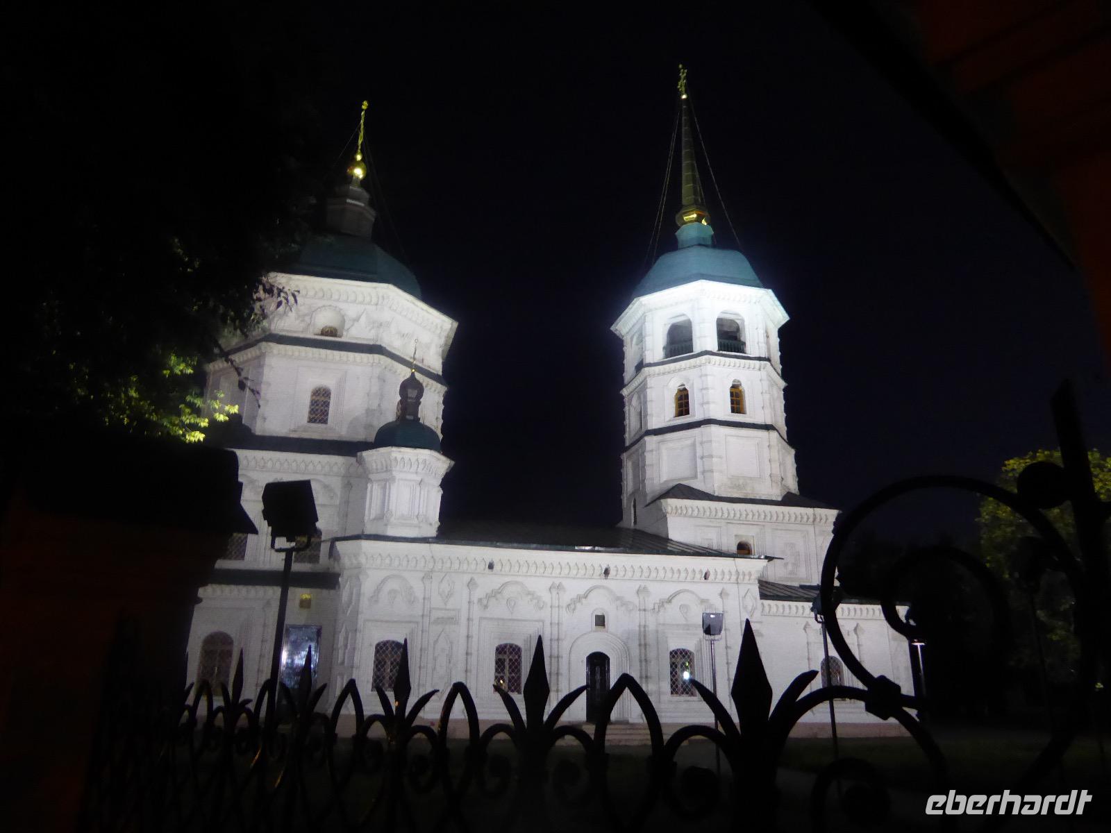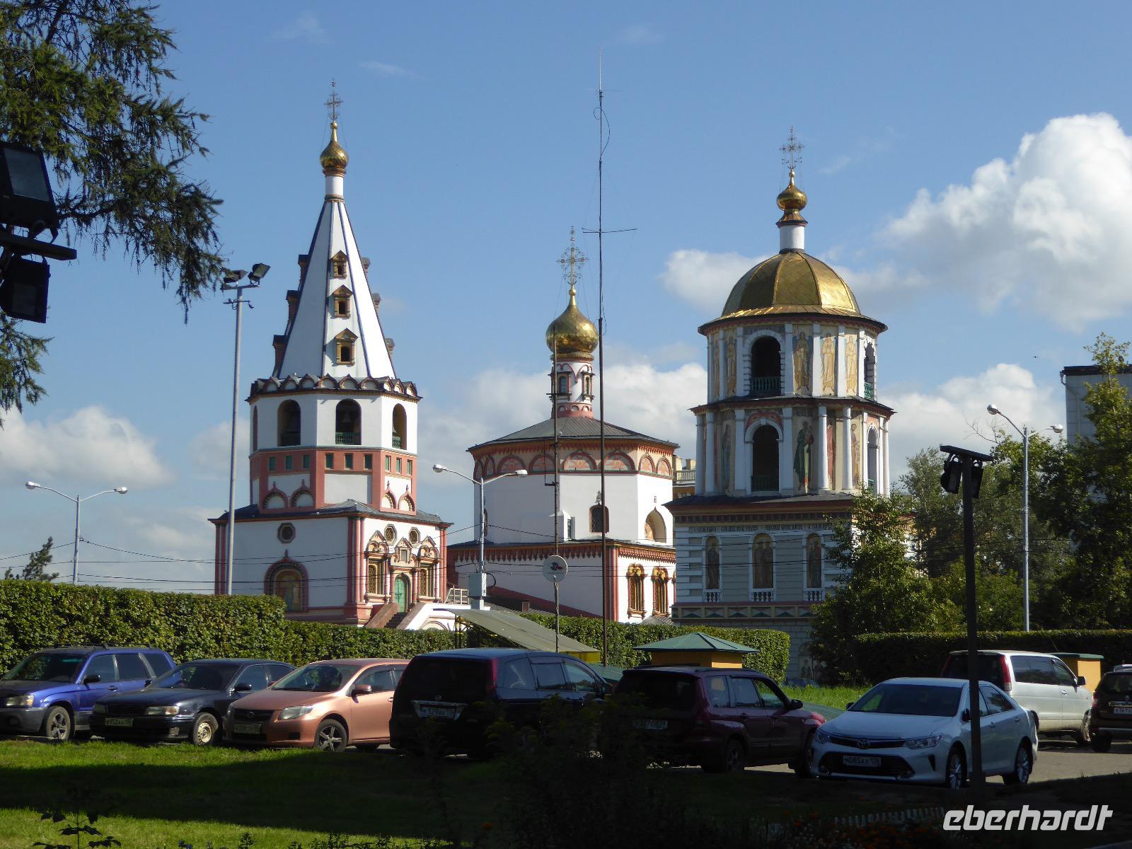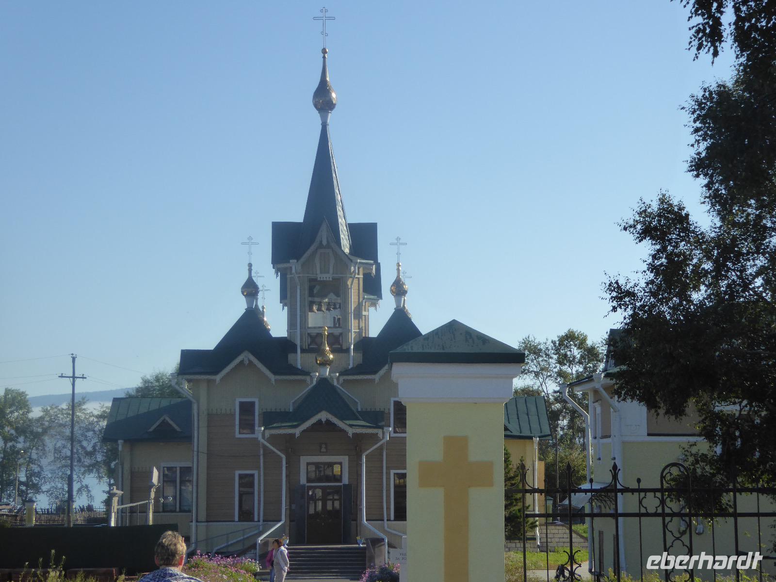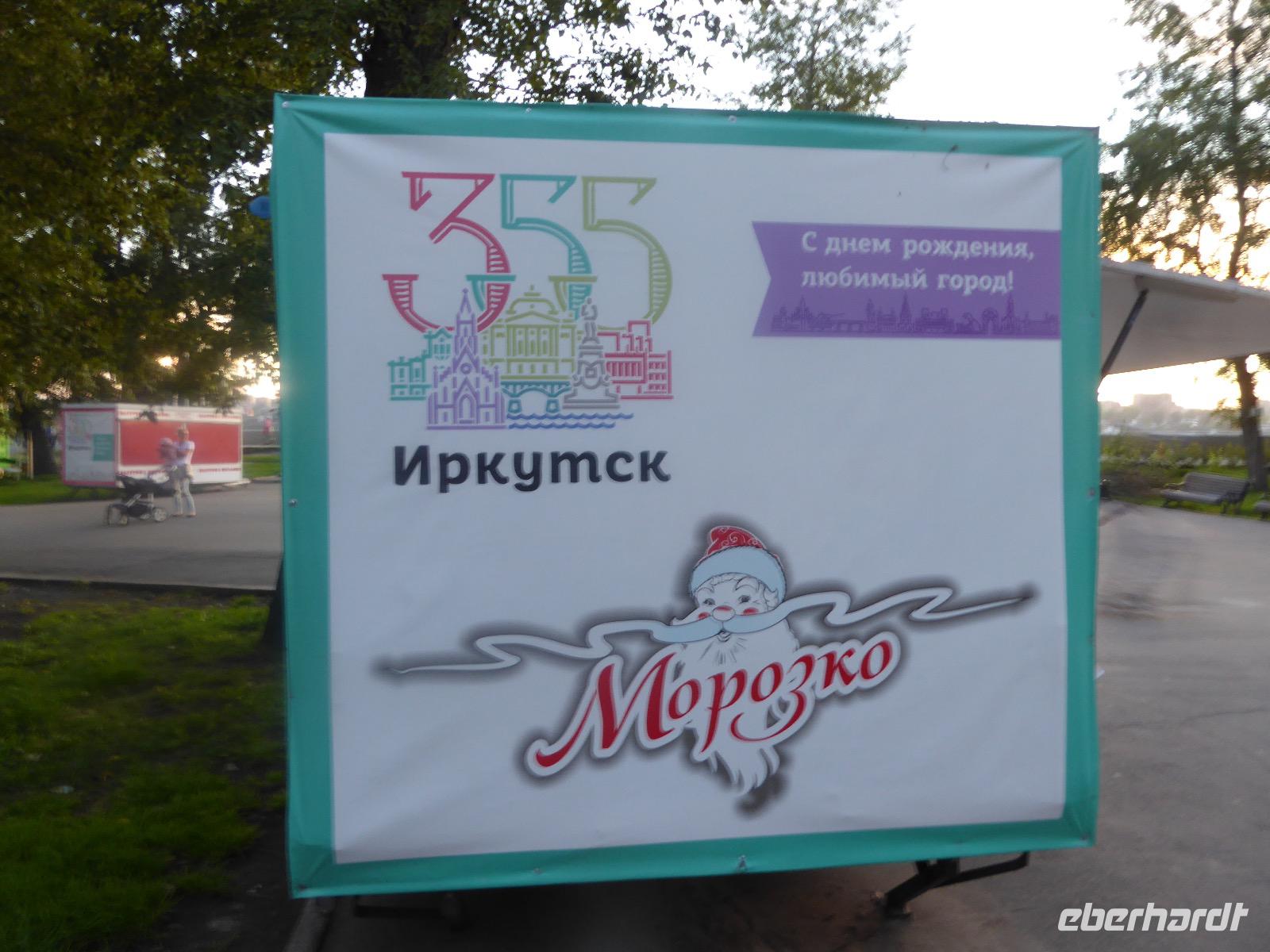 Frühmorgens kommen wir in Irkutsk an. Nach 5 Stunden plus 10 Minuten Flug etwas müde. Tanja erwartet uns bereits am Ausgang. Sie ist unternehmungslustig und freut sich auf einen schönen Tag mit uns. Gemeinsam holen wir das Gepäck (Achtung! Abschnitt aufheben!) und verstauen es im Gepäckbus. Wir Gäste quetschen uns in einen zweiten Bus, der ist so klein, trotzdem sind zwei Plätze frei. Zunächst bringen wir das Gepäck ins Hotel. Da wir kein Frühstück hatten, bringt uns Tanja zunächst in ein überraschend modernes Kaffee. Wer ahnt denn schon, dass es geschlagene zwei Stunden dauert, bis der letzte sinen Kaffee hat? Mit unserem Bus fahren wir nun durch Irkutsk. Erste Station: das Ewige Feuer. In 21 Städten Russlands brennt das Ewige Feuer, das an die Gefallenen des 2. Weltkriegs erinnert. Hier wurde es am 9. Mai 1975 entfacht. An besonderen Tagen halten irkutsker Schüler hier eine Ehrenwache. Auf den Granitplatten liegen (immer) frische Blumen. Wir besuchen die Erlöserkirche, die 1672 zum ersten Mal an diesem Platz errichtet wurde. Während der Sowjetzeit war die Kirche geschlossen, aber das Gebäude blieb erhalten. Von 1970 bis 1980 wurde die Kirche restauriert. Anschließend besuchen wir die polnische Kirche. Der Name kommt daher, dass polnische Verbannte die Kirche von ihren Spenden errichten ließen. In Polen gilt dies Kirche als polnisches Kulturerbe. Am Denkmal für den Kosakenführer Jakow Pochabow berichtet uns Tanja von der Geschichte Irkutsks. Das Land, auf dem sich die heutige Stadt befindet, wurde 1661 von eben genanntem Kosakenführer entdeckt und besiedelt. Etwa einhundert Jahre später enststand die erste Straße nach Moskau. Über diese wurde der Handel mit den Schätzen Sibiriens und Chinas abgewickelt, wodurch sich die Stadt elementar veränderte. Die nach Irkutsk verbannten Politischen trugen dazu bei, dass sich die Stadt zu einem kulturellen und wissenschaftlichen Zentrum entwickelte. Von der Geschichte der Stadt erfahren wir dann noch einiges bei einer ausgiebigen Führung durch das Heimatmuseum. Den Abend verbringen wir mit einem romantischen Spaziergang bei Sonnenuntergang an der Angara. Hier lassen wir uns auch das leckere russische Eis schmecken.