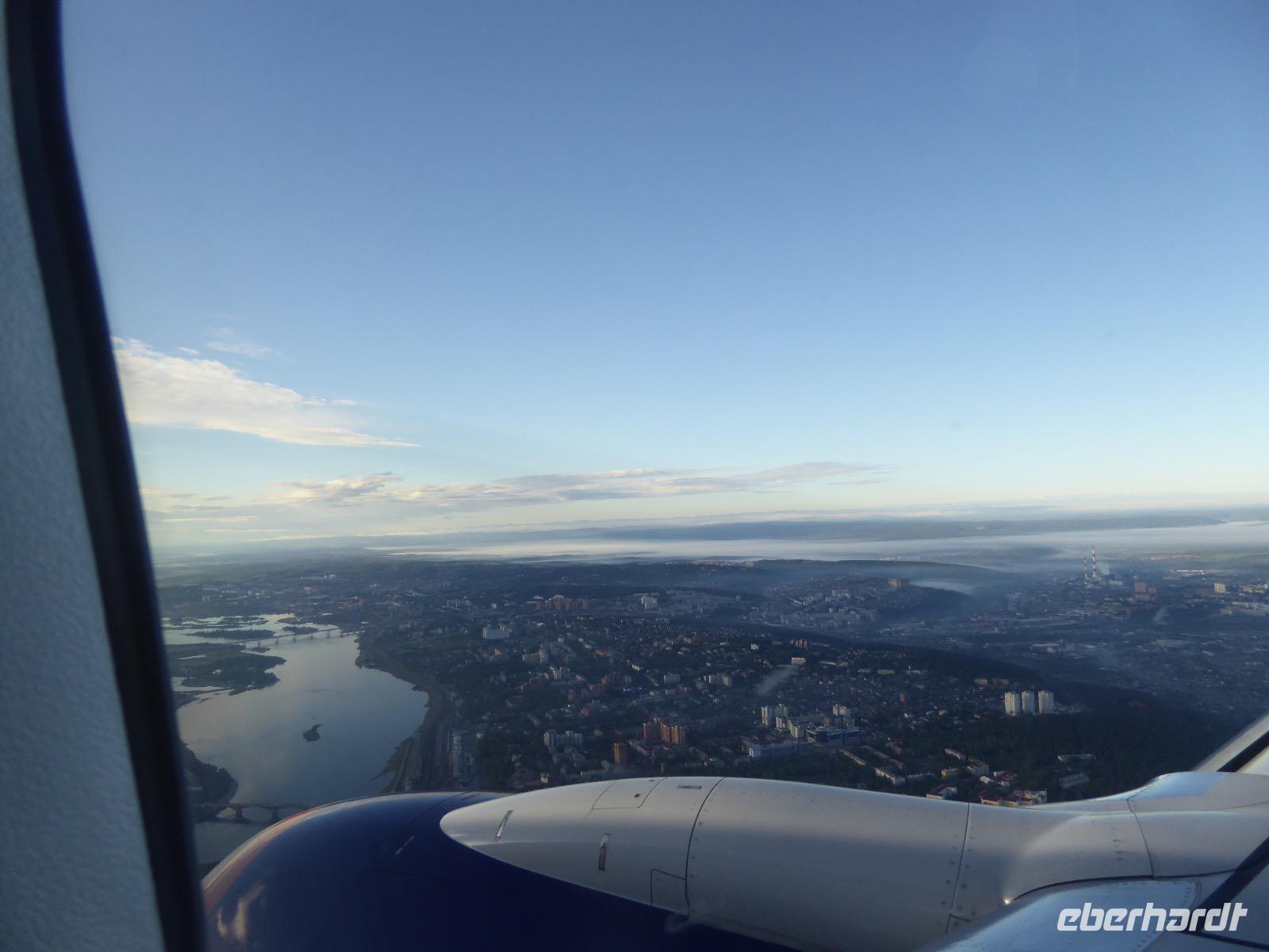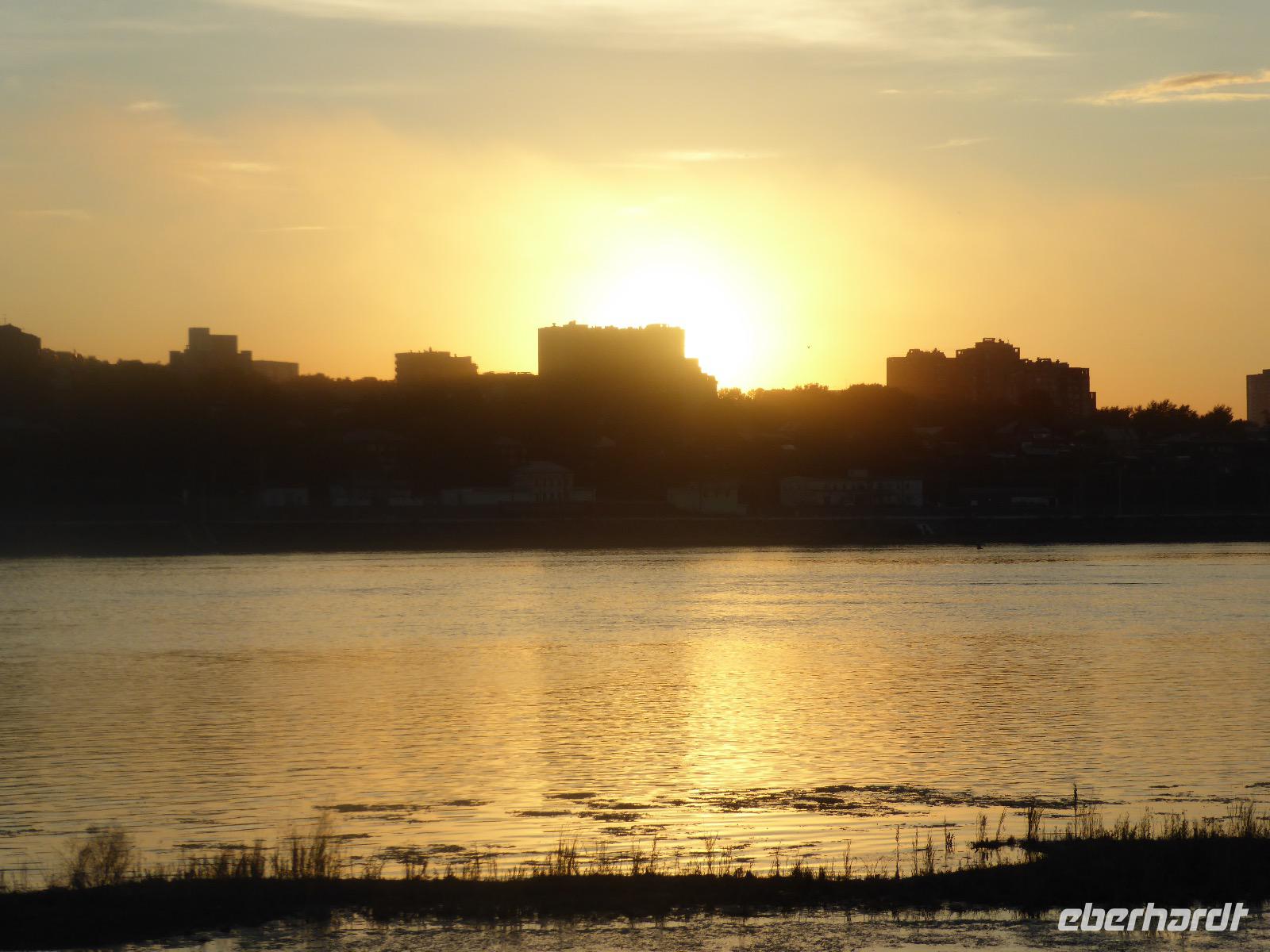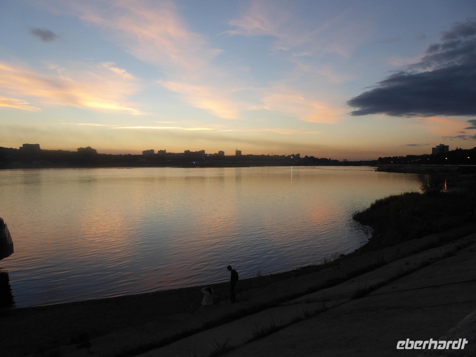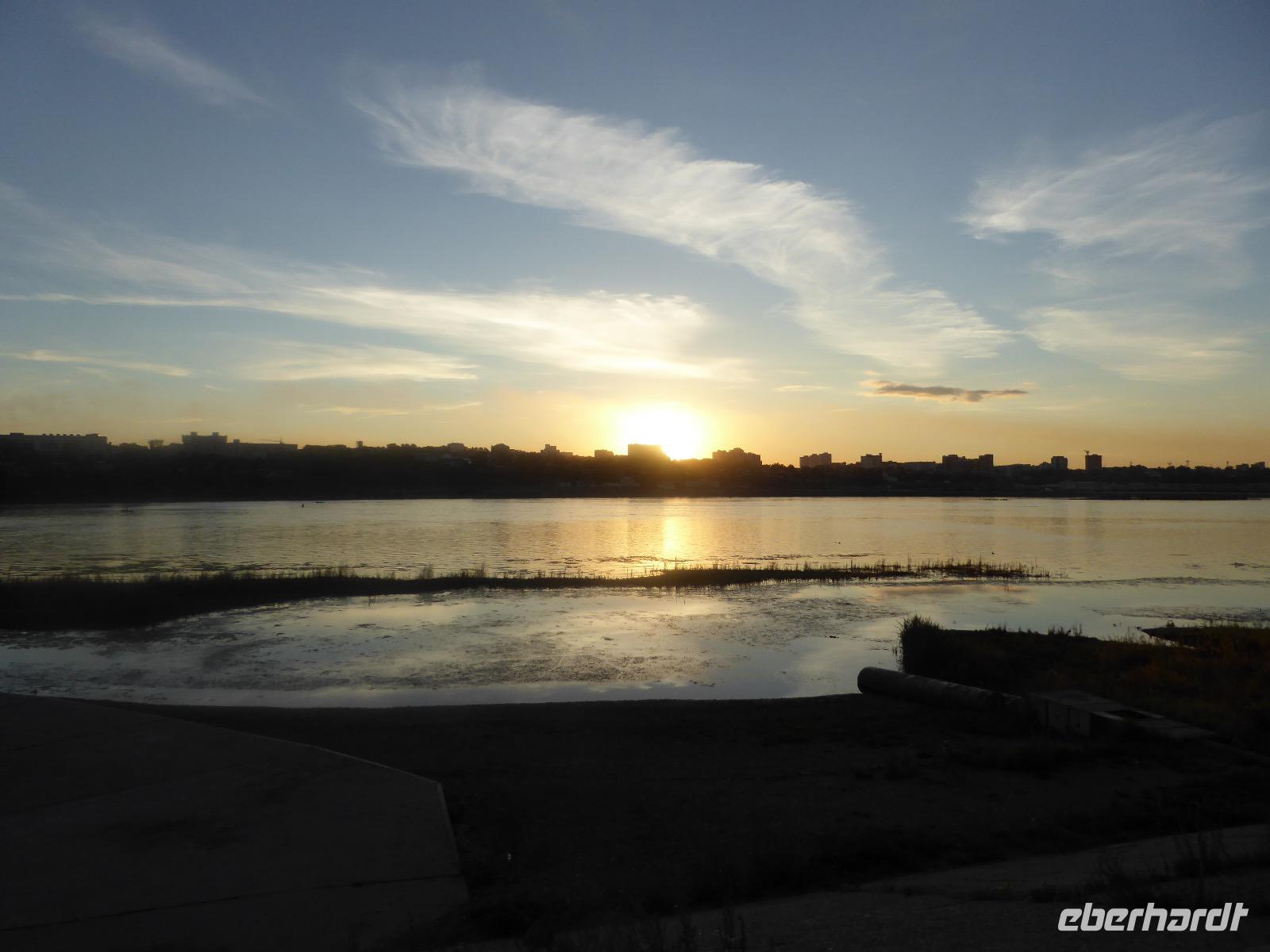 Frühmorgens kommen wir in Irkutsk an. Nach 5 Stunden plus 10 Minuten Flug etwas müde. Tanja erwartet uns bereits am Ausgang. Sie ist unternehmungslustig und freut sich auf einen schönen Tag mit uns. Gemeinsam holen wir das Gepäck (Achtung! Abschnitt aufheben!) und verstauen es im Gepäckbus. Wir Gäste quetschen uns in einen zweiten Bus, der ist so klein, trotzdem sind zwei Plätze frei. Zunächst bringen wir das Gepäck ins Hotel. Da wir kein Frühstück hatten, bringt uns Tanja zunächst in ein überraschend modernes Kaffee. Wer ahnt denn schon, dass es geschlagene zwei Stunden dauert, bis der letzte sinen Kaffee hat? Mit unserem Bus fahren wir nun durch Irkutsk. Erste Station: das Ewige Feuer. In 21 Städten Russlands brennt das Ewige Feuer, das an die Gefallenen des 2. Weltkriegs erinnert. Hier wurde es am 9. Mai 1975 entfacht. An besonderen Tagen halten irkutsker Schüler hier eine Ehrenwache. Auf den Granitplatten liegen (immer) frische Blumen. Wir besuchen die Erlöserkirche, die 1672 zum ersten Mal an diesem Platz errichtet wurde. Während der Sowjetzeit war die Kirche geschlossen, aber das Gebäude blieb erhalten. Von 1970 bis 1980 wurde die Kirche restauriert. Anschließend besuchen wir die polnische Kirche. Der Name kommt daher, dass polnische Verbannte die Kirche von ihren Spenden errichten ließen. In Polen gilt dies Kirche als polnisches Kulturerbe. Am Denkmal für den Kosakenführer Jakow Pochabow berichtet uns Tanja von der Geschichte Irkutsks. Das Land, auf dem sich die heutige Stadt befindet, wurde 1661 von eben genanntem Kosakenführer entdeckt und besiedelt. Etwa einhundert Jahre später enststand die erste Straße nach Moskau. Über diese wurde der Handel mit den Schätzen Sibiriens und Chinas abgewickelt, wodurch sich die Stadt elementar veränderte. Die nach Irkutsk verbannten Politischen trugen dazu bei, dass sich die Stadt zu einem kulturellen und wissenschaftlichen Zentrum entwickelte. Von der Geschichte der Stadt erfahren wir dann noch einiges bei einer ausgiebigen Führung durch das Heimatmuseum. Den Abend verbringen wir mit einem romantischen Spaziergang bei Sonnenuntergang an der Angara. Hier lassen wir uns auch das leckere russische Eis schmecken.