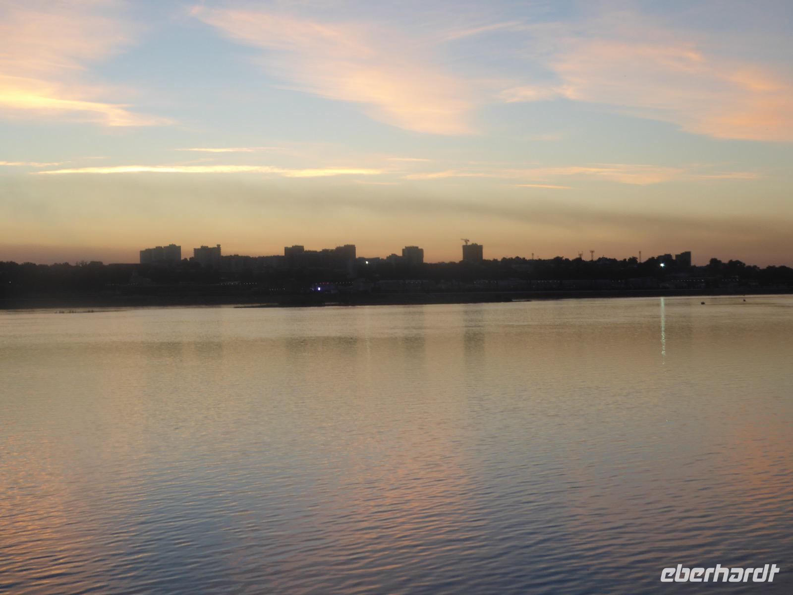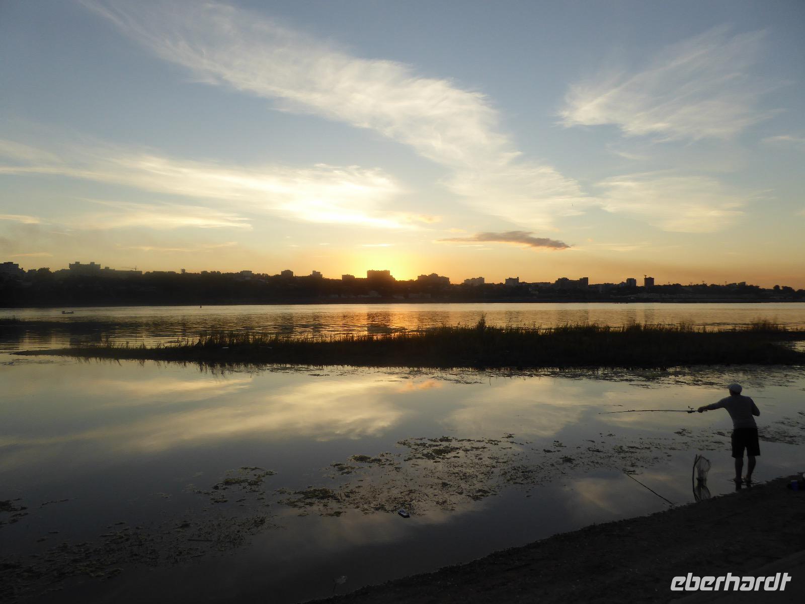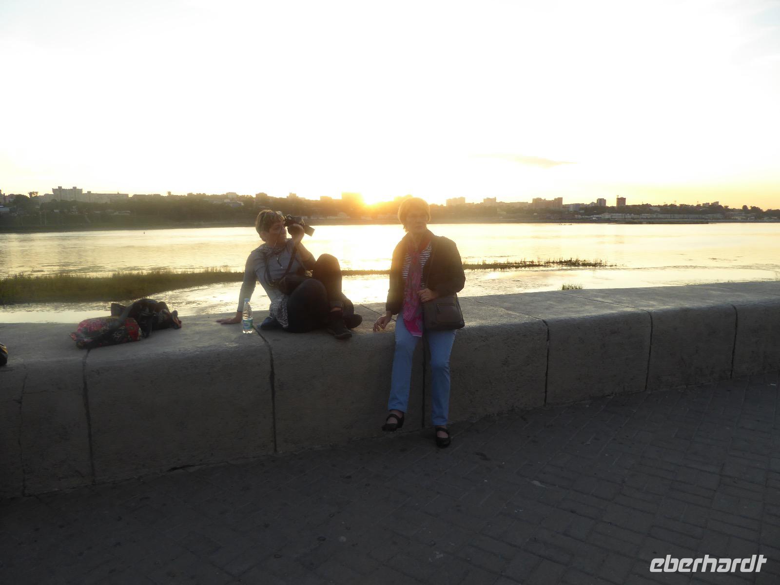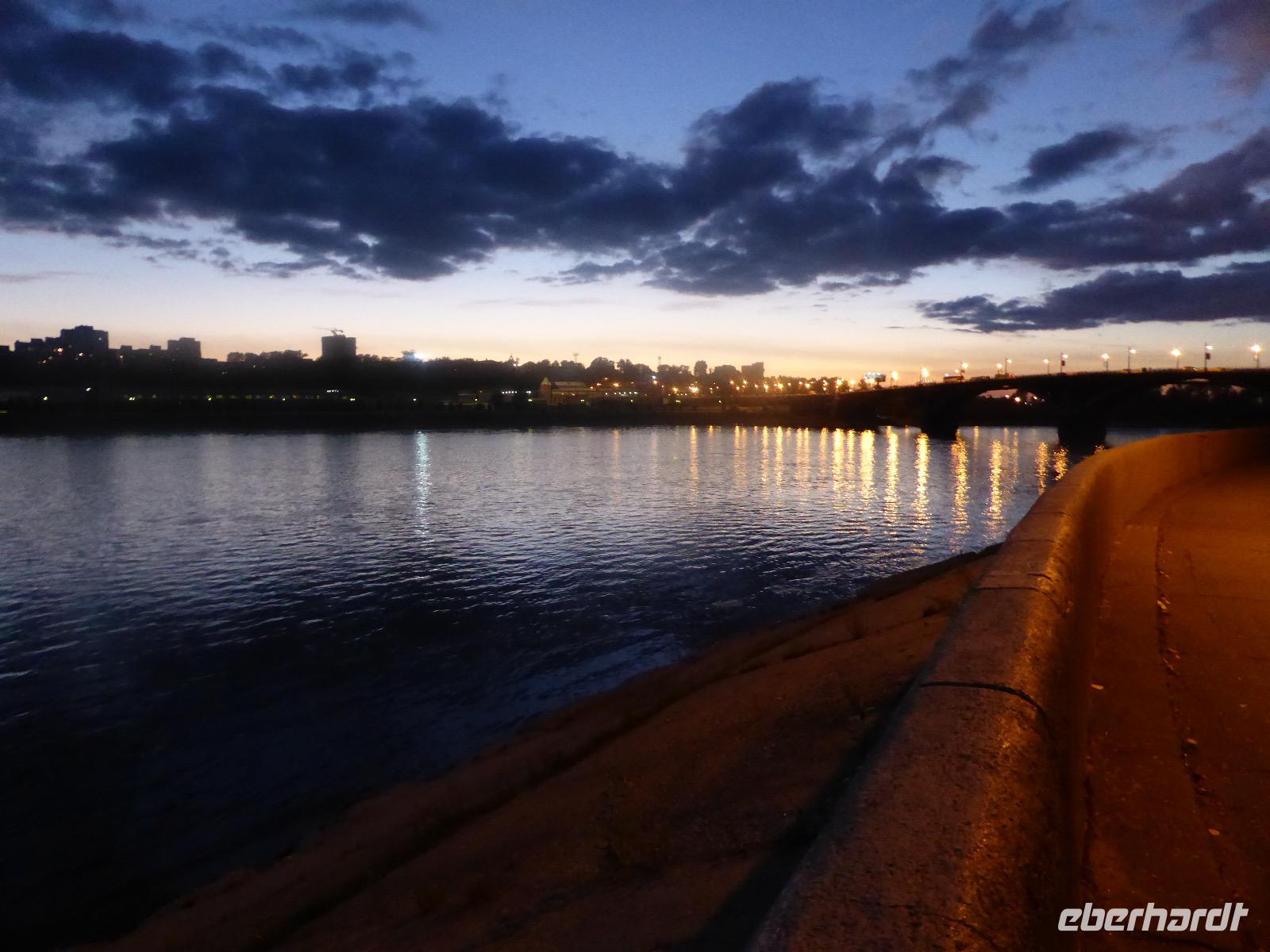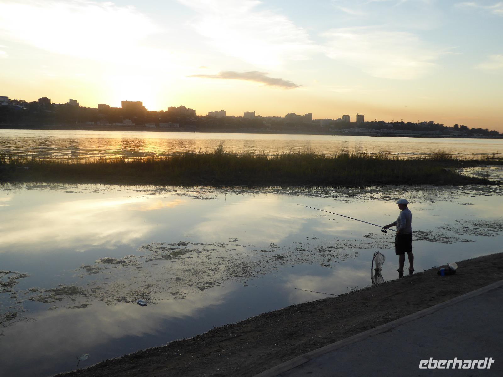 Frühmorgens kommen wir in Irkutsk an. Nach 5 Stunden plus 10 Minuten Flug etwas müde. Tanja erwartet uns bereits am Ausgang. Sie ist unternehmungslustig und freut sich auf einen schönen Tag mit uns. Gemeinsam holen wir das Gepäck (Achtung! Abschnitt aufheben!) und verstauen es im Gepäckbus. Wir Gäste quetschen uns in einen zweiten Bus, der ist so klein, trotzdem sind zwei Plätze frei. Zunächst bringen wir das Gepäck ins Hotel. Da wir kein Frühstück hatten, bringt uns Tanja zunächst in ein überraschend modernes Kaffee. Wer ahnt denn schon, dass es geschlagene zwei Stunden dauert, bis der letzte sinen Kaffee hat? Mit unserem Bus fahren wir nun durch Irkutsk. Erste Station: das Ewige Feuer. In 21 Städten Russlands brennt das Ewige Feuer, das an die Gefallenen des 2. Weltkriegs erinnert. Hier wurde es am 9. Mai 1975 entfacht. An besonderen Tagen halten irkutsker Schüler hier eine Ehrenwache. Auf den Granitplatten liegen (immer) frische Blumen. Wir besuchen die Erlöserkirche, die 1672 zum ersten Mal an diesem Platz errichtet wurde. Während der Sowjetzeit war die Kirche geschlossen, aber das Gebäude blieb erhalten. Von 1970 bis 1980 wurde die Kirche restauriert. Anschließend besuchen wir die polnische Kirche. Der Name kommt daher, dass polnische Verbannte die Kirche von ihren Spenden errichten ließen. In Polen gilt dies Kirche als polnisches Kulturerbe. Am Denkmal für den Kosakenführer Jakow Pochabow berichtet uns Tanja von der Geschichte Irkutsks. Das Land, auf dem sich die heutige Stadt befindet, wurde 1661 von eben genanntem Kosakenführer entdeckt und besiedelt. Etwa einhundert Jahre später enststand die erste Straße nach Moskau. Über diese wurde der Handel mit den Schätzen Sibiriens und Chinas abgewickelt, wodurch sich die Stadt elementar veränderte. Die nach Irkutsk verbannten Politischen trugen dazu bei, dass sich die Stadt zu einem kulturellen und wissenschaftlichen Zentrum entwickelte. Von der Geschichte der Stadt erfahren wir dann noch einiges bei einer ausgiebigen Führung durch das Heimatmuseum. Den Abend verbringen wir mit einem romantischen Spaziergang bei Sonnenuntergang an der Angara. Hier lassen wir uns auch das leckere russische Eis schmecken.