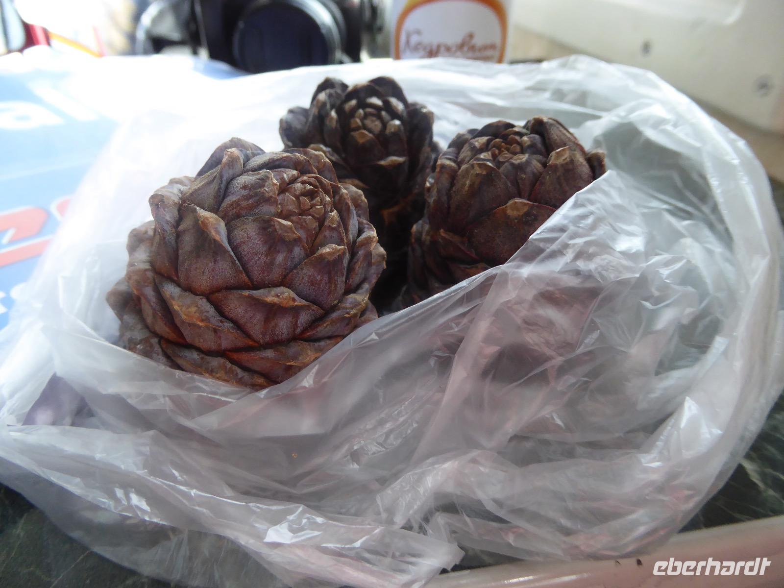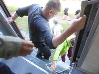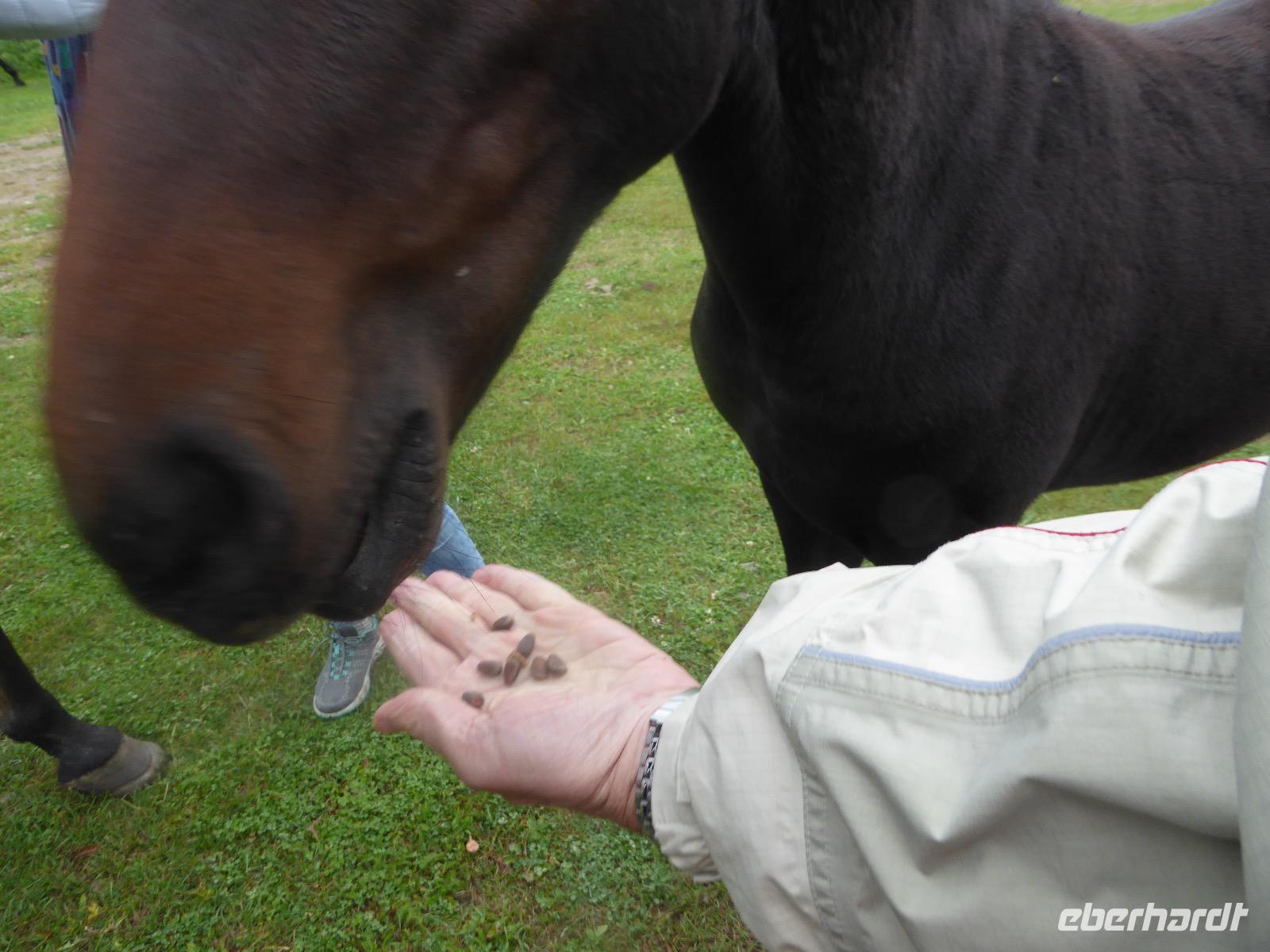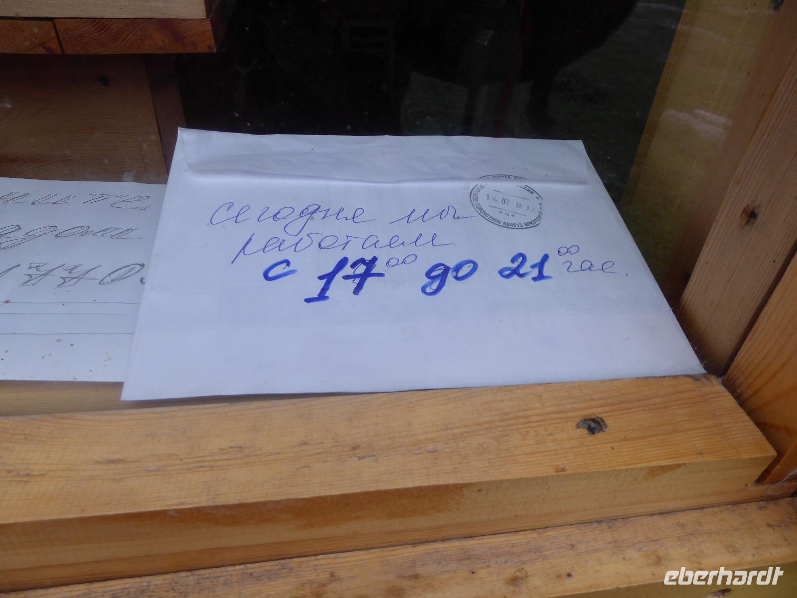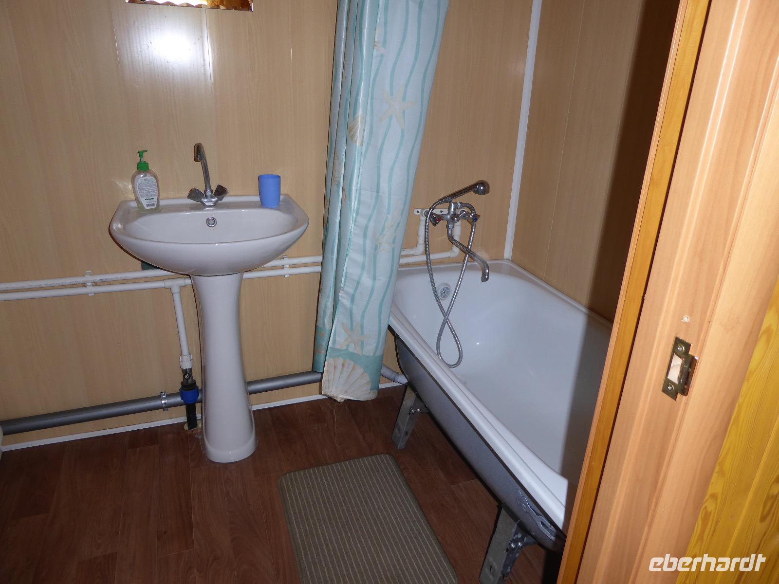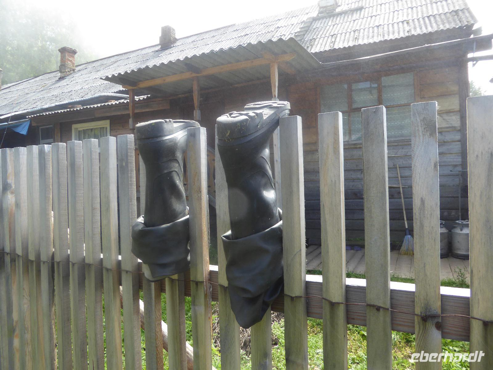 Wer will mit zum Fischmarkt? Fragt Tanja. Fast alle sind dabei. Erwartet wird ein kleiner Spaziergang endend in einem großen Erlebnis. Der Nieselregen ist fies. Bald sind wir durchnässt. Nach einer halben Stunde regt sich der erste Protest. Tanja, wie weit noch? Noch zehn Minuten... Tanjas zehn Minuten. Wir kommen am Fischmarkt an. Kaum jemand ist dort. Kein Wetter für Markt. Nur ein paar wenige Frau bieten Fisch an, ein Mann beschäftigt sich damit, einen eisernen Ofen anzufeuern. Tanja ruft Taxis für den Rückweg. Ein bisschen Zeit, sich frisch zu machen und unser Gepäck wird vom Zimmer abgeholt. Mit dem Taxi fahren wir zum Hafen. Über eine Leiter müssen wir unser Gepäck balancieren, die Männer übernehmen das bravourös. Die EISBERG, so heißt unser Schiff, wird uns in fünf Stunden über den Baikalsee nach Bolschoje Goloustnoje bringen. Kaum sind alle Passagiere und alle Koffer an Bord, beginnt unsere abenteuerliche Seefahrt. Die Wellen sind recht hoch und unser Schiffchen wackelt bedenklich. Jeder muss eine Rettungsweste anziehen, anschließend bekommen wir Decken, denn es ist doch recht kalt. Der Tisch wird gedeckt. Schwarzbrot und Brötchen, Butter und Käse, Wurst, Sardinen in Tomatensoße. Dazu Tee. Tanja kocht und deckt unermüdlich den Tisch. Wir lassen es uns schmecken. Den ersten Stopp legen wir an der Bucht der Großen Katze bzw. Fischfalle ein. Tanja erklärt uns die einheimische Tierwelt. Nach zehn Minuten Fußweg ist ein Dorf zu sehen. Zwischen uns und dem Dorf ein Fluss. Zu breit und zu kalt, um ihn ohne Brücke zu überqueren, denn die ist kaputt. Wir laufen am Flussbett entlang und finden eine richtige steinerne Brücke. So gelangen wir ins Dorf. Freilaufende Pferde erwecken unsere Aufmerksamkeit. Sie sind zutraulich und erwarten Futter. Im Konsum kaufen wir Brot und Wodka. Das Brot für die Pferde, den Wodka für uns. Zurück an Bord gibt es den warm geräucherten Omul, den Tanja für uns auf dem Fischmarkt eingekauft hat. Im Pribalski Naturreservat legen wir den zweiten Stopp ein. Eine Stunde haben wir Zeit, zu wandern, die Natur zu genießen und uns an den Blümchen zu erfreuen. Aber erst will der Rancher die Erlaubnis sehen, die wir haben, um den Park zu besuchen. Auf dem Rückweg fordert der Baikalsee uns alles ab. Das Wasser klatscht in hohem Bogen ins Schiff. Rucksäcke, Hosen und viele Füße sind nass. Es stürmt und unser Schiff ist dem Willen der Natur ausgeliefert und wir damit auch. Trotzdem wird niemand seekrank. Wir sind froh als wir pünktlich in Bolschoje Golustnoje ankommen. Soja erwartet uns mit einem Auto, in das das ganze Gepäck passen soll. Wir bezweifeln das, werden aber eines Besseren belehrt. Das Gepäck fährt, wir laufen. In zwanzig Minuten erreichen wir Gasthaus Nummer 1. Galina ist die Gastgeberin. Sechs Gäste und Tanja bleiben hier. Die anderen laufen zehn Minuten weiter zum Gasthaus Nummer 2. Dieses gehört Soja, das Nachbarhaus ihrer Tochter Anna. Die Banja ist geheizt. Wir nehmen uns die Zeit, uns mit Birkenzweigen zu malträtieren und lernen, wie entspannend das ist. Wolodja, der Sohn von Anna bringt die Gäste von Haus Nummer 2 nach Haus Nummer 1, denn dort gibt es Abendessen. Bei einem Stopp am Magasin kaufen wir Wodka, um uns den Abend zu versüßen. Zum Abendessen gibt es Krautsalat, Reisbrei und einen Fleischklops. Und viel Wodka. Später fährt Wolodja die Gäste von Haus Nummer 2 zurück. Gute Nacht.