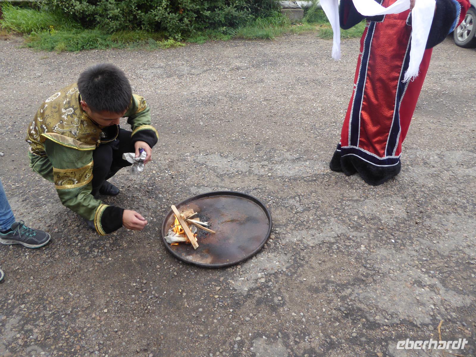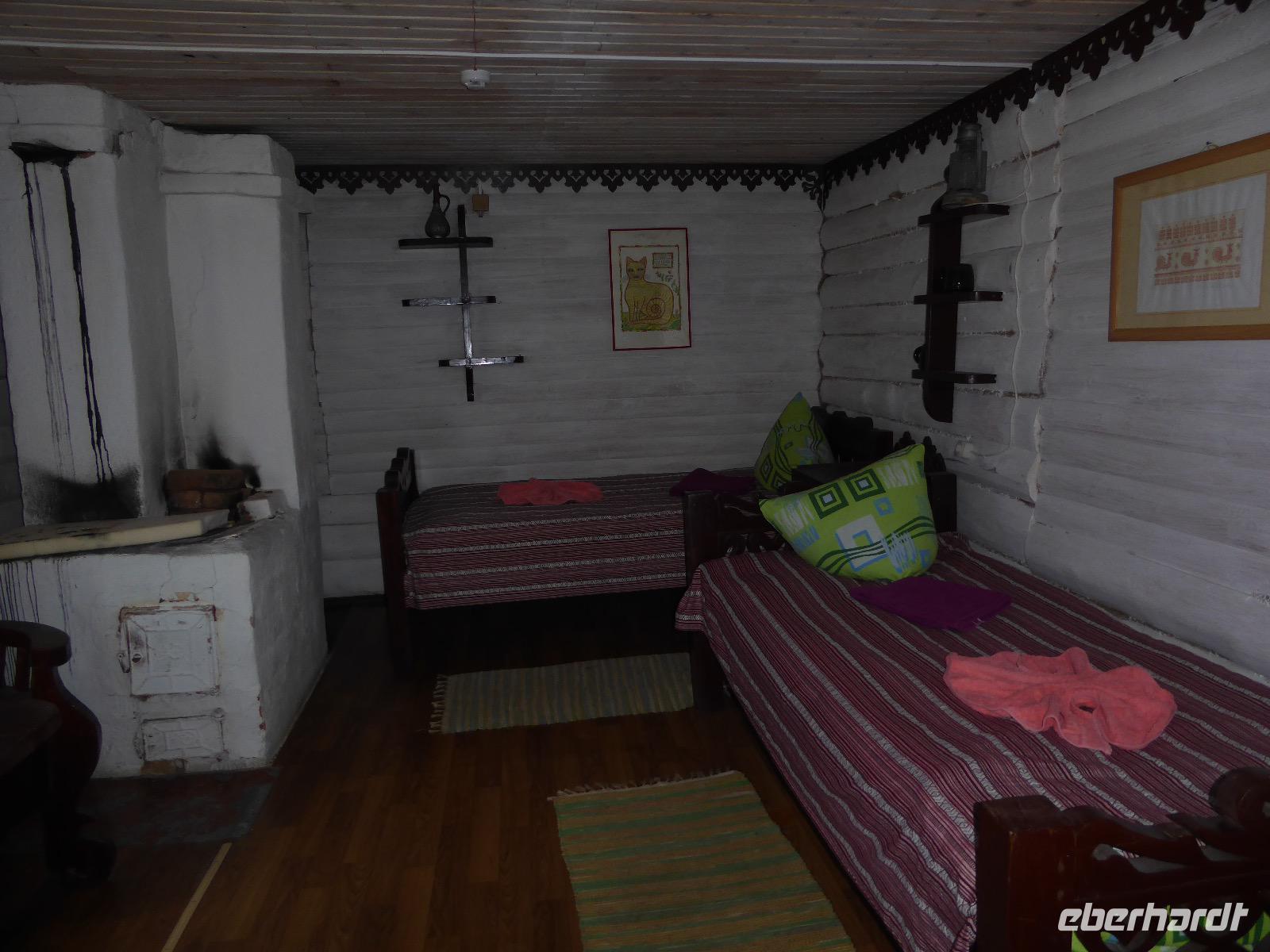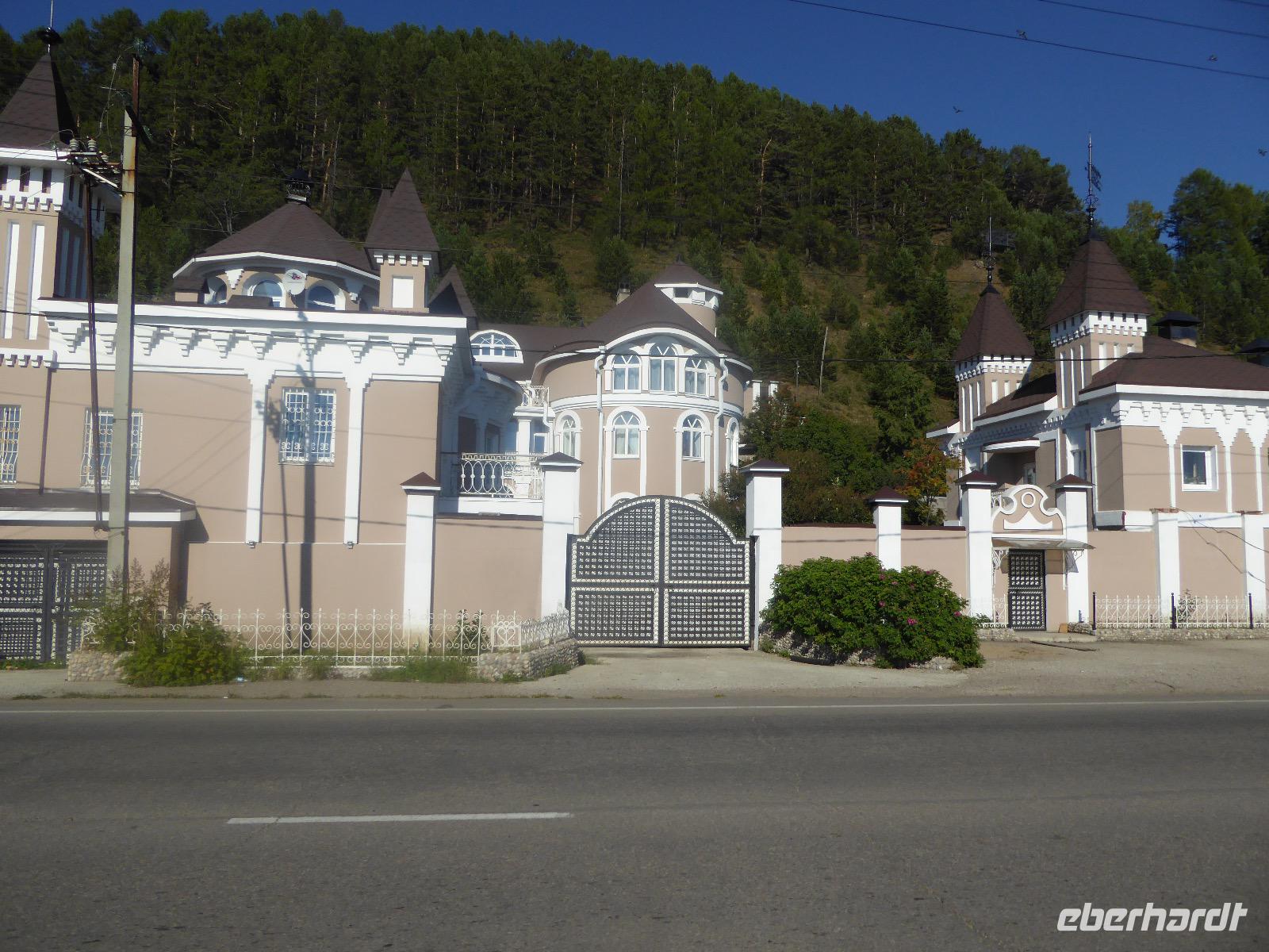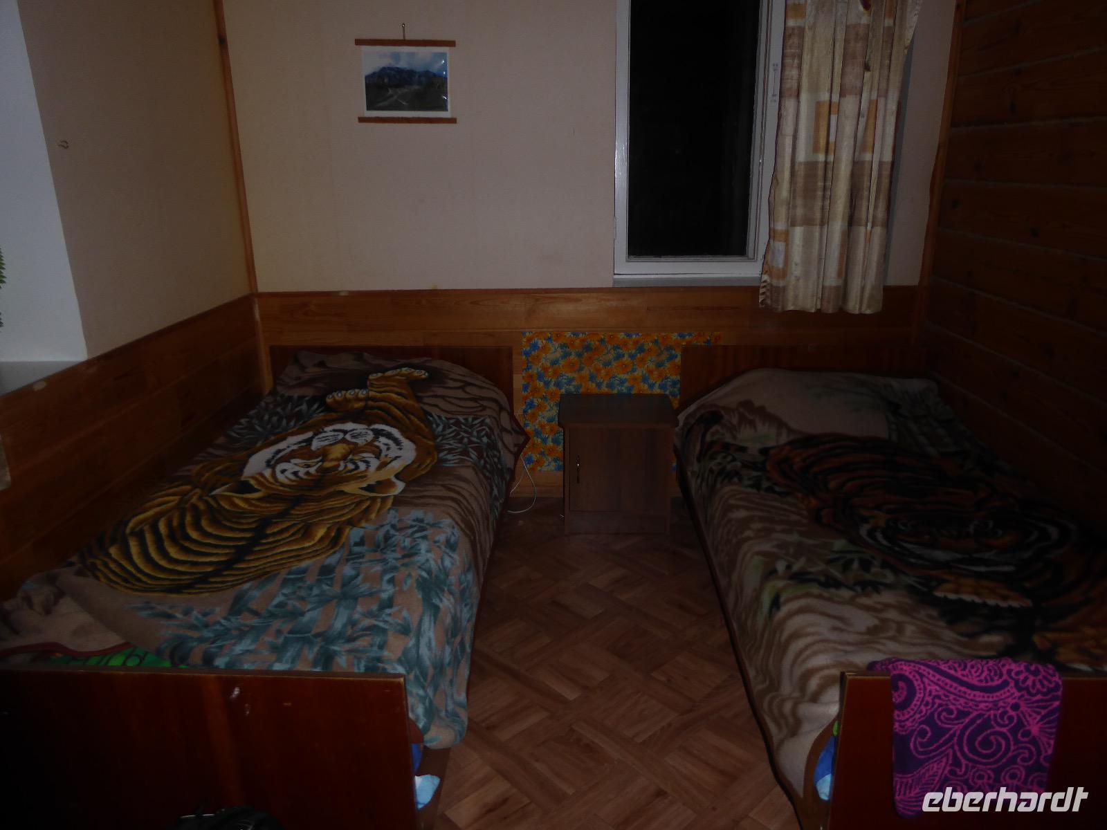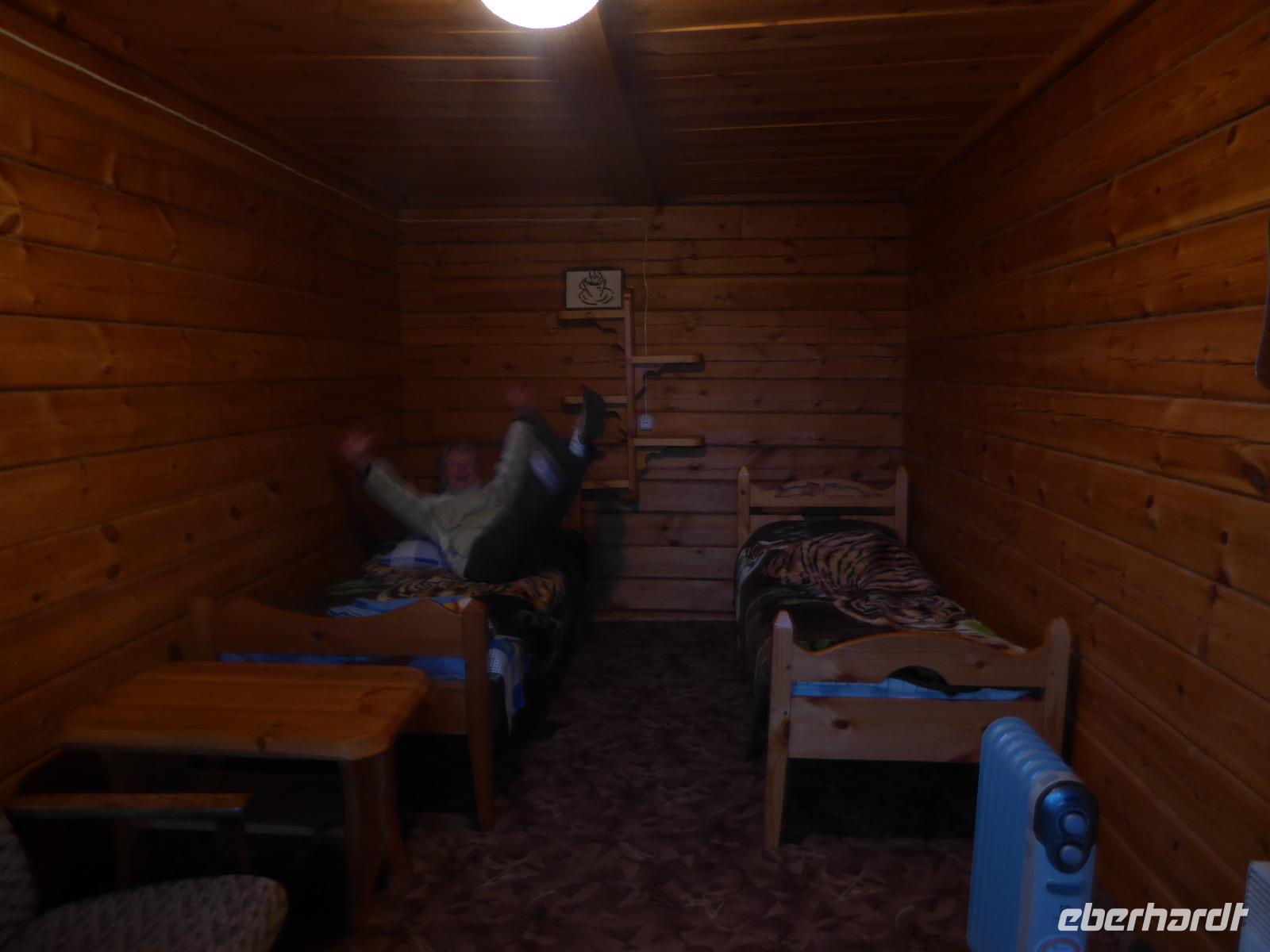 Warme Worte und viele Umarmungen werden gewechselt. Dann stehen die Autos vor der Tür. Irgendjemand hat beschlossen, dass wir nicht zusammen in einem Auto fahren, sondern uns auf beide Autos aufteilen. Gesagt, getan. Die Gruppen von Haus 1 und Haus 2 fahren jetzt also getrennt weiter. Drei Stunden sind es bis Irkutsk. Davon ca. vierzig Kilometer Huckelpiste, also unbefestigte Straße. Wir werden ordentlich durchgerüttelt. In Irkutsk wird ein Auto ausgetauscht. Tanja lässt uns wieder alle zusammen in ein Auto einsteigen. Nun aber haben wir uns schon an die Bequemlichkeit des anderen Autos gewöhnt, außerdem sitzt es sich auf der letzten Reihe wirklich schlecht. Nach kurzer Rücksprache, teilen wir uns wieder auf beide Autos auf. An einer Bank muss Tanja Geld abholen. Das dauert sehr lange, weil es nur einen Automaten gibt. Anschließend starten wir einen Großeinkauf. Morgen wollen wir Picknick machen und wir müssen alles mitnehmen. Der russische Supermarkt macht einen hervorragenden Umsatz an zusätzlich gekauftem Wodka und Süßigkeiten. Noch zwei Stunden Autofahrt und wir kommen am Restaurant an. In einem gemütlichen burjatischen Ambiente gibt es Nudelsuppe, Posy und Kuchen. Bald darauf erreichen wir das Museum in Ust Orda. Wir gehen hinein und kurz darauf wieder hinaus. Unsere Gastgeber sind noch nicht so weit. Ein Mann und eine Frau in burjatischer Tracht zünden vor dem Museum ein kleines Feuer an. Mit einem traditionellen burjatischem Lied werden wir begrüßt. Die Männer müssen ihre Beine und die Frauen ihre Arme über dem Feuer kreisen lassen. Das bringt Glück. Die burjatische Frau hat auch eine Schüssel mit Milch in der Hand. So weiß wie die Milch soll der weitere Weg unserer Reise sein. Das wünscht sie uns. Danke schön. Wir werden durch das Museum geführt. Es besteht schon seit 1938 und wurde während der Sowjetzeit mit Orden ausgezeichnet. Da es ein Geschichtsmuseum ist, beginnt die Ausstellung mit einem 2500jahre altem Jägerzelt und Mammutknochen. Wir erfahren einiges über das harte burjatische Leben, über Handwerkskunst und Schamanen. Nach der Besichtigung erwartet uns das einzige staatliche Folkloreensemble des Burjatischen Bezirke "Steppen-Melodie". Eine Gruppe von zwanzig Sängern und Tänzern, die für uns eine großartige Vorstellung bringen. Der Chef der Gruppe stellt uns seine Mannschaft und die Musikinstrumente vor. Er erklärt vor jedem Lied und vor jedem Tanz, worum es geht. Er fragt auch nach unserem woher und wohin. Da die Männer im burjatischem Leben das Sagen haben, dürfen unsere Männer auch zum Tanz antreten. Auch zu einem Ringkampf werden sie aufgefordert. Hier stellt sich heraus, dass Toni ein ehemaliger Ringer ist. Und er schlägt sich tatsächlich nicht schlecht. Der junge Burjate hat kaum eine Chance. Alles natürlich nur Spiel und Spaß. Zum Abschluss tanzen wir alle den Reigen der Freundschaft. Wir lernen wie man sich burjatisch begrüßt und werden dann verabschiedet. Das war ein einmaliges Erlebnis und definitiv ein Höhepunkt dieser Reise. Wir haben noch drei Stunden Fahrt vor uns. Ziel ist die Krestovaja Bucht. Noch gibt es eine glatte Straße, die zwar bergauf bergab führt, aber eben eine Straße ist. Zwanzig Kilometer vor unserem Ziel biegen wir von der Straße ab. Jetzt sind wir auf einem modrigen Waldboden unterwegs. Immer wieder müssen die Fahrer aussteigen und abschätzen, ob sie durch diese oder jene Pfütze durchfahren können. Langsam wird es dunkel und Tanja mahnt zur Eile. Auf dieser Piste will niemand im Dunkeln unterwegs sein. Aber wir schaffen es. Nur noch ein Stückchen und wir sind am Krestovaja Resort, unserer heutigen Unterkunft. Unsere Gastgeberin begrüßt uns freundlich und kommt unserer dringenden Bitte nach, uns Zimmer mit Dusche und Toilette zur Verfügung zu stellen. Davon gibt es nur vier. Zwei davon mit Innen-WC, bei den anderen beiden befindet sich die Nasszelle direkt neben dem Zimmer. Trotzdem, für hiesige Verhältnisse äußerst komfortabel. Die Glücklichen, die diese Zimmer erwischt haben, laden die anderen ein, Dusche und WC mit zu benutzen. Danke, Ihr Lieben! Denn ansonsten gibt es nur ein Plumpsklo (was entsprechend riecht) und Duschen mit eisigkaltem Wasser. Das Abendessen ist fertig. Aufgetischt werden warmer Kartoffelstampf, kalte Frikadellen, Gemüsesalate mit viel Knoblauch und geröstete Brotkrumen zum Knabbern. Irgendjemand entdeckt, dass die Fahrer Suppe essen und bekommt Appetit darauf. Eine Nachfrage ergibt, dass die Suppe das Abendessen der Familie ist und nur noch wenig übrig ist. Dieses Wenige würden sie uns aber gerne geben, was sie auch tun. Der Dank gilt unseren herzlichen Gastgebern. Nach dem Abendessen sitzen wir in gemütlicher Wodka-Runde mit unseren Fahrern Sergej und Alexander zusammen und erfahren nun auch persönliches von ihnen. Sogar unser spröder Alexander taut auf und kommuniziert mit uns. Gegen halb elf löst sich die Runde auf, denn um elf wird der Generator abgestellt und es gibt keinen Strom und kein Licht mehr.