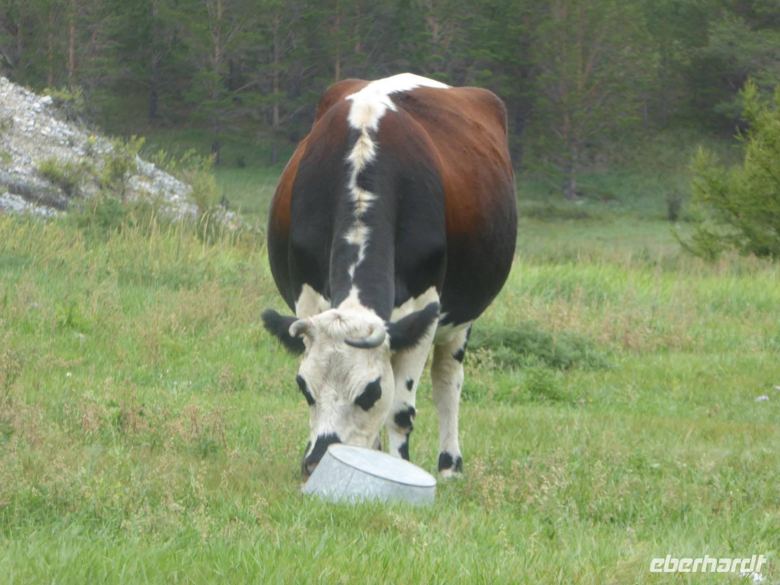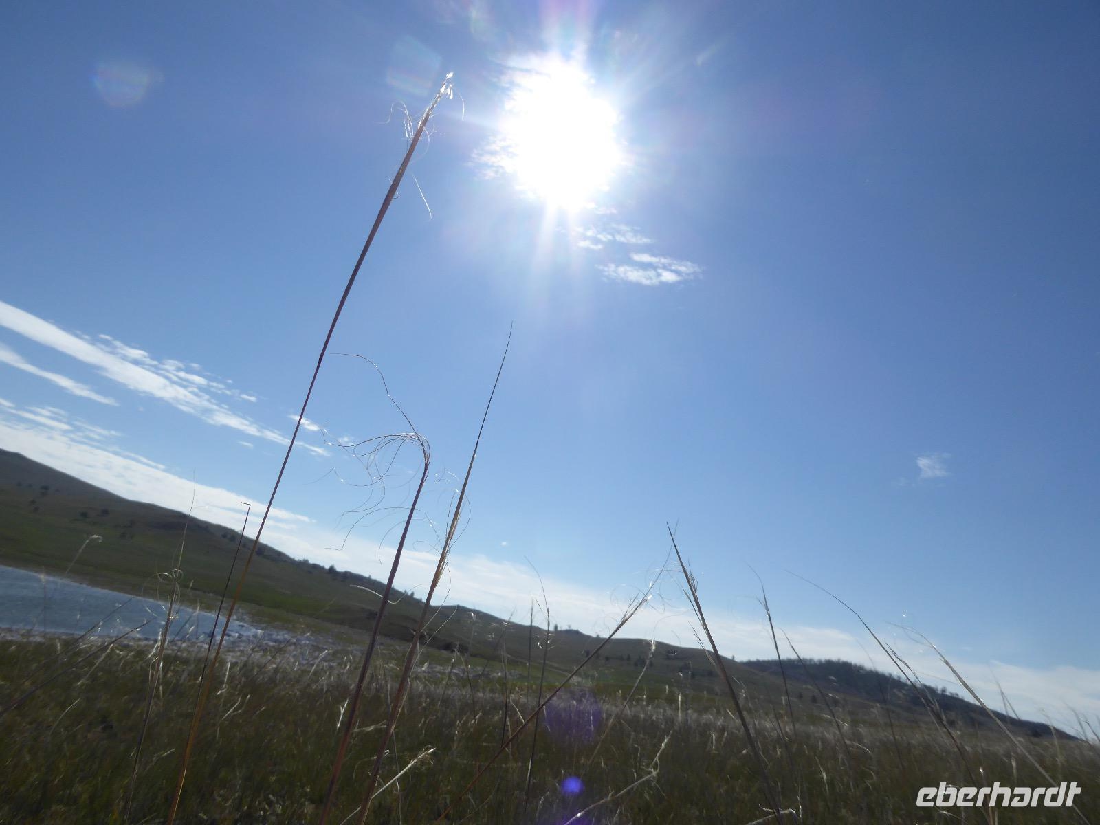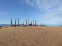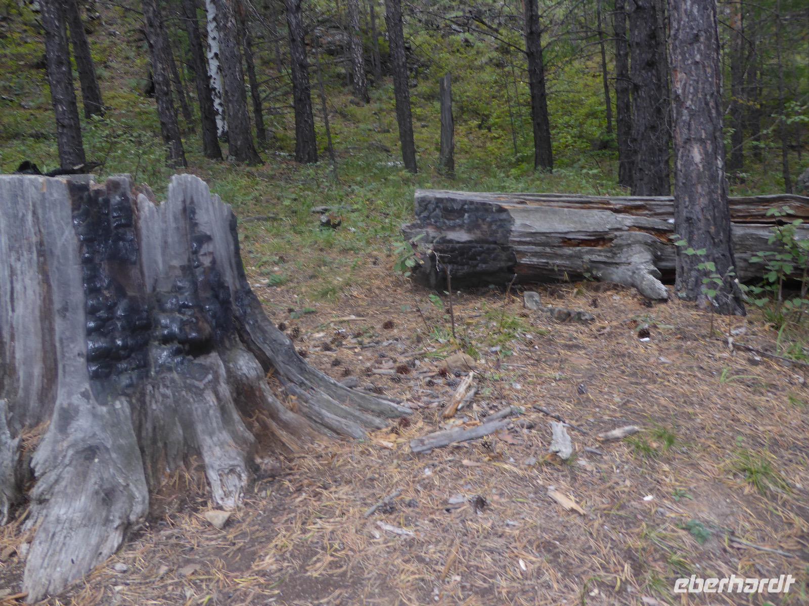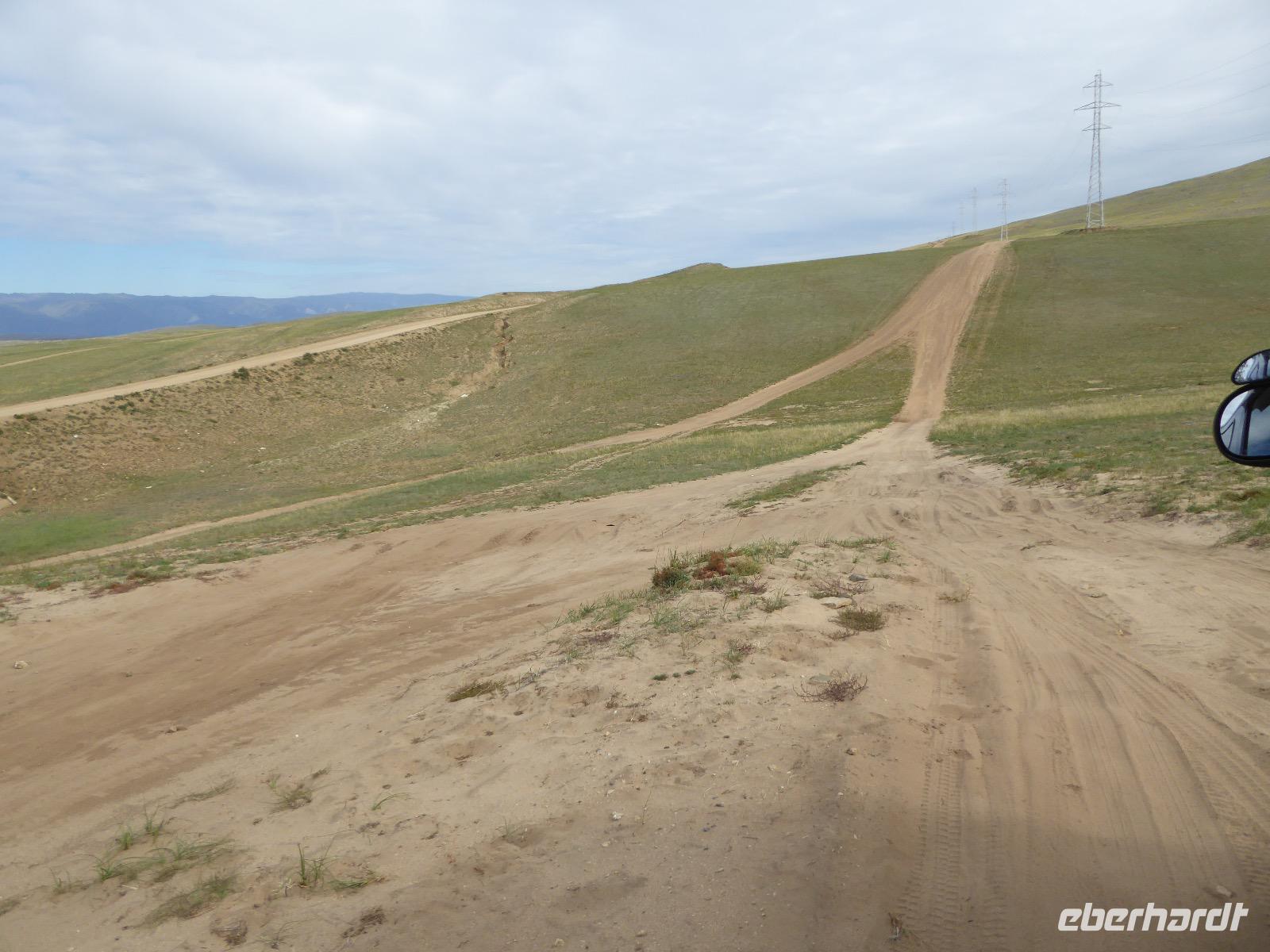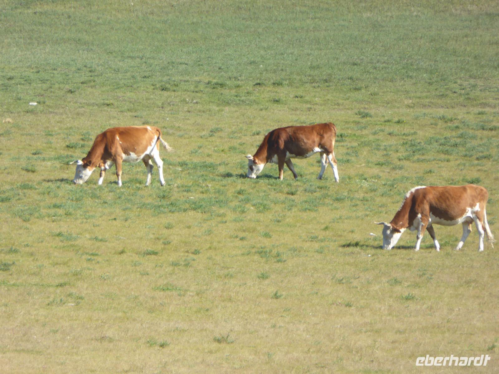 Früh ist es hell, wir brauchen keinen Strom für das Licht. Ein Morgenspaziergang am Baikalsee weckt die müden Glieder. Frühstück gibt es ab um neun. Hm, wie die Quarkkeulchen duften! Dazu Spiegelei auf sibirische Art, Brot, Marmelade, Tee. Kurz vor zehn laden wir die Koffer ein und verabschieden uns von Adel, unserer Gastgeberin. Wieder geht es auf und ab, wieder werden wir ordentlich durchgerüttelt. Doch es ist nicht so matschig wie gestern. Der Weg führt uns durch die traumhafte Landschaft der Tageransteppe. Wir halten an schönen Aussichtspunkten und um nach dem Weg zu schauen. Die Straße, die wir nehmen wollen, ist von Geröll überschüttet. Wir fahren zum Sagan-Saba und legen dort unser Picknick ein. Die Zutaten haben wir gestern im Magasin gekauft. Nun soll es zum Jeche-Jordo gehen. Unsere Tanja vertut sich etwas und hält am falschen Berg. Dafür bekommen wir hier ein Schauspiel der besonderen Art. Eine Gruppe Kühe und Bullen ist gerade dabei, Nachwuchs zu zeugen. Unseren nächsten Stopp legen wir am Adler-Totem ein - auch ein schamanischer Ort.