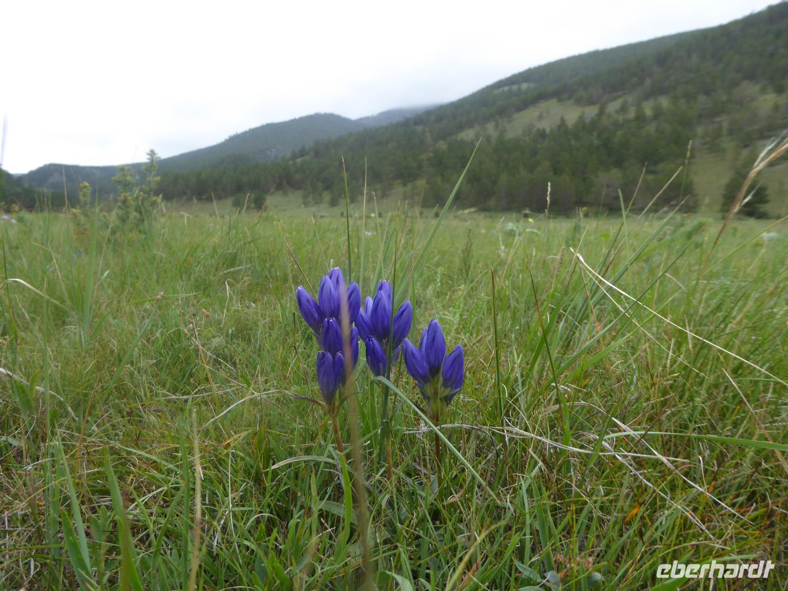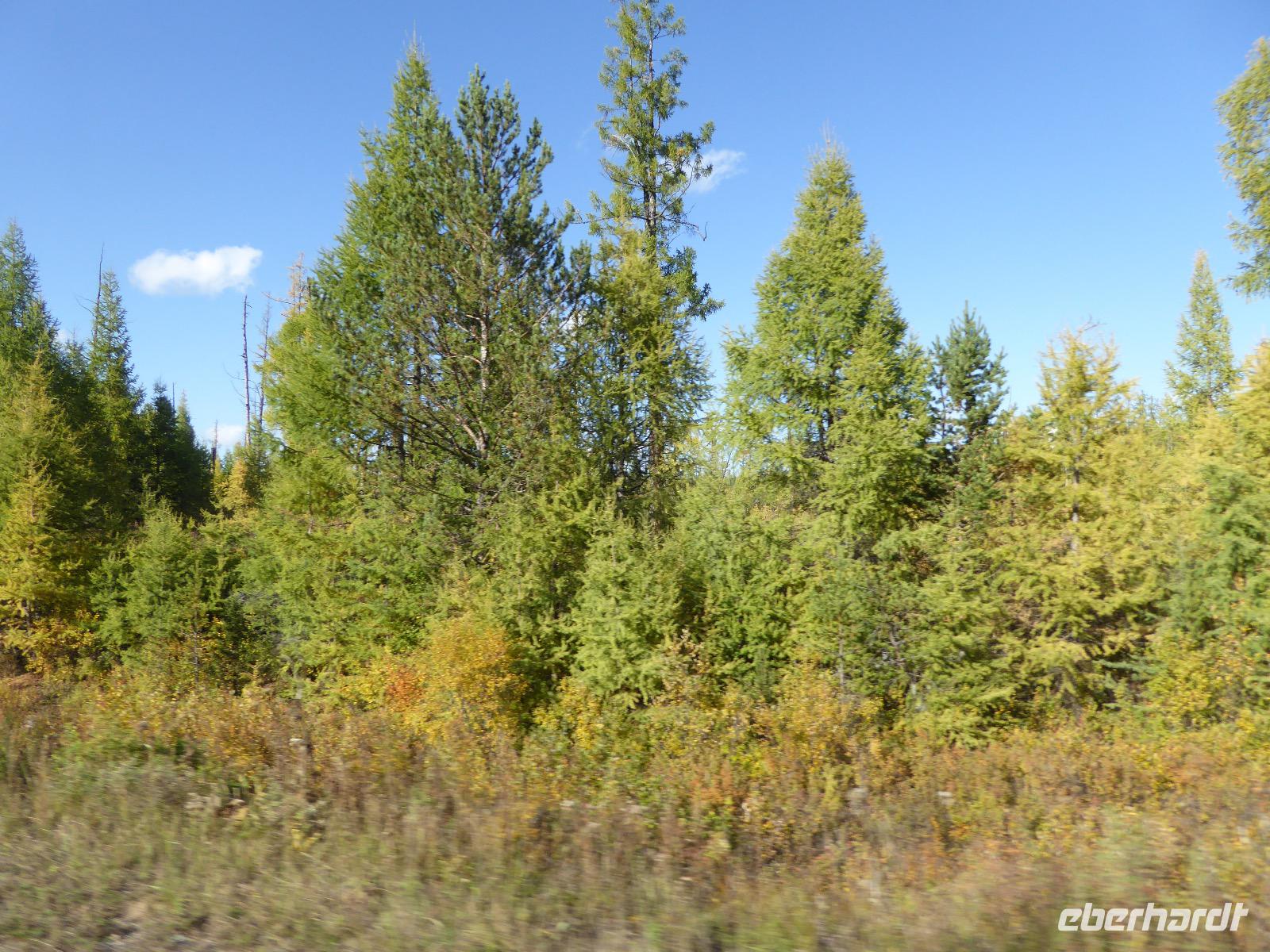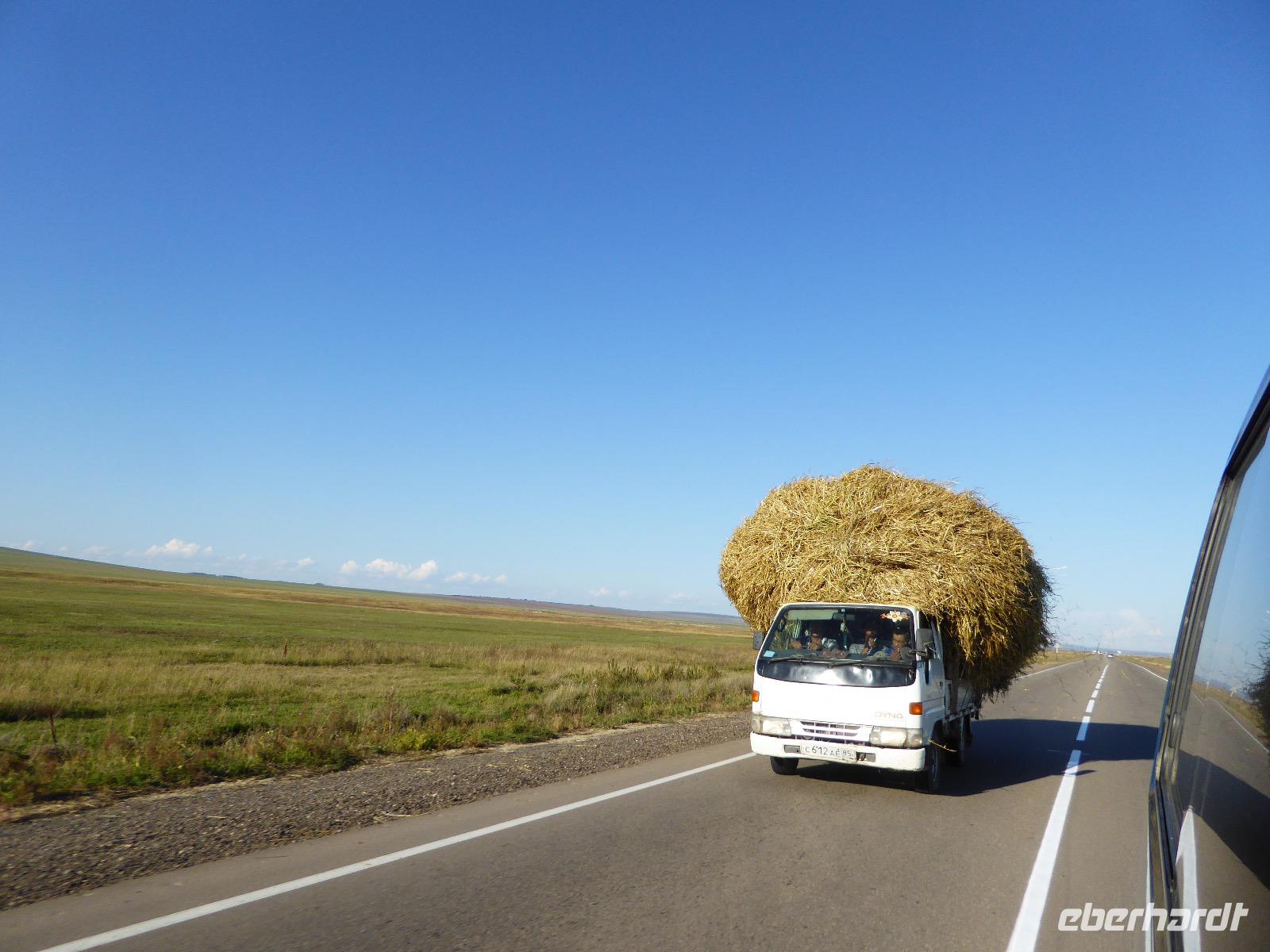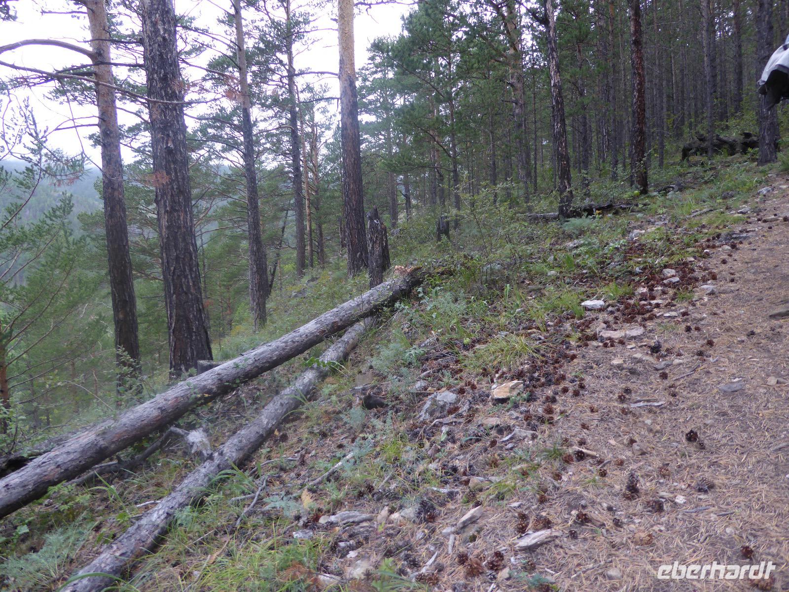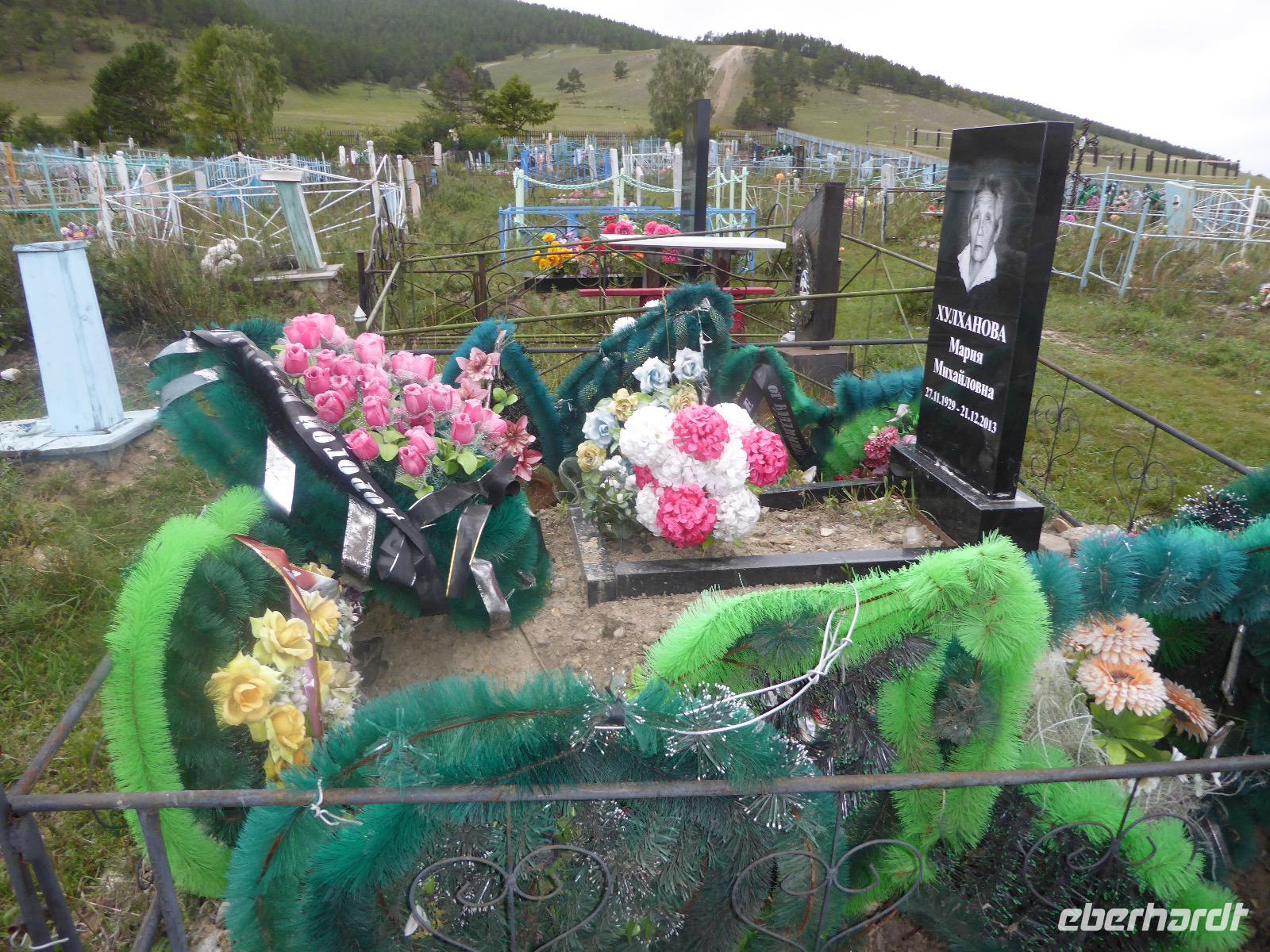 Früh ist es hell, wir brauchen keinen Strom für das Licht. Ein Morgenspaziergang am Baikalsee weckt die müden Glieder. Frühstück gibt es ab um neun. Hm, wie die Quarkkeulchen duften! Dazu Spiegelei auf sibirische Art, Brot, Marmelade, Tee. Kurz vor zehn laden wir die Koffer ein und verabschieden uns von Adel, unserer Gastgeberin. Wieder geht es auf und ab, wieder werden wir ordentlich durchgerüttelt. Doch es ist nicht so matschig wie gestern. Der Weg führt uns durch die traumhafte Landschaft der Tageransteppe. Wir halten an schönen Aussichtspunkten und um nach dem Weg zu schauen. Die Straße, die wir nehmen wollen, ist von Geröll überschüttet. Wir fahren zum Sagan-Saba und legen dort unser Picknick ein. Die Zutaten haben wir gestern im Magasin gekauft. Nun soll es zum Jeche-Jordo gehen. Unsere Tanja vertut sich etwas und hält am falschen Berg. Dafür bekommen wir hier ein Schauspiel der besonderen Art. Eine Gruppe Kühe und Bullen ist gerade dabei, Nachwuchs zu zeugen. Unseren nächsten Stopp legen wir am Adler-Totem ein - auch ein schamanischer Ort.
