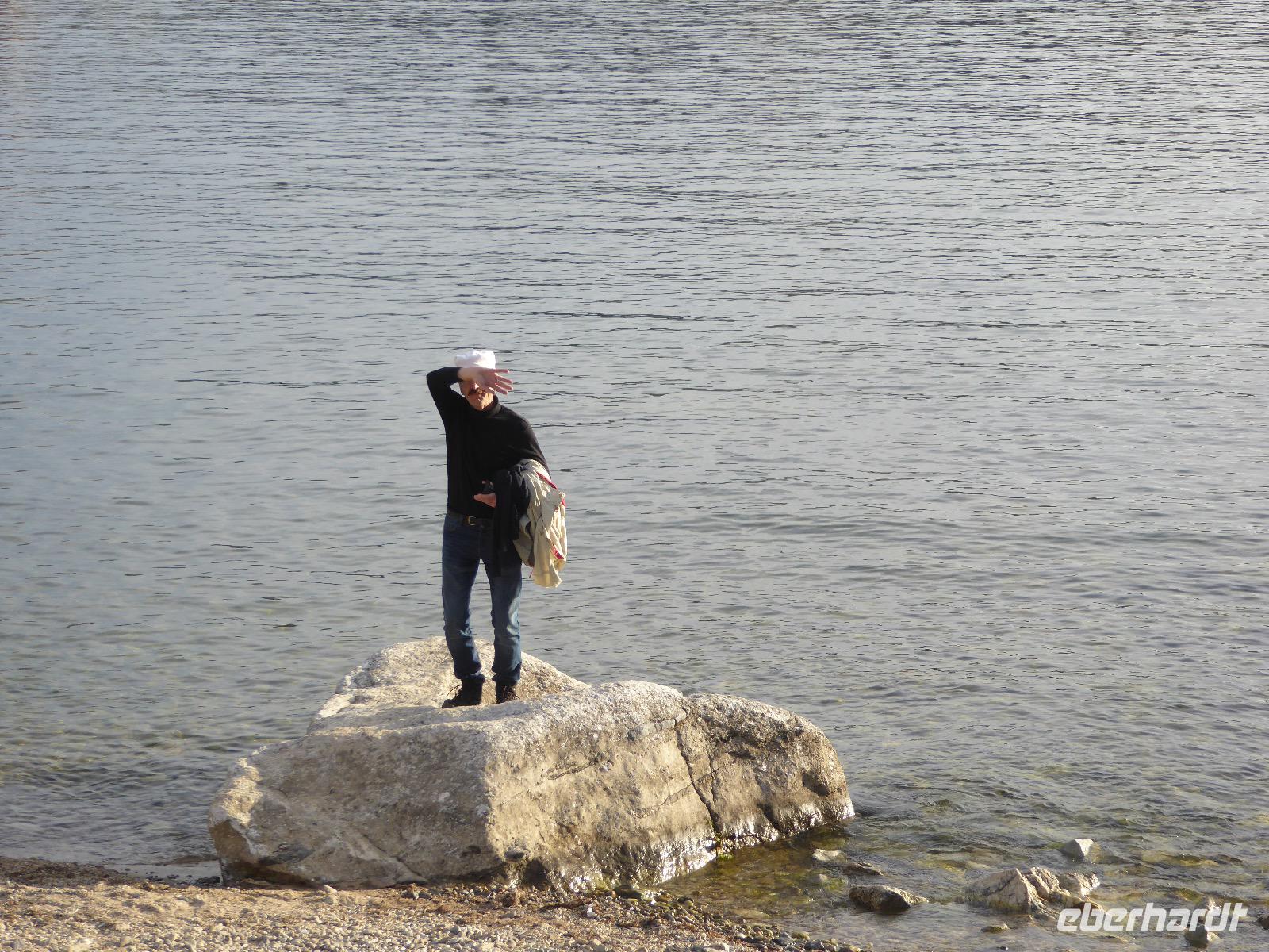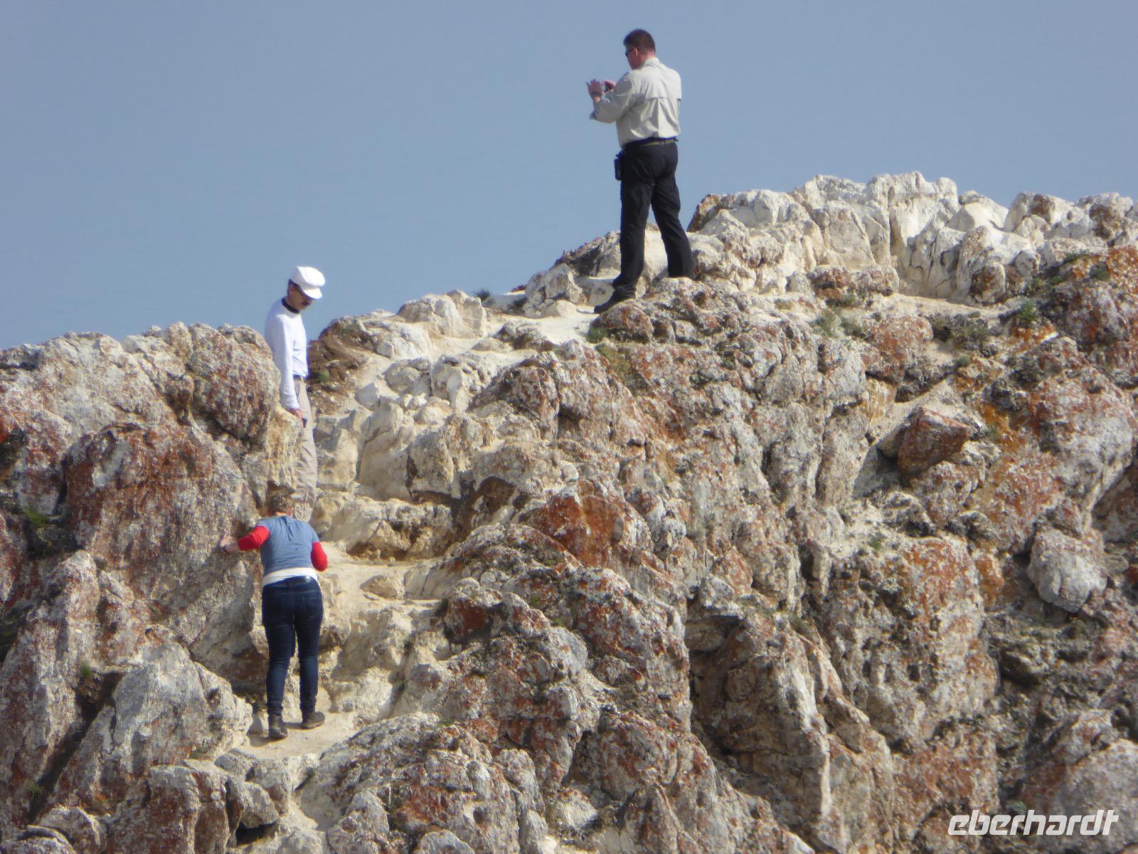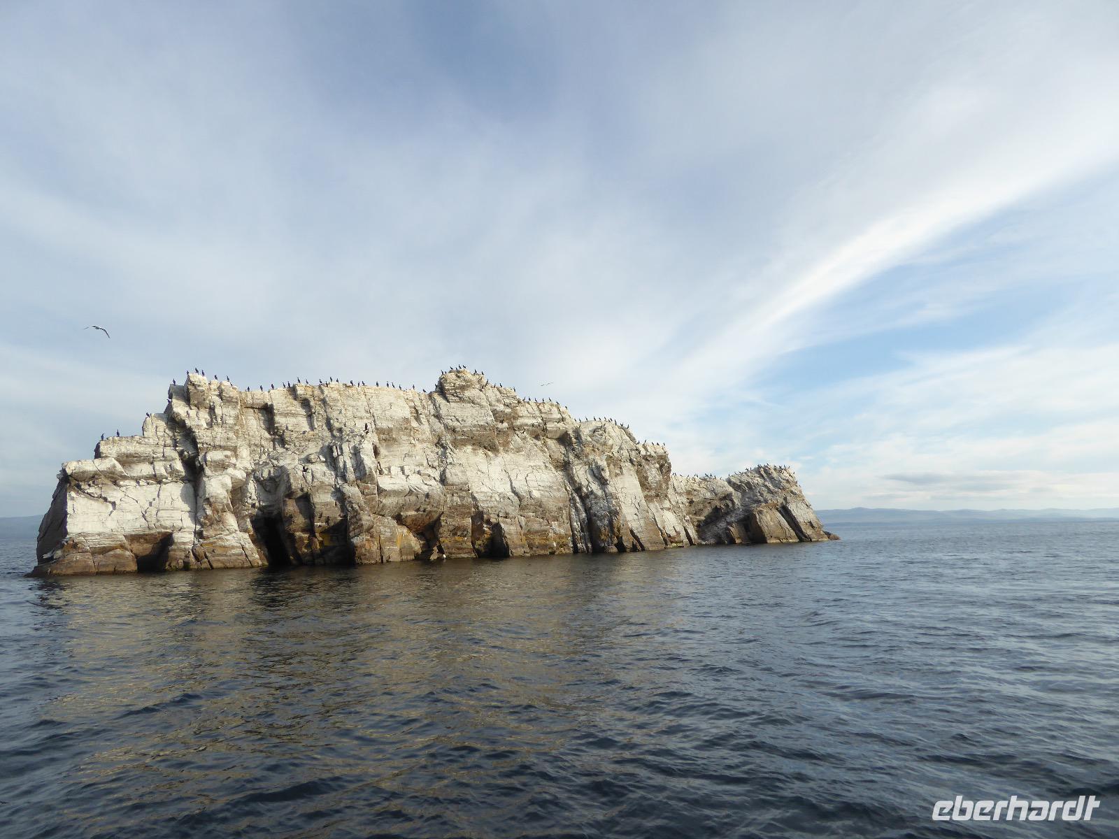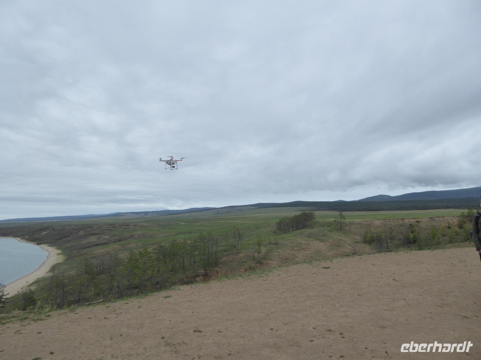 Nach einem gemeinsamen Frühstück steigen wir um zehn in zwei echte russische Geländewagen. Ein Tag voller Abenteuer erwartet uns. Über Stock und Stein geht die Fahrt, bei der wir wieder richtig durchgeschüttelt werden. Den ersten Stopp legen wir am sogenannten Krokodilfelsen ein, was dem Ort die Bezeichnung Natursteinzoo verleiht (es gibt auch noch einen Nilpferdfelsen). Unser Blick fällt auf eine schöne Sandbucht und auf eine Gruppe Chinesen. Diese sind gerade dabei eine Drohne zu starten. Neugierig beobachten wir das Treiben. Sie haben auch nichts dagegen, dass wir uns die ganze Sache aus der Nähe betrachten. Die Drohne startet, die Chinesen und Ingrid lassen sich von oben fotografieren und weg ist das Ding. Zeit, wieder in die Jeeps einzusteigen und weiter zu fahren. Nach ca. zwei Stunden haben wir das Hauptziel des heutigen Tages erreicht. Es ist das Kap Choboi (burjatisch „der Hauer" oder „der Eckzahn"). Von einer Seite aus betrachtet, könnte man meinen, ein Frauenprofil aus Stein zu sehen. Entsprechend gibt es auch eine Legende von einer Frau, die auf ihren Mann neidisch war, trotzdem sie alles hatte und von den Göttern zu Stein verwandelt wurde. Wir marschieren bis zum nördlichsten Ende und schließen dort Freundschaft mit Chinesen, die sich nicht von unserem Foto verscheuchen lassen und auf die Frage, wie sie denn heißen, immer „Cheina" antworten, weil sie denken, wir fragen sie nach ihrer Herkunft. Nachdem wir die Aussicht genossen und uns satt fotografiert haben, kehren wir zu unseren Bussen zurück. Hier erwarten uns unsere Fahrer bereits mit einer leckeren Omul-Fischsuppe, Weißbrot, Tomaten und Gurken und heißem Tee. Ein Falkenpaar jagen wir mit unseren Fotoapparaten und auch einige Möwen müssen daran glauben. Am Liebesfelsen klettern wir entweder in die eine oder andere Richtung, je nachdem, ob der Wunsch nach Nachwuchs ein Junge oder Mädchen ist. Die drei versteinerten Brüder erwarten uns beim nächsten Stopp. Die Legende besagt, dass ein Vater drei Söhne und eine Tochter hatte. Die Tochter rannte mit ihrem Freund davon, die Brüder sollten das Mädchen zurückbringen. Sie hielten jedoch zu ihrer Schwester und verrieten sie nicht. Der Vater, ein Schamane, sah alles und wütend verwandelte er seine Söhne zu Stein. Die meteorologische Station zu der wir als nächstes fahren, ist bereits geschlossen, die Saison ist vorbei. Weiter geht es über Stock und Stein und Sandboden, bis an einem Fahrzeug ein Rad seinen Geist aufgibt. Aber unsere wackeren Russen kennen das und flott ist das Rad ausgewechselt. Ein paar Meter weiter haben sich zwei nicht mehr ganz nüchterne Russen mit ihrem Pkw festgefahren. Auch diesen helfen unsere Fahrer aus ihrer misslichen Lage. Unseren letzten Halt legen wir an einer Stelle mit einer traurigen Geschichte ein. Hier gab es bis 1953 einen Gulag, das heißt ein russisches Lager mit Verbannten. Diese mussten für die Fischindustrie arbeiten, selbst im Winter bei minus 20 Grad. Heute sind nur noch ein paar Holzbohlen zu sehen, die damals eine Straße bildeten, auf der die Holzkarren Fisch transportierten. Nun ist der Ausflug zu Ende, aber Tanja hat noch für uns den Besuch der kleinen Kirche auf dem Programm. Dann ist es endlich Zeit, die Füße hochzulegen und aufs Abendessen zu warten.