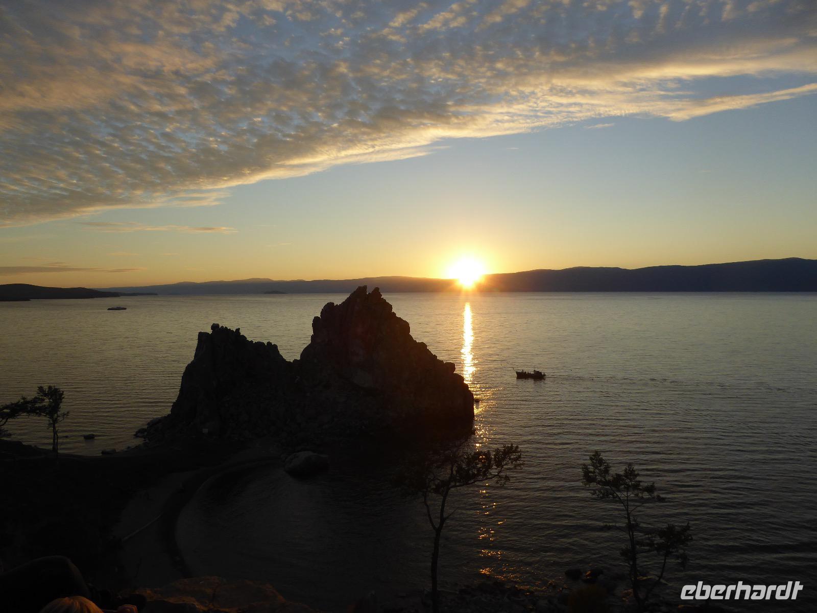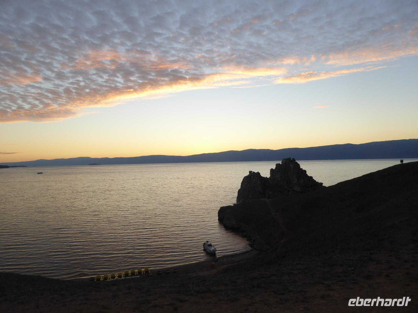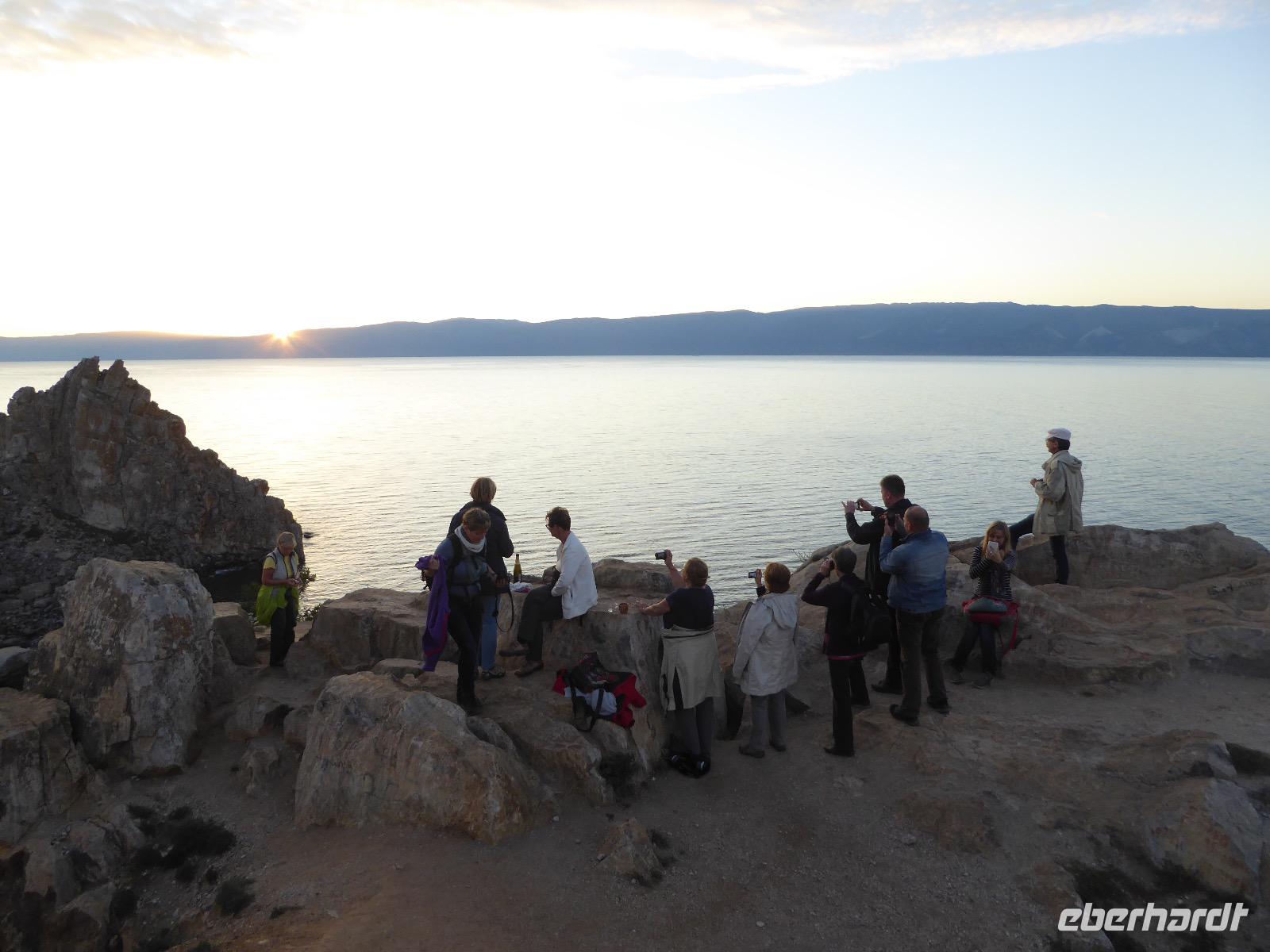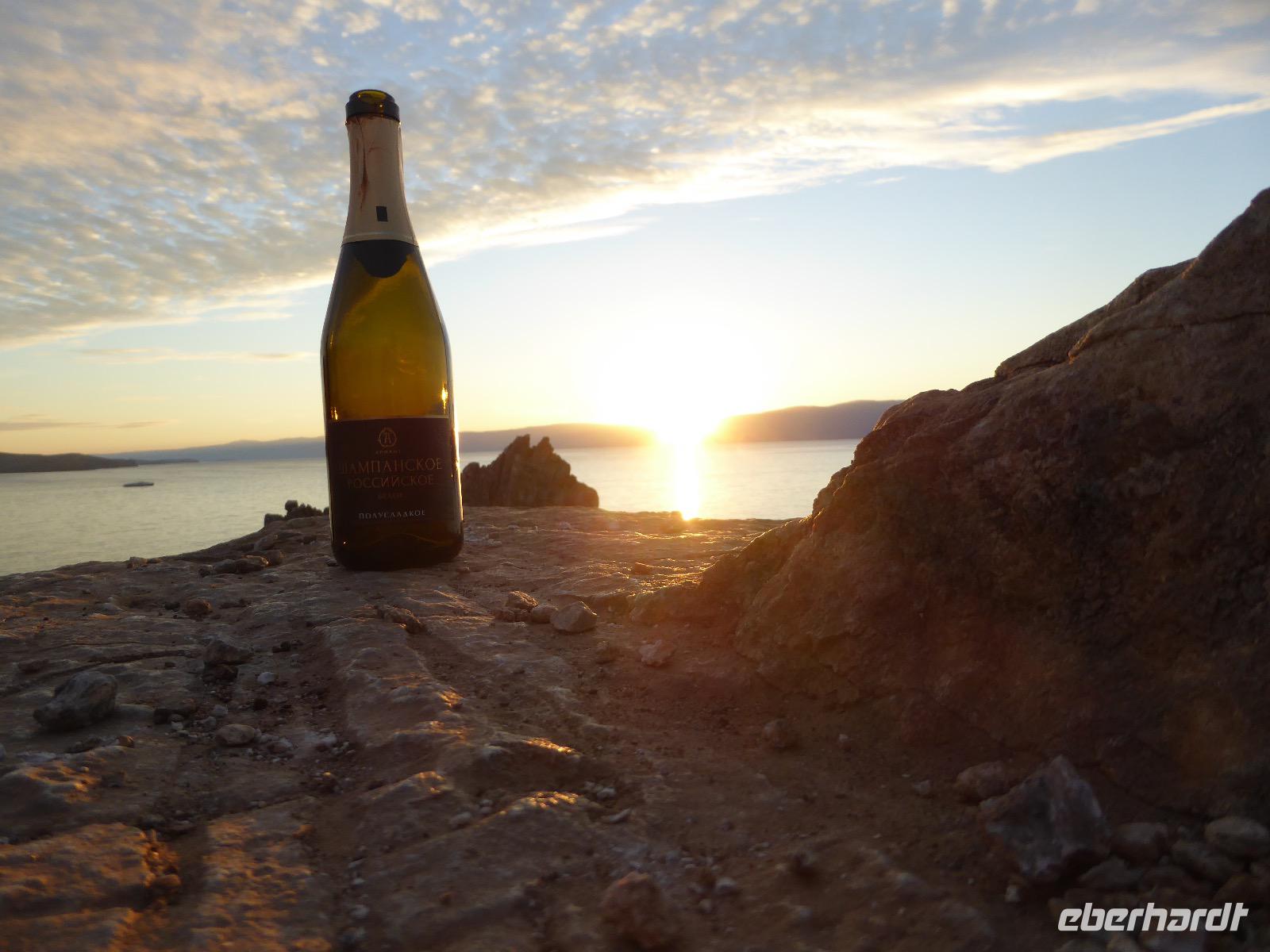 11. Tag: Mittwoch, 07.09.2016 Sonnenuntergang mit Russischem Champagner am Schamanenfelsen auf der Insel Olchon