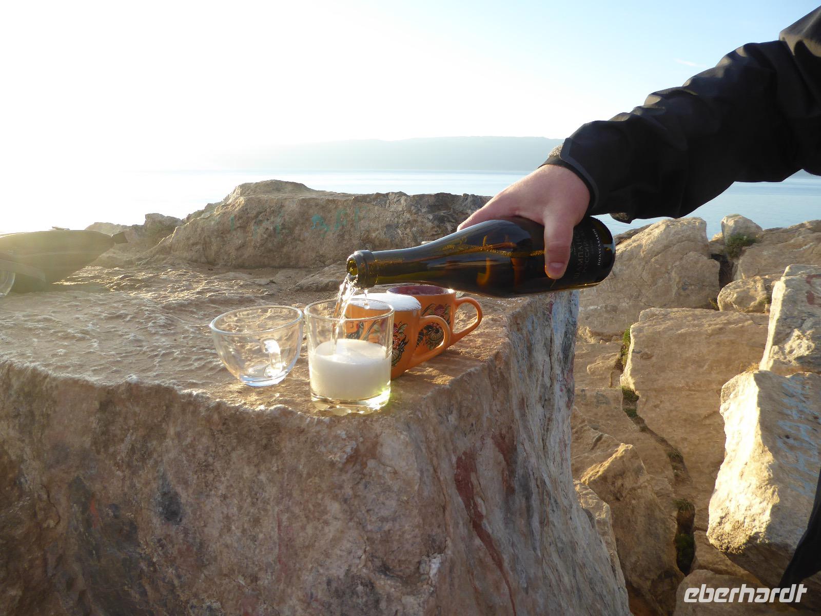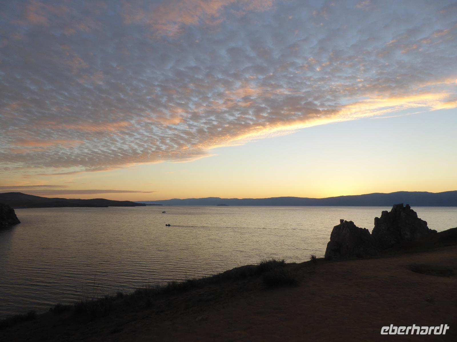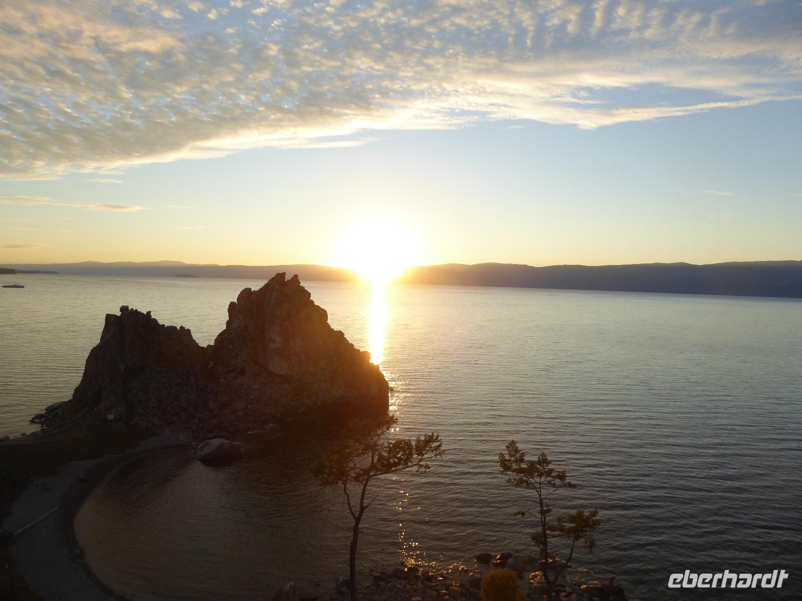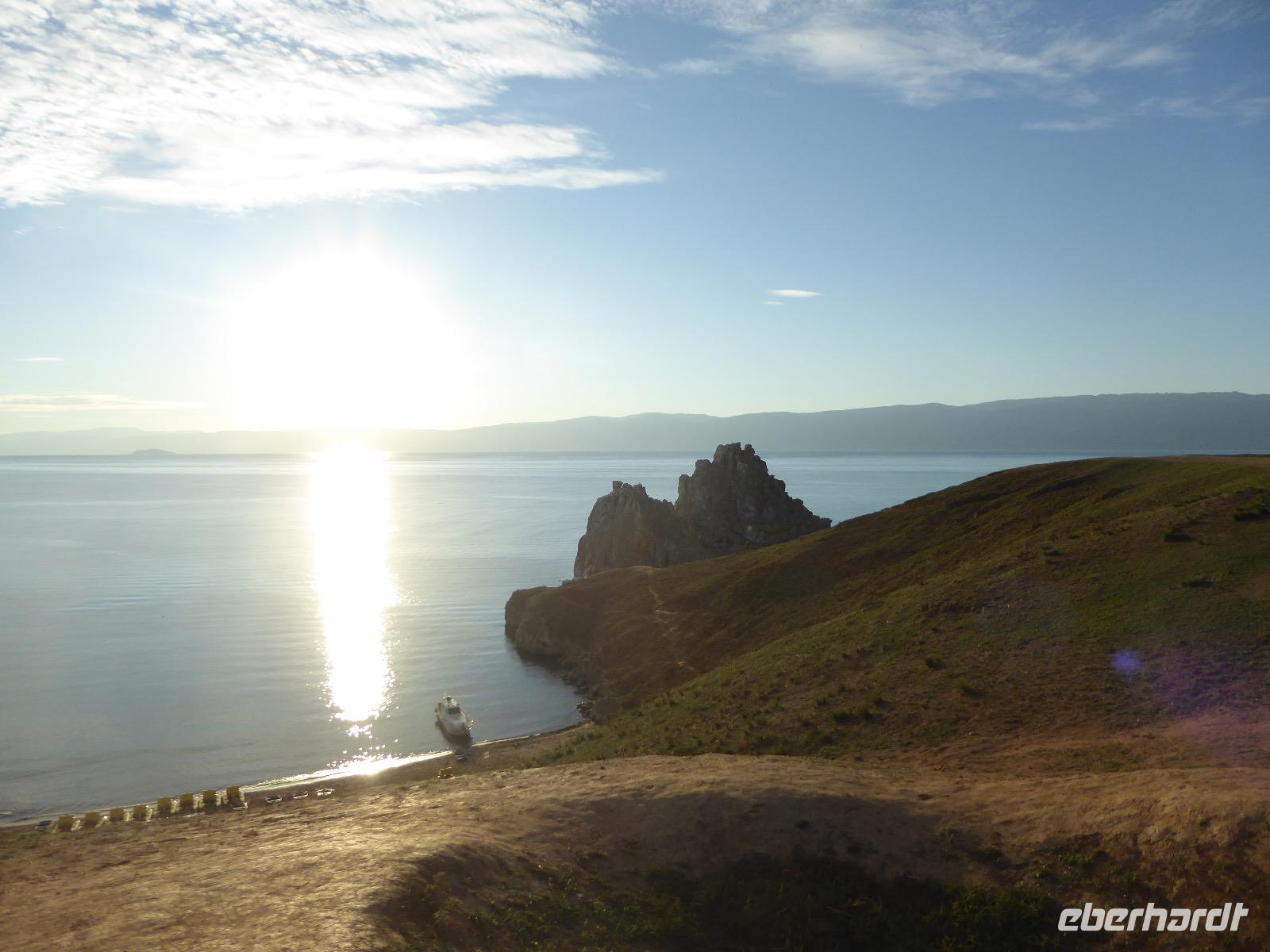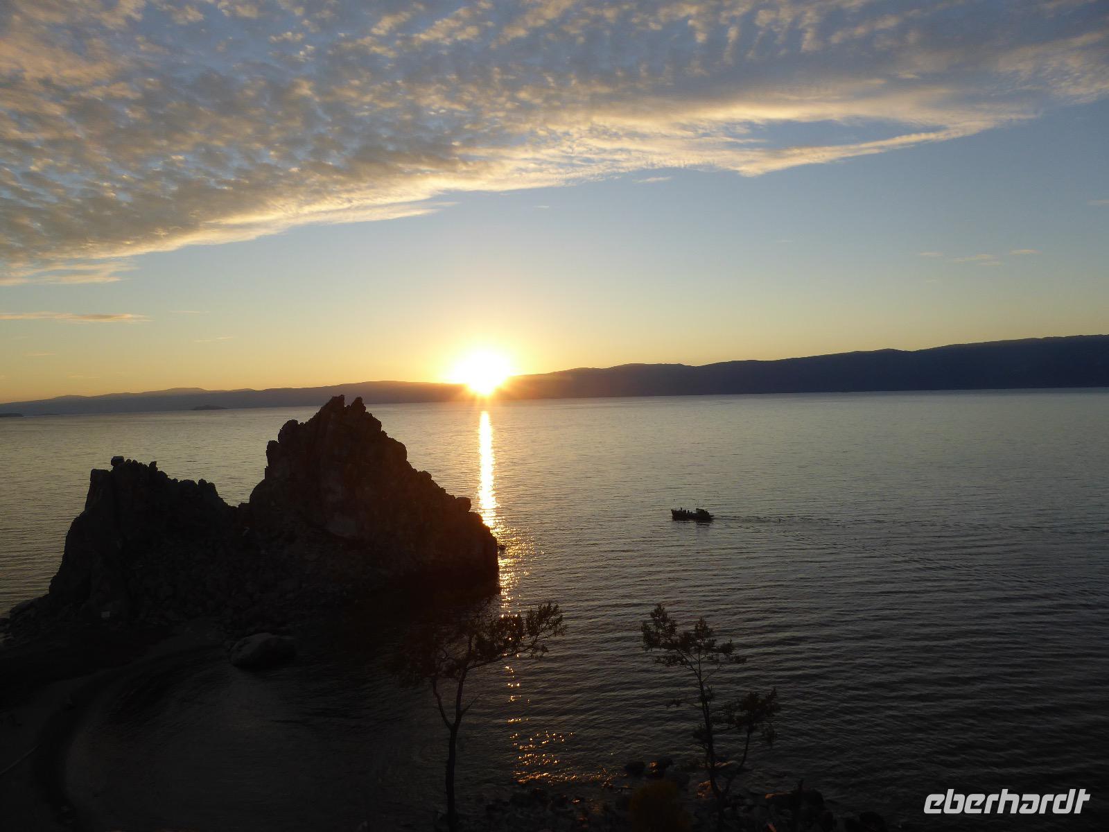 11. Tag: Mittwoch, 07.09.2016 Sonnenuntergang mit Russischem Champagner am Schamanenfelsen auf der Insel Olchon
