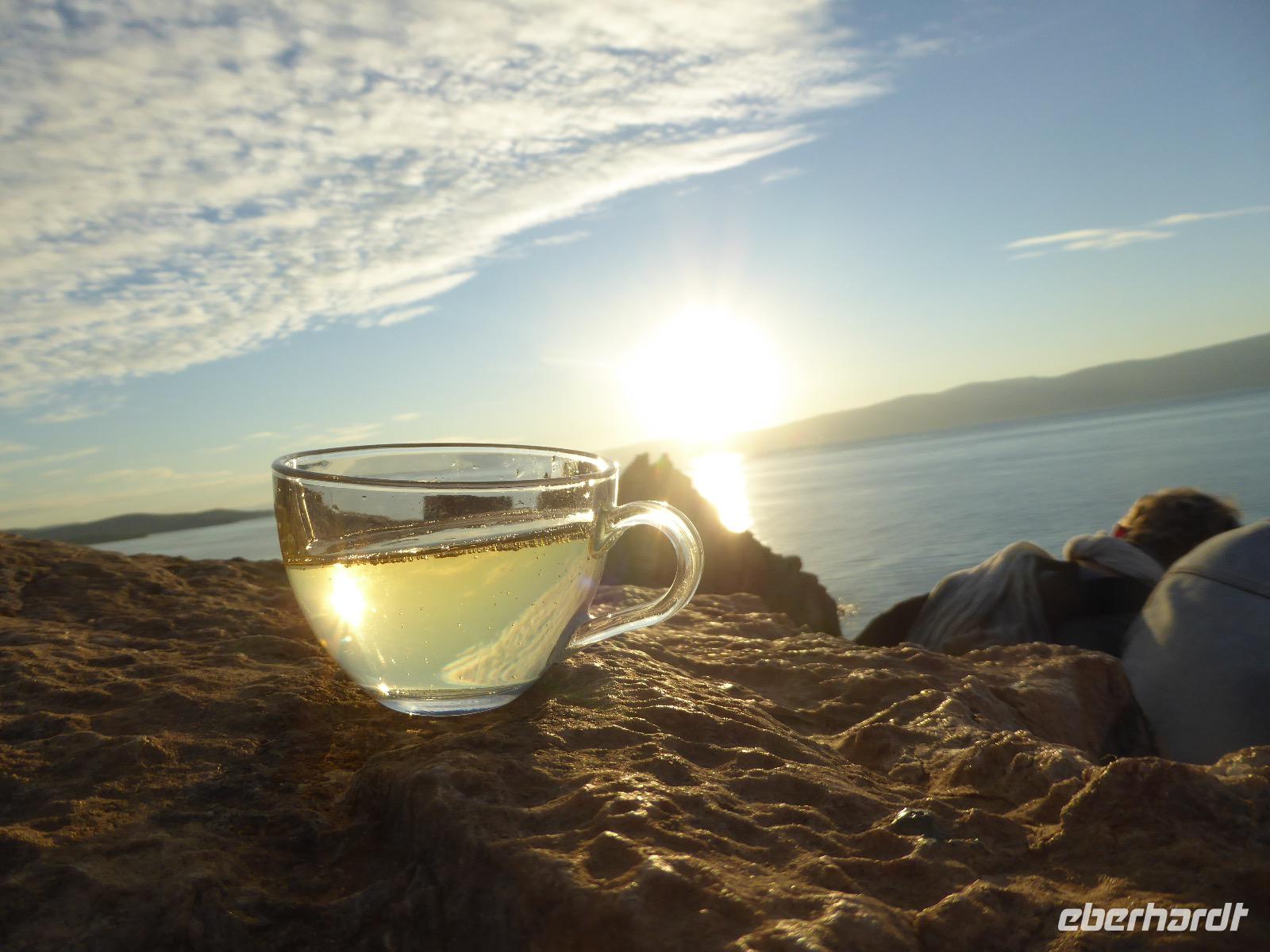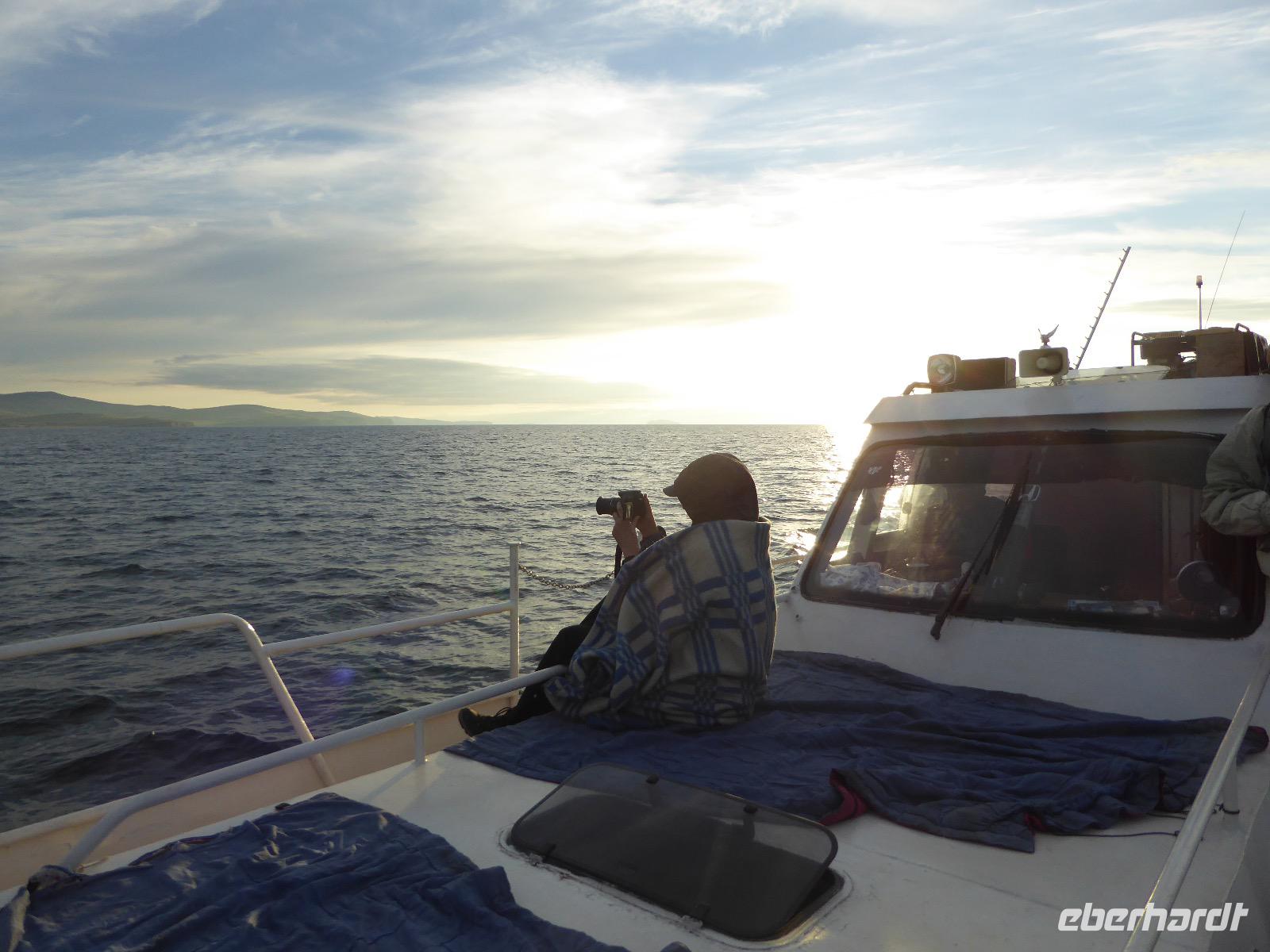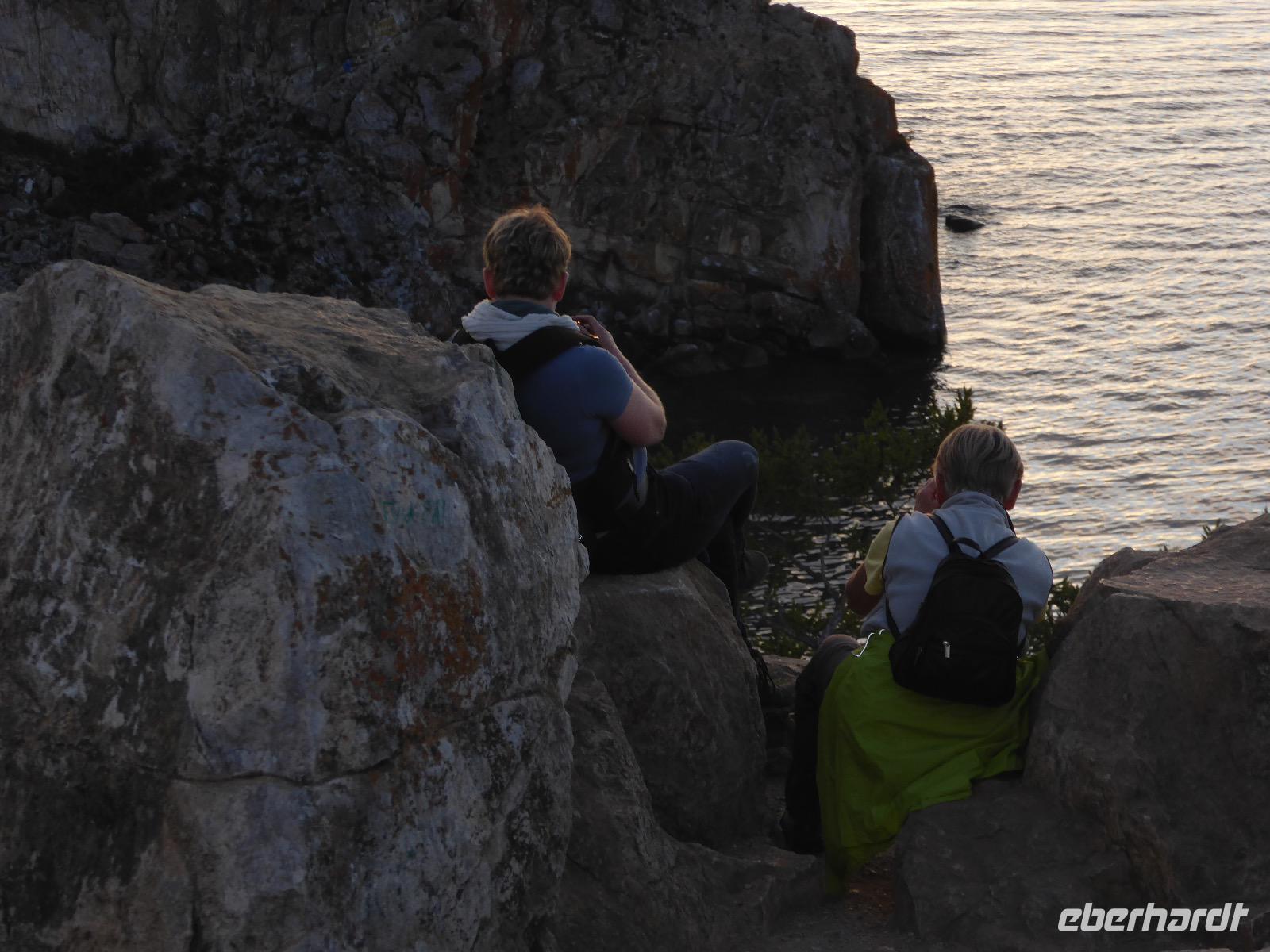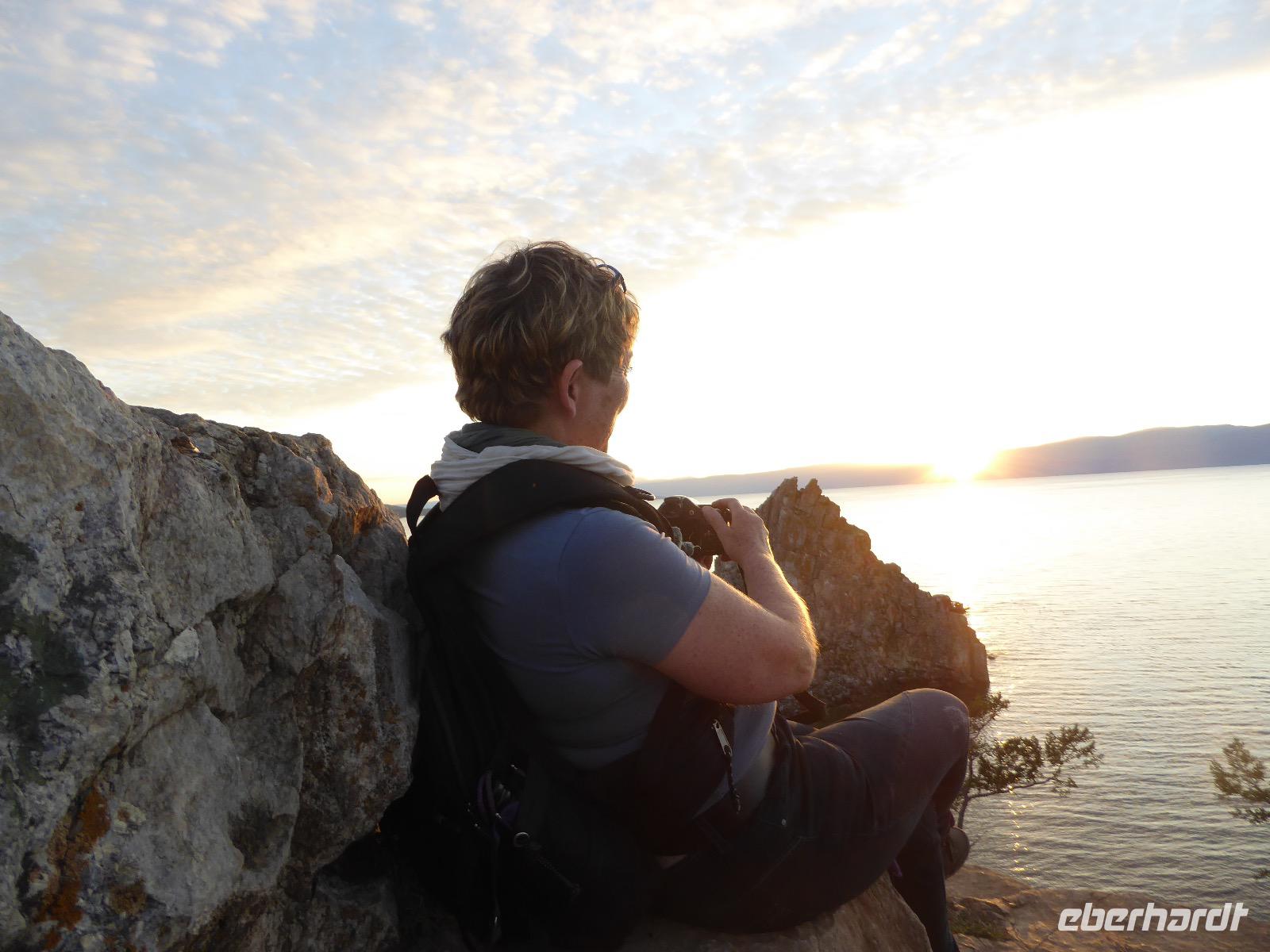 11. Tag: Mittwoch, 07.09.2016 Sonnenuntergang mit Russischem Champagner am Schamanenfelsen auf der Insel Olchon