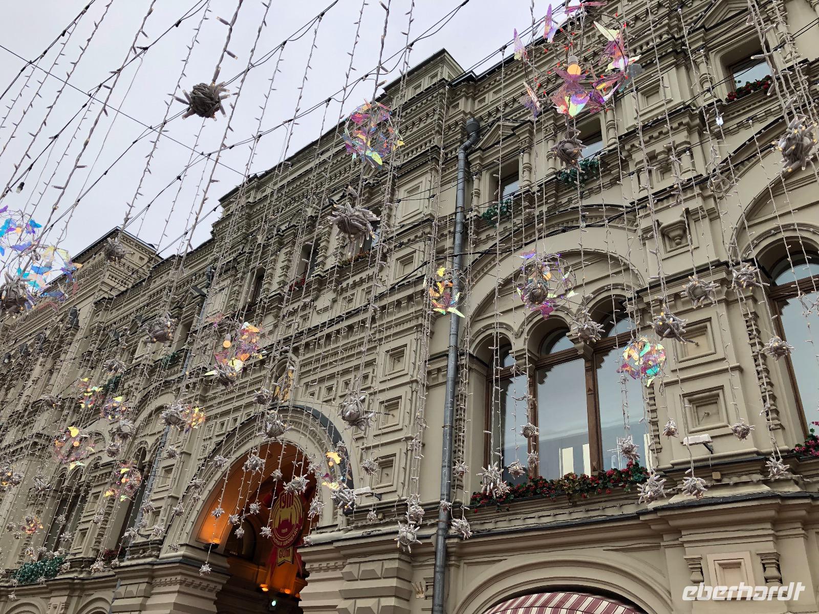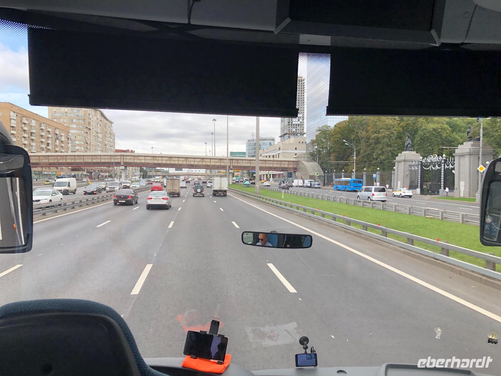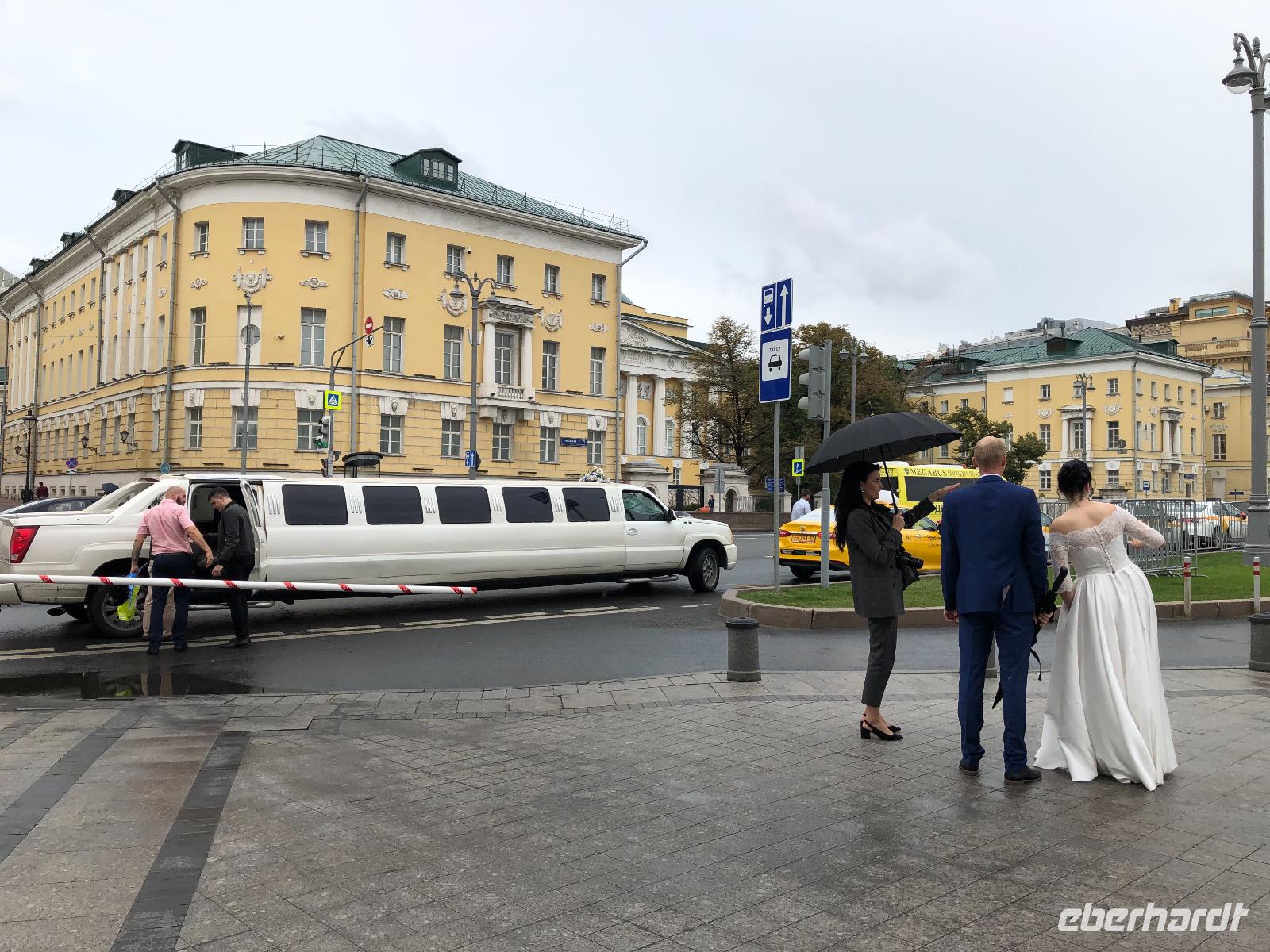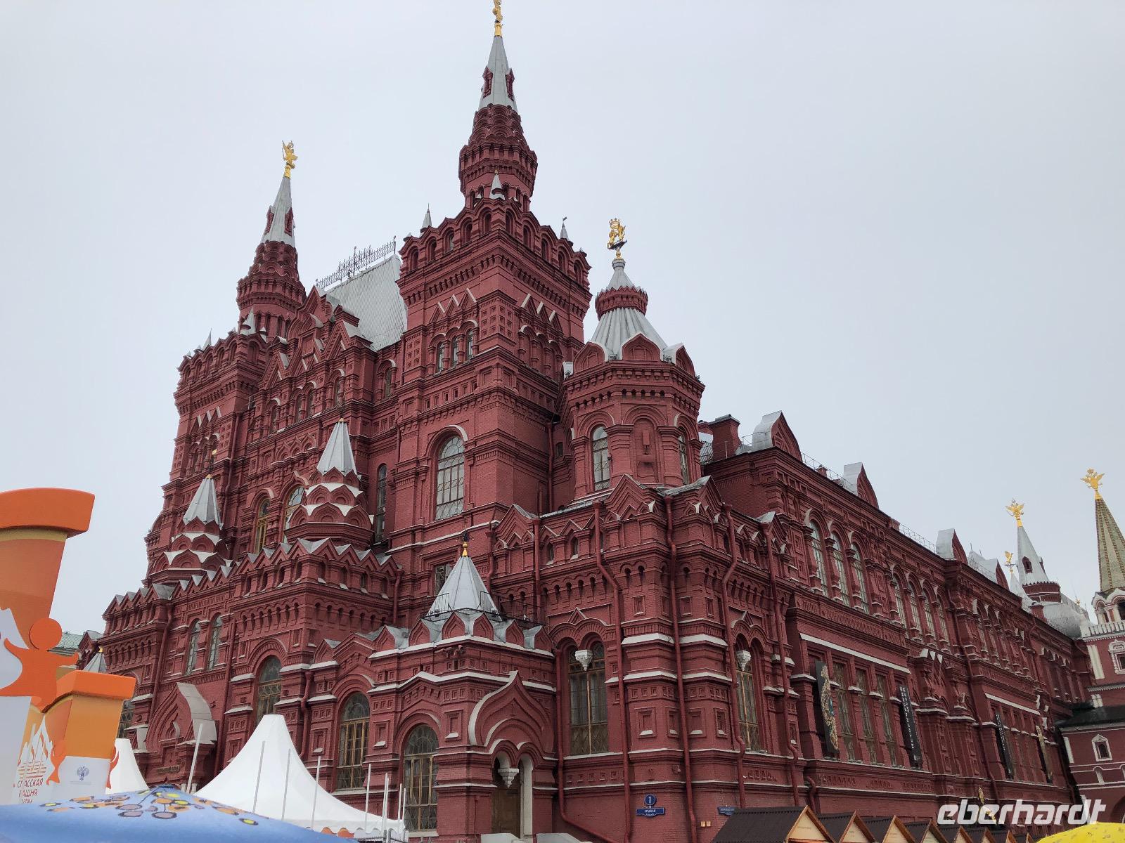 Wir haben uns heute viel vorgenommen und beginnen unsere Fahrt am Neuen Arbat. Vorbei geht es an der Simeonskirche, weiß, mit grünen Dächern und Zwiebeltürmchen, dem Morosow Schloss, das ein junger Adliger bauen ließ, dessen Mutter über ihn sagte: Dass du ein Idiot bist, habe früher nur ich gewusst, jetzt weiß es ganz Moskau und dem Verteidigungsministerium. Wir durchfahren das Theaterviertel und kommen am Puschkinplatz vorbei. An der Hauptstraße Twerskaja Uliza befindet sich das Hotel Lux mit einer geschichtsträchtigen Vergangenheit, hier waren in den 1930er Jahren deutsche Emigranten untergebracht, von denen viele zwischen 1936 und 1938 durch den NKWD verhaftet, gefoltert und ermordet wurden. Heute wird es immer noch saniert.
