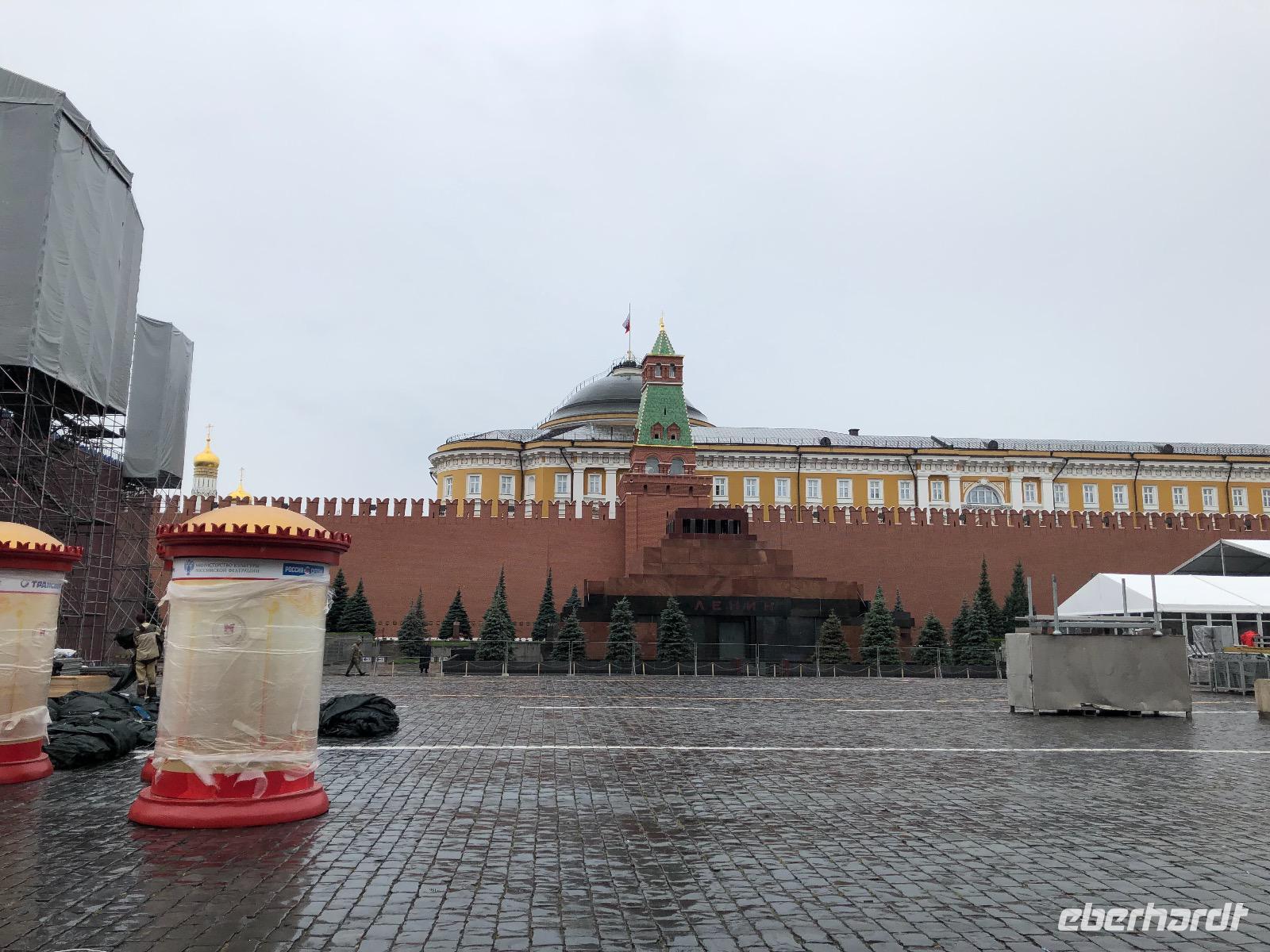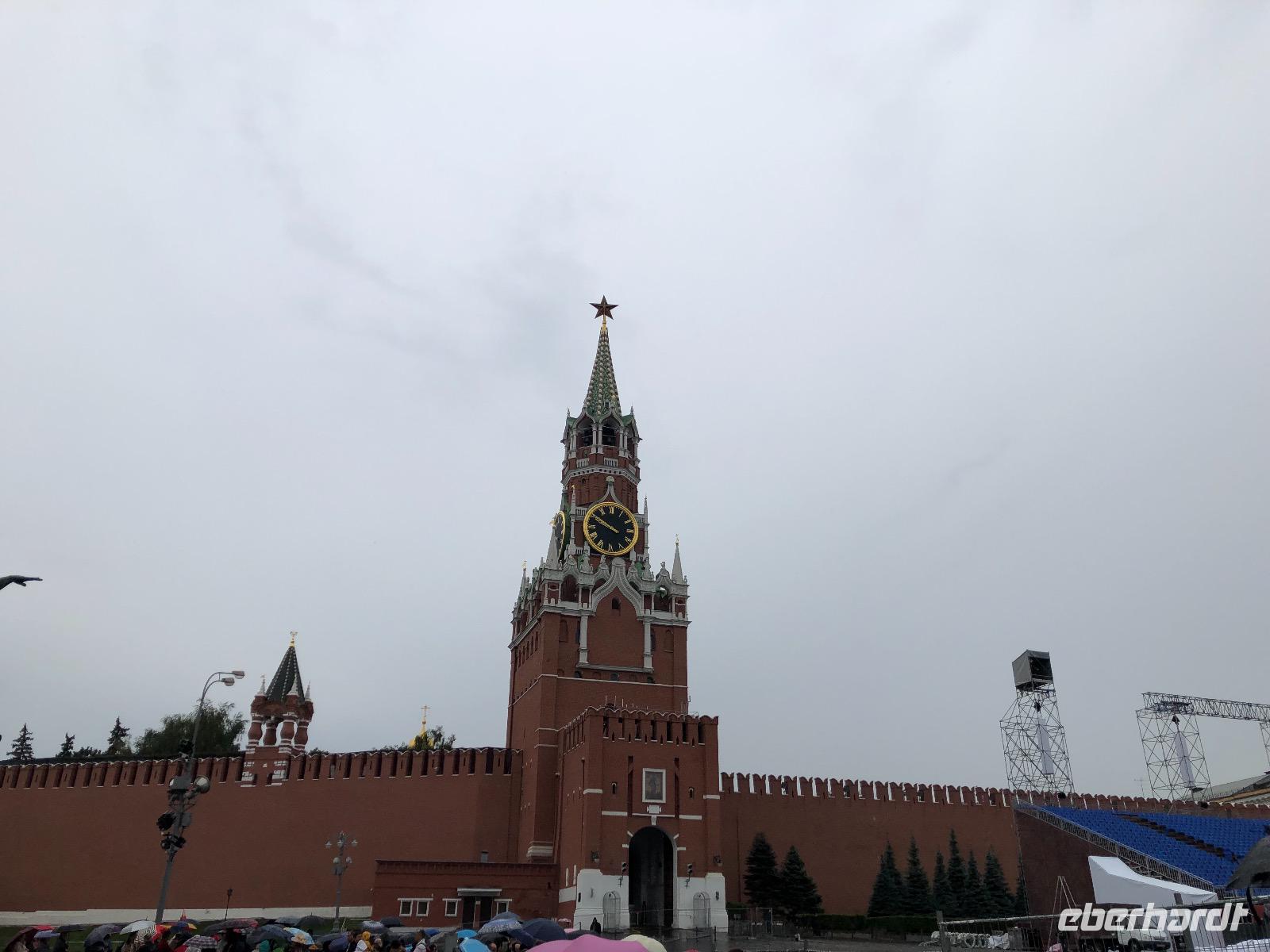 Das Hotel Ritz Carlton dagegen wartet auf reiche Gäste. Die Duma, an deren Gebäude wir vorbei- fahren, beherbergt das russische Parlament. Wir sehen das berühmte Bolschoi-Theater und große moderne Einkaufszentren. Am Ljubljanka Platz befindet sich das ehemalige KGB Gebäude. Wir steigen aus dem Bus aus und laufen zu Fuß über den Roten Platz. Vor vielen hundert Jahren diente der Platz als Marktplatz, überall standen Buden, die Waren aller Art anboten. Jedoch gab es so viele Brände, dass der Platz bald nur noch FEUERPLATZ genannt wurde. Der Name ROTER PLATZ ist eine Abwandlung, denn rot und schön ist auf Russisch das gleiche Wort: krasnj. Der Rote Platz ist fast fünfhundert Meter lang. Heute sind hier Bühnen aufgebaut, denn, wie jedes Jahr, findet im August ein Military Tattoo statt. Auch Buden gibt es wieder, leider haben wir keine Zeit zum Einkaufen. Wir „müssen" weiter zum GUM - das Gosudarstweny universalny Magasin und immernoch das berühmteste Kaufhaus Moskaus. Hier kaufen nur die Reichen ein. Wir aber gönnen uns wenigstens ein Moskauer Eis.