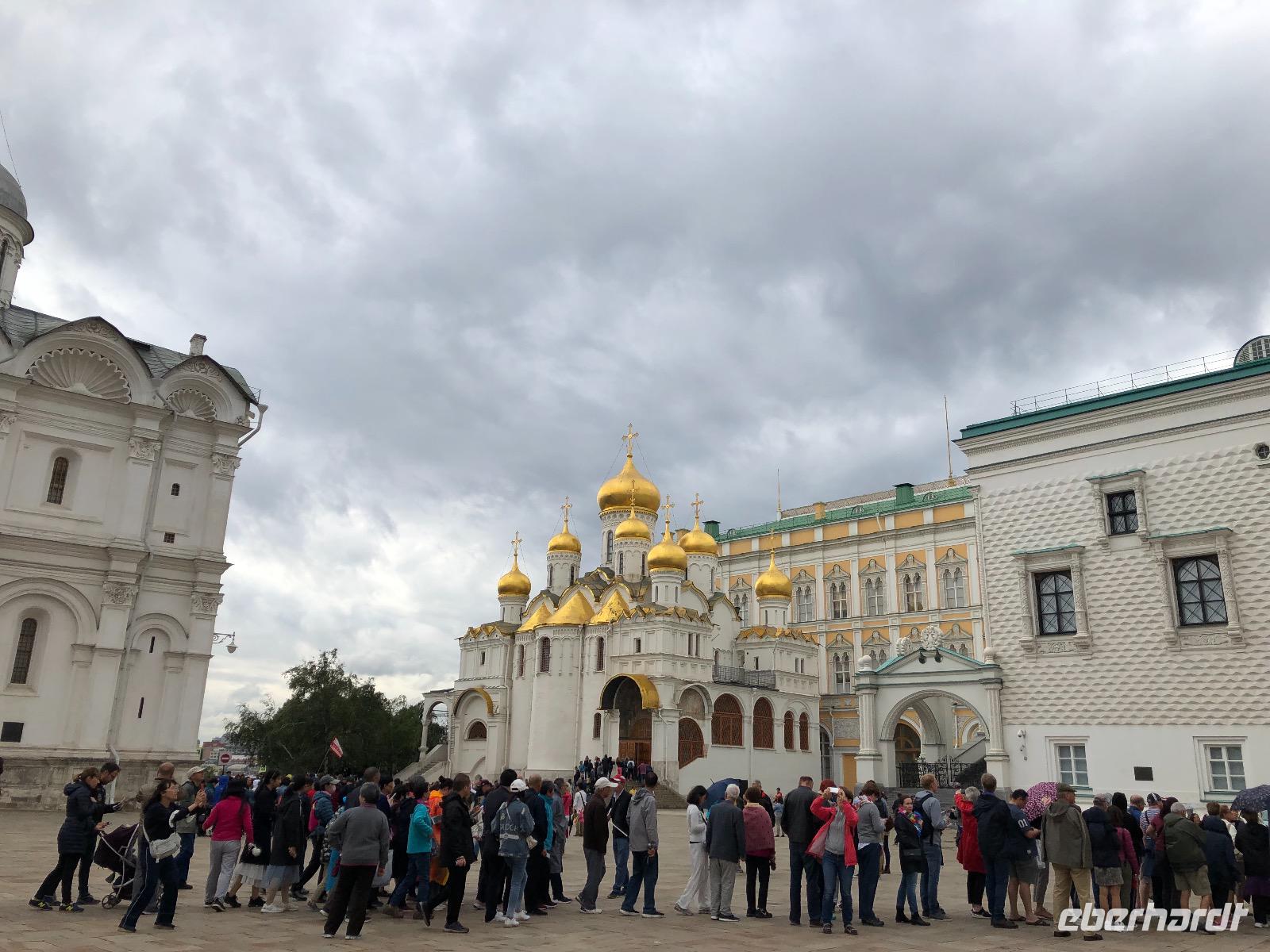 Vor dem Mittagessen, das wir heute im Tschaikowski Theater Café einnehmen, unternehmen wir einen Spaziergang auf dem Kremlgelände, wo wir die Krönungskirche besuchen, die größte niemals geläutete Glocke und die größte niemals eingesetzte Kanone sehen.