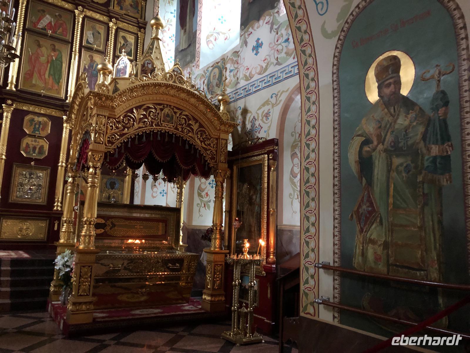 Unser nächster Besuch gilt der Christi Erlöser Kathedrale, die zu Sowjetzeiten abgerissen und an deren Stelle ein Schwimmbad errichtet wurde. Mit vielen Spenden wurde die Kathedrale in neuer alter Pracht errichtet.