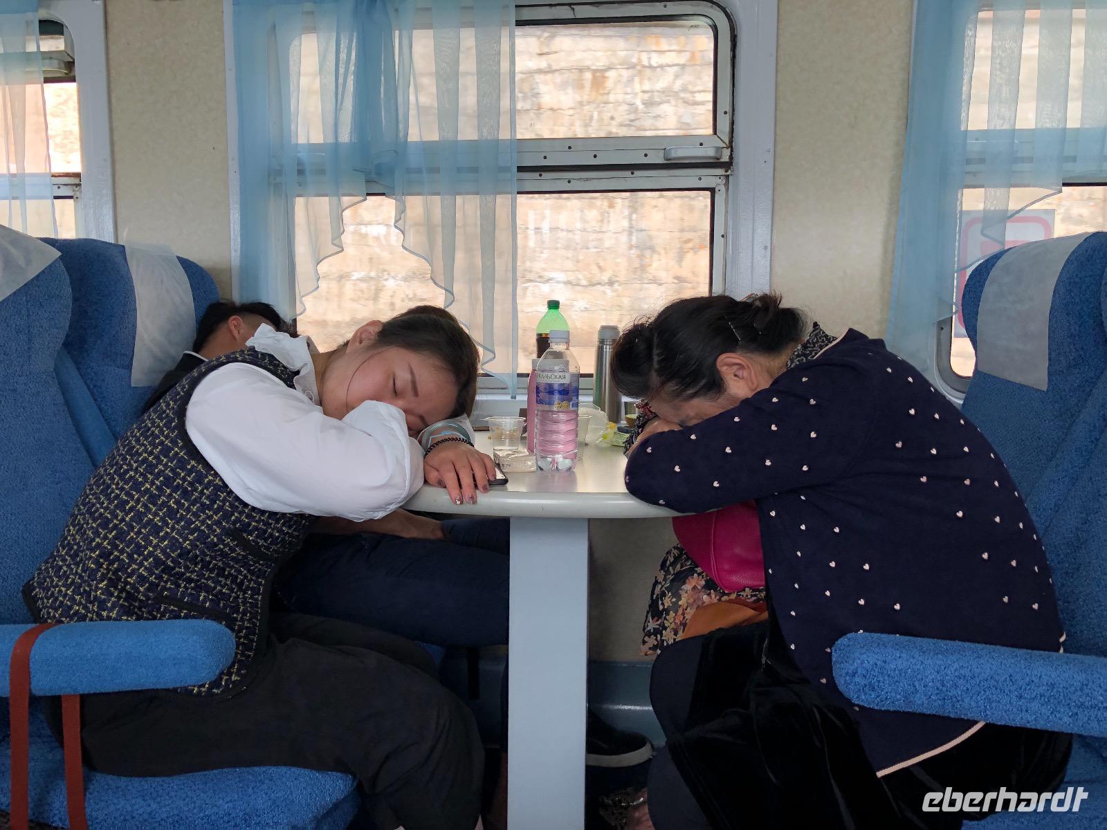 6.30 Frühstück - heute ist Sonntag, das Restaurant öffnet erst um 7.00, man will uns nicht reinlassen, auf meinen Kommentar, dass wir um sieben das Hotel verlassen, weil unser Zug abfährt, gibt es lakonisch die Antwort, gegen Zuzahlung für Early Breakfast könnten wir rein, unsere örtliche Reiseleiterin Lidia klärt das und wir können vor der Abfahrt noch frühstücken. Am Bahnhof von Irkutsk befinden sich Geldautomaten, die wie bei uns, wenn man die falsche PIN eingibt, kein Geld ausspucken, nicht wahr?
