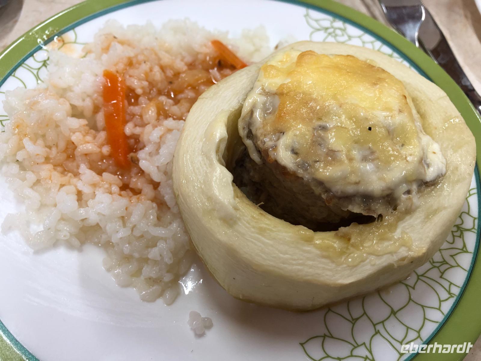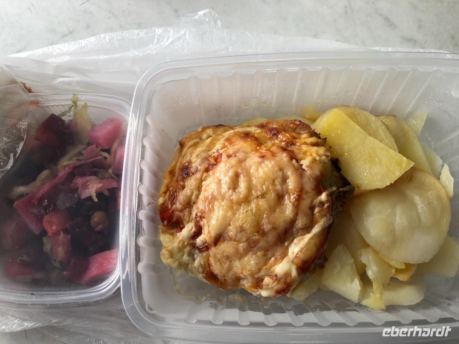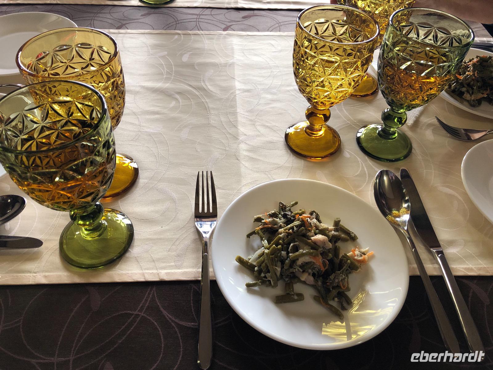 Zum Abendessen gibt es burjatische Speisen, Mama Jana hat gekocht. Getränke sind nicht vorrätig, aber Jana lässt für uns im Magasin Bier und Wasser einkaufen.