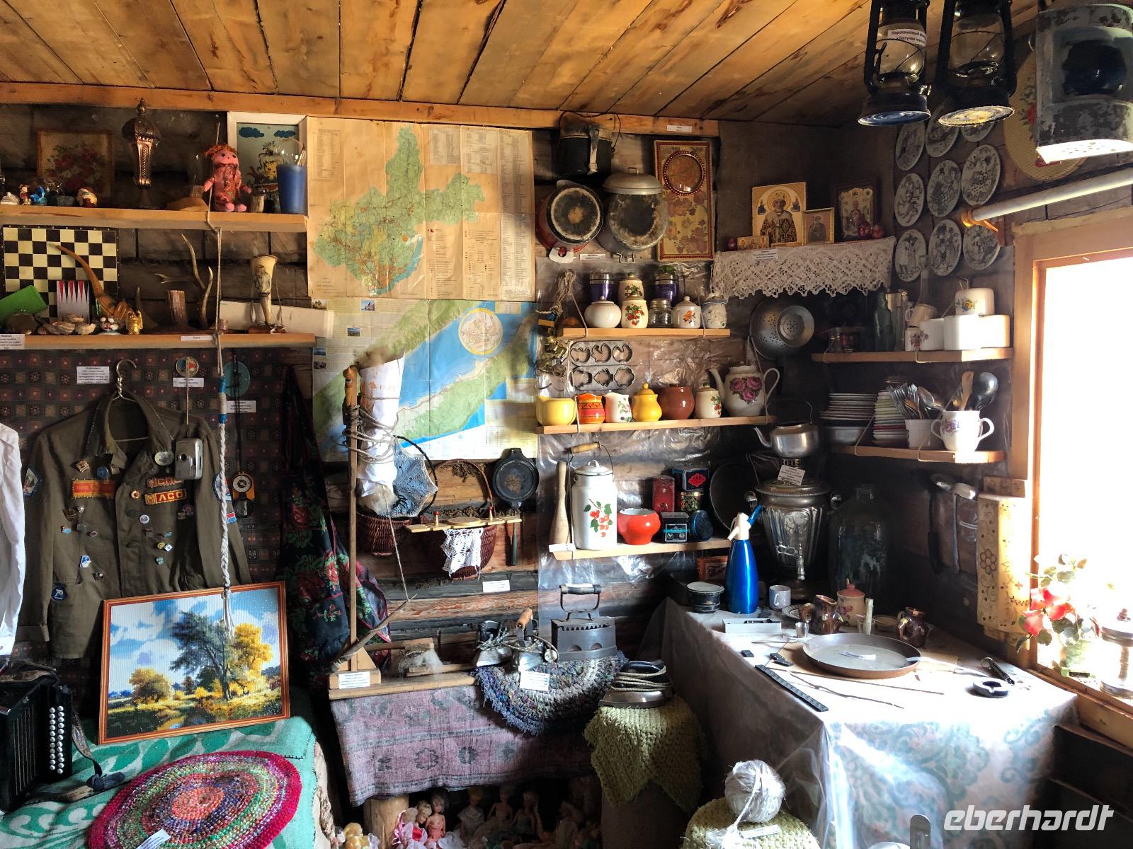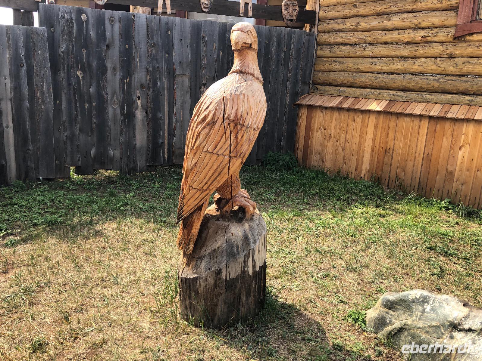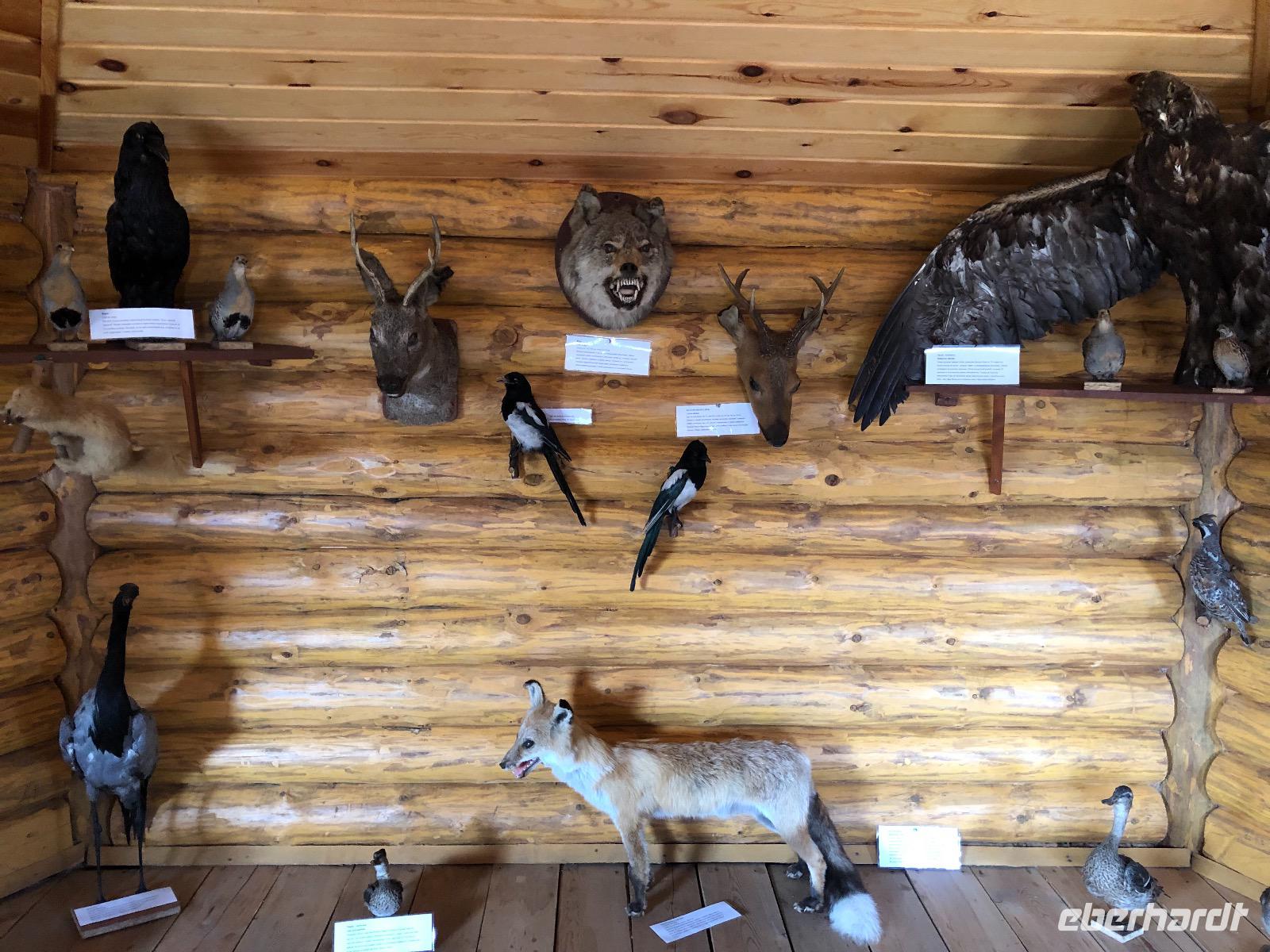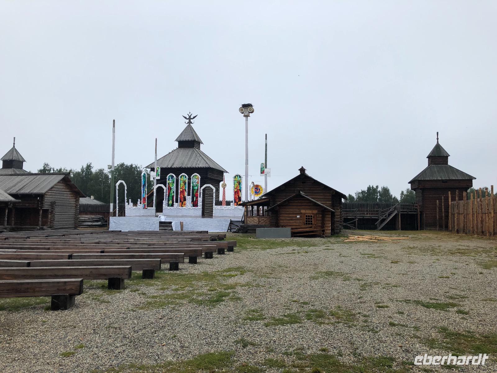 Um 9.20 Uhr erwartet uns Lidia am heutigen Tag. Da der Wetterbericht einiges an Regen voraussagt, wollen wir den Tagesablauf ändern und zuerst mit dem Sessellift fahren. Am Ticketschalter stellt sich jedoch heraus, dass dieser montags erst ab 12 Uhr fährt. Also zurück zur ursprünglichen Planung. Wir fahren zum Freilichtmuseum Talzy, in dem Holzarchitektur aus ganz Ostsibirien zu besichtigen ist. Hier gibt es unter anderem ein Fort zu sehen, wie es vor vielen Jahren von Kosaken errichtet wurde. Außerdem Bauernhäuser aus einem Dorf, dass wegen dem Bau eines Staudamms überflutet wurde. Wir besichtigen eine alte Schule und eine Ausstellung traditioneller Kleidung. Nach dem Besuch von Talzy fahren wir zum Baikalmuseum. Hier wird die geologische Entstehung der Region erklärt und wir erfahren einiges über die Tiere in und um den Baikalsee.