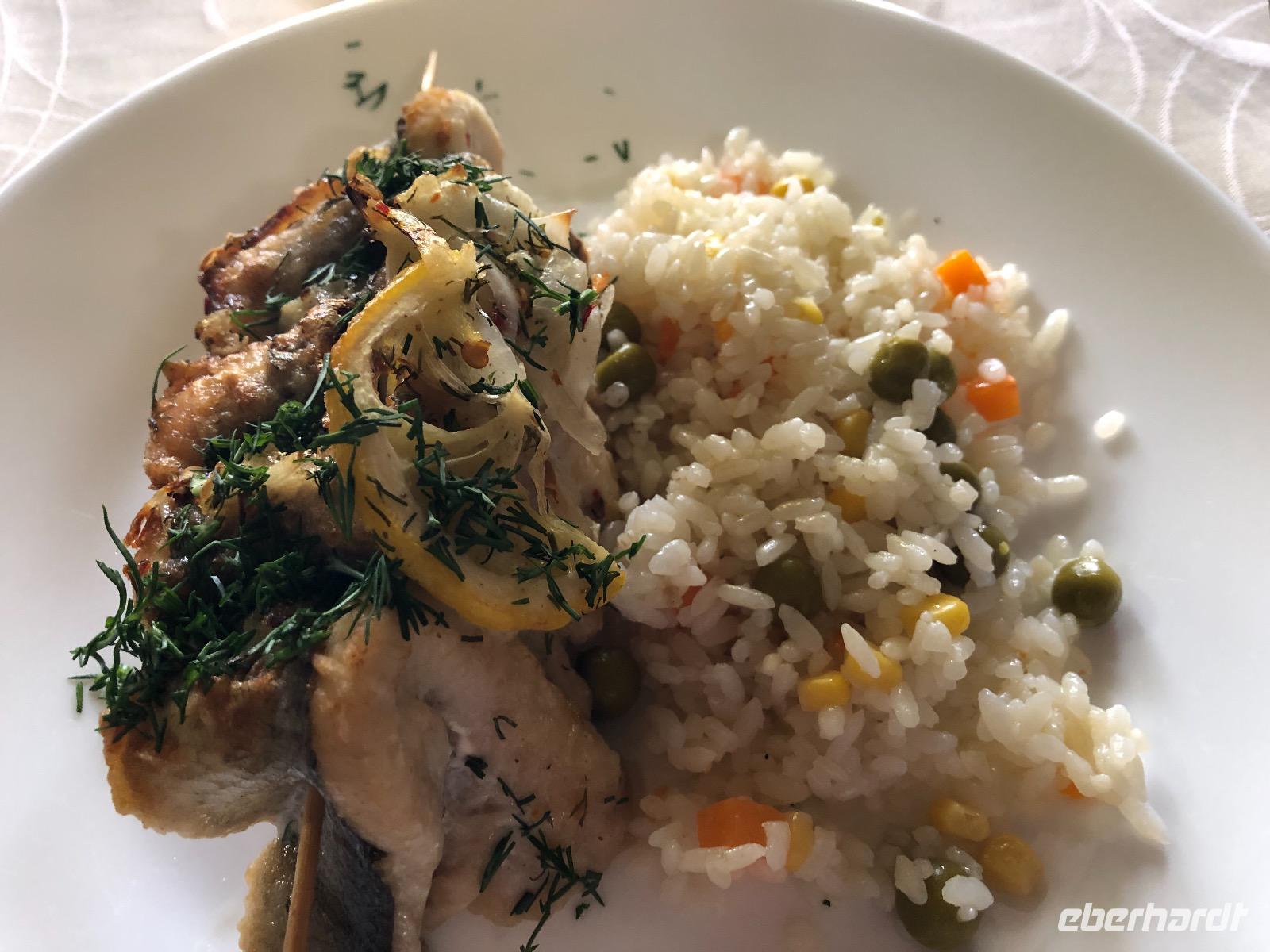 Nun besuchen wir den Fischmarkt, auf dem es außer Fisch auch viele Souvenire zu kaufen gibt. Im Anschluss daran lädt uns Eberhardt TRAVEL zu einem Omul Picknick ein. Wir sitzen in einem Büdchen am Ufer des Baikalsees und kosten warm geräucherten Omul mit russischem Brot und Wodka. An den Fettfisch traut sich keiner ran.