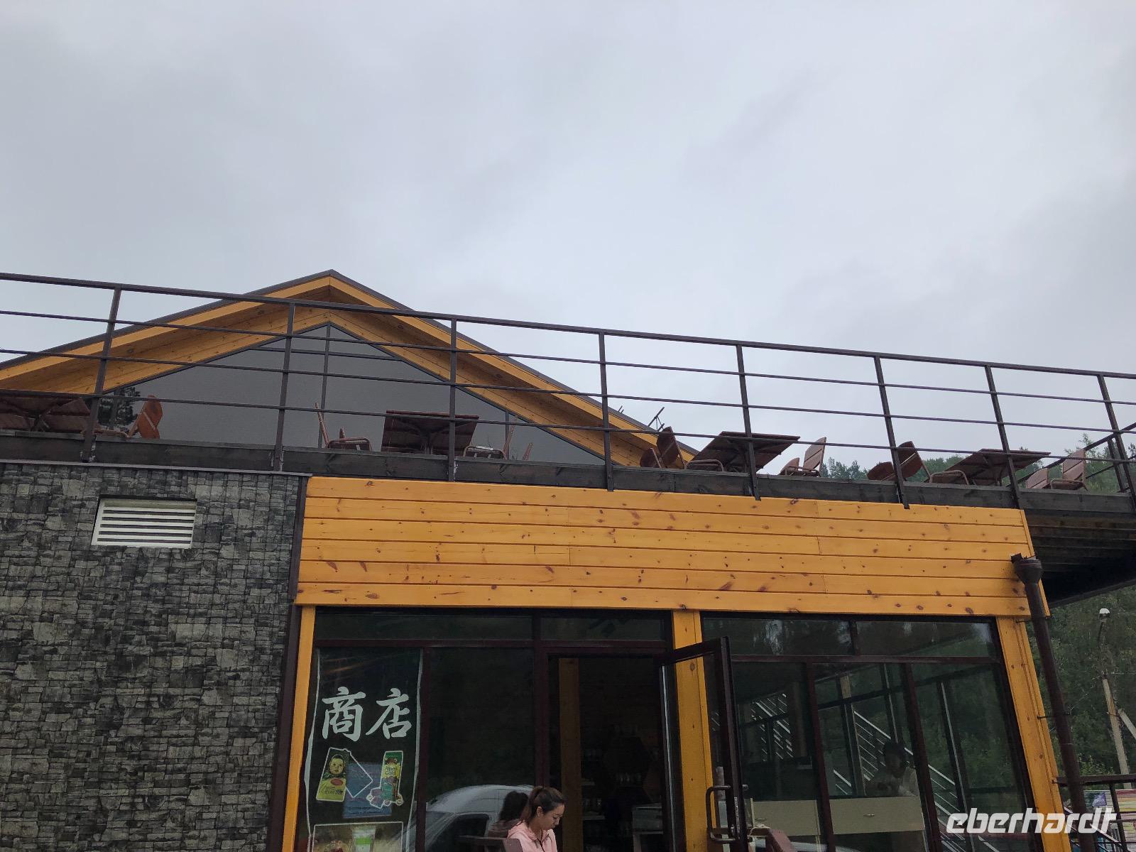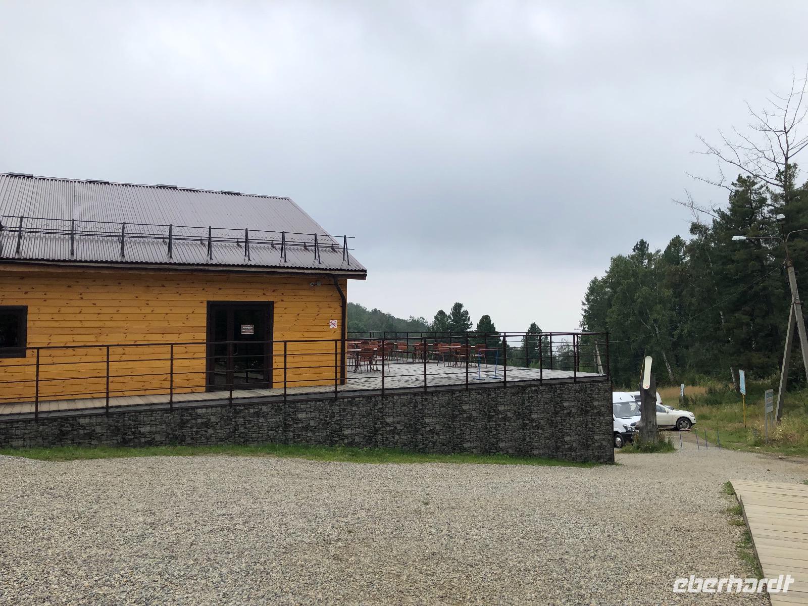 Zum Mittagessen kehren wir in ein gemütliches Café in Listwjanka ein. Der angekündigte Regen ist ausgeblieben und wir können mit dem Sessellift zum Tscherskifelsen fahren. Von oben haben wir einen schönen Blick auf den Baikalsee und die Angara.
