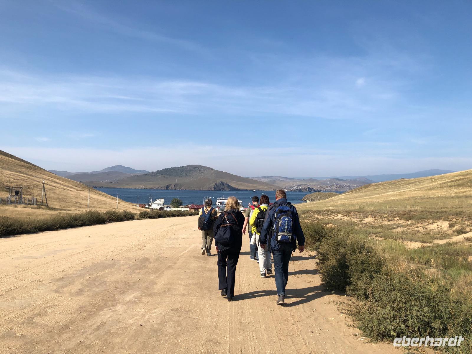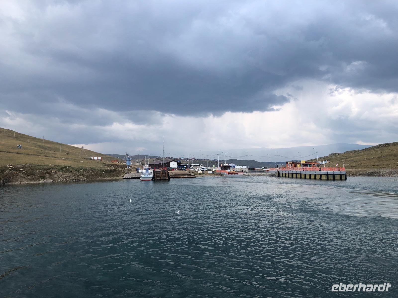 12.15 an Mittagspause, die Chinesen waren vor uns da, wir müssen warten, 13.30 weiter, 15.30 an Fähre, 15.50 an Olchon, 17.30 an Hotel, 17.45 ab Hotel zu Fuß,