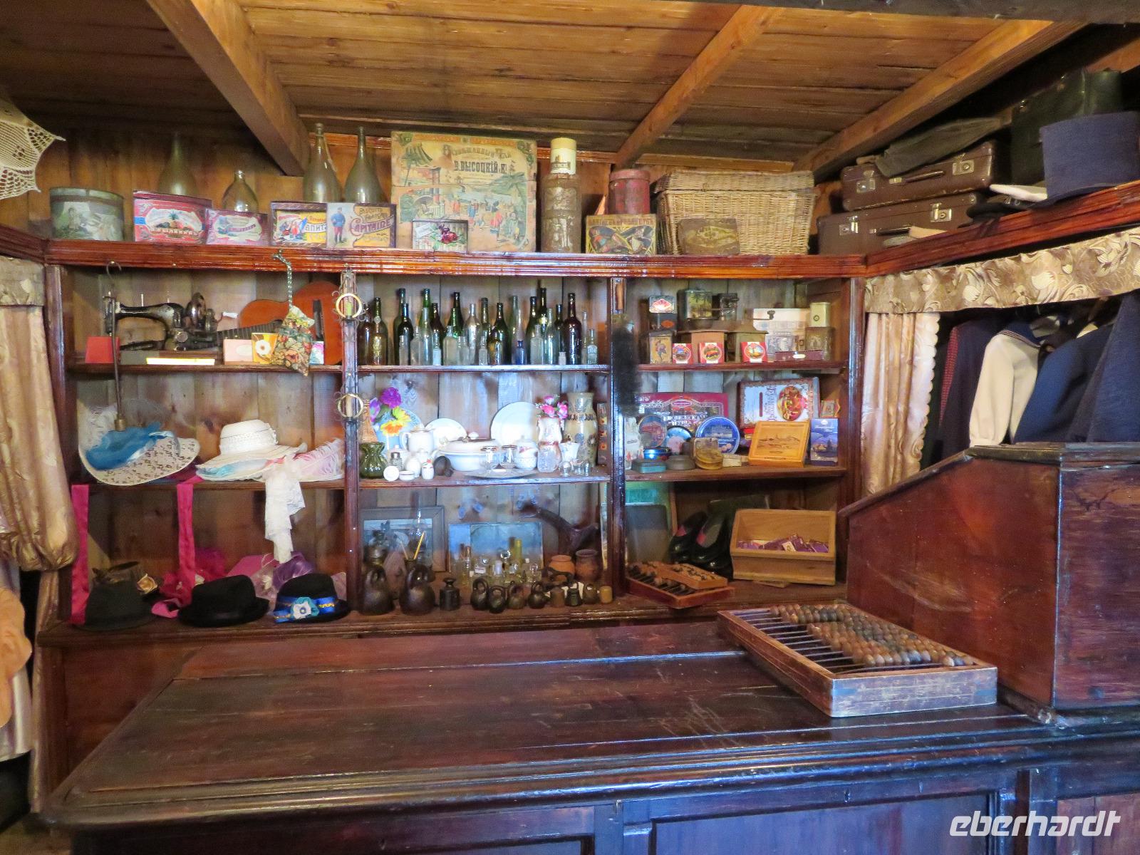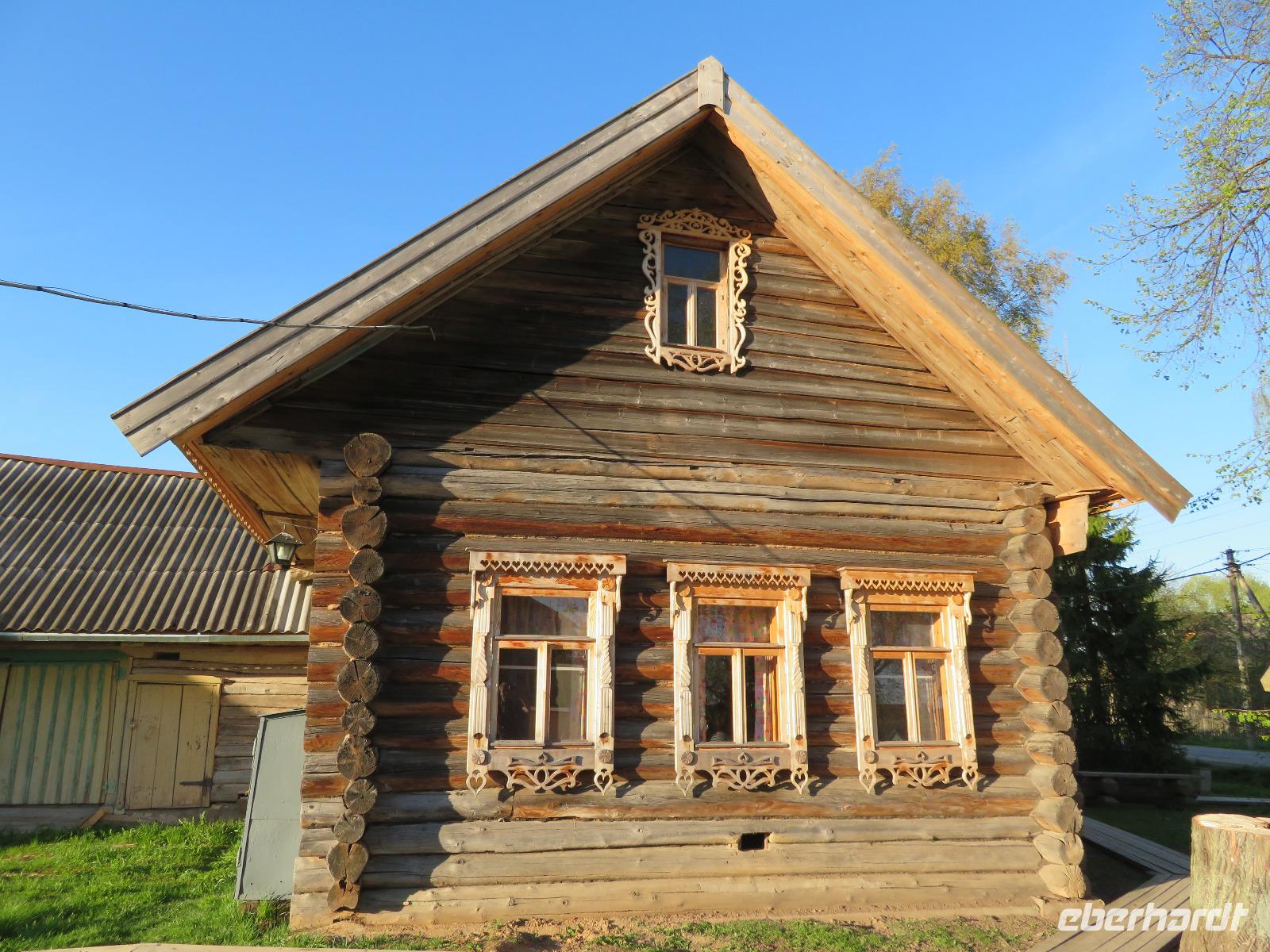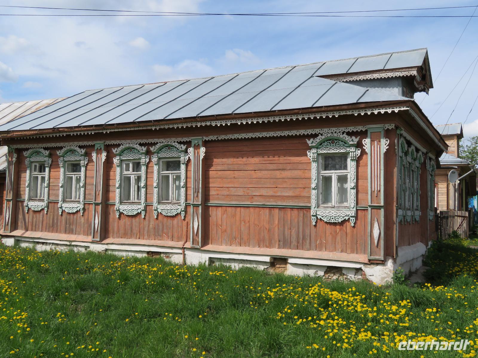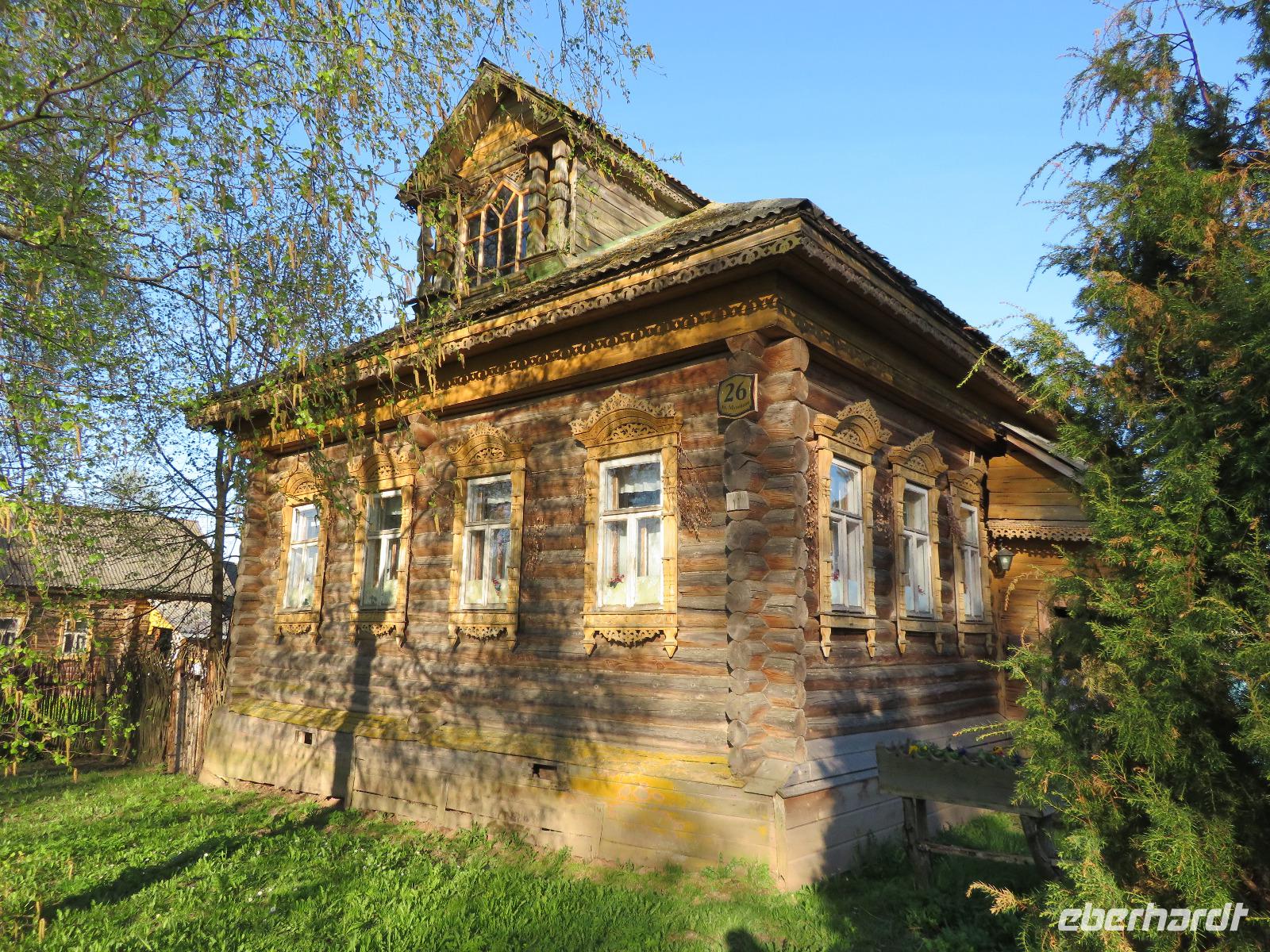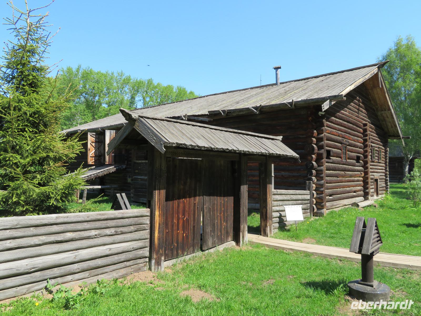 Nach einer Mittagspause wieder im Rostover Kreml erreichten wir nach reichlich zweistündiger Busfahrt durch recht verlassene Gegend und unbewirtschaftete einstige Felder Myschkin an der Wolga. Myschkin, der Mäuseort, ist ein kleines verschlafenes Örtchen an der Wolga, wo wohl eher nur Flussfahrtschiffe für russische Touristen halten. Mehrere kleine Museen, meist erst nach 1990 entstanden, werben um die Gunst der Gäste. Wir besuchten das Museum der Filzstiefel (Maleniki) - eine russische Tradition - und Machaew Dvor - ein Kaufmannshaus aus dem 19. Jahrhundert. Am späten Nachmittag fuhren wir noch über eine Holperpiste nach Martynowo, um uns einen Eindruck vom bäuerlichen Leben um 1900 im ethnografischen Museum - einst der Dorfsowjet - zu machen.