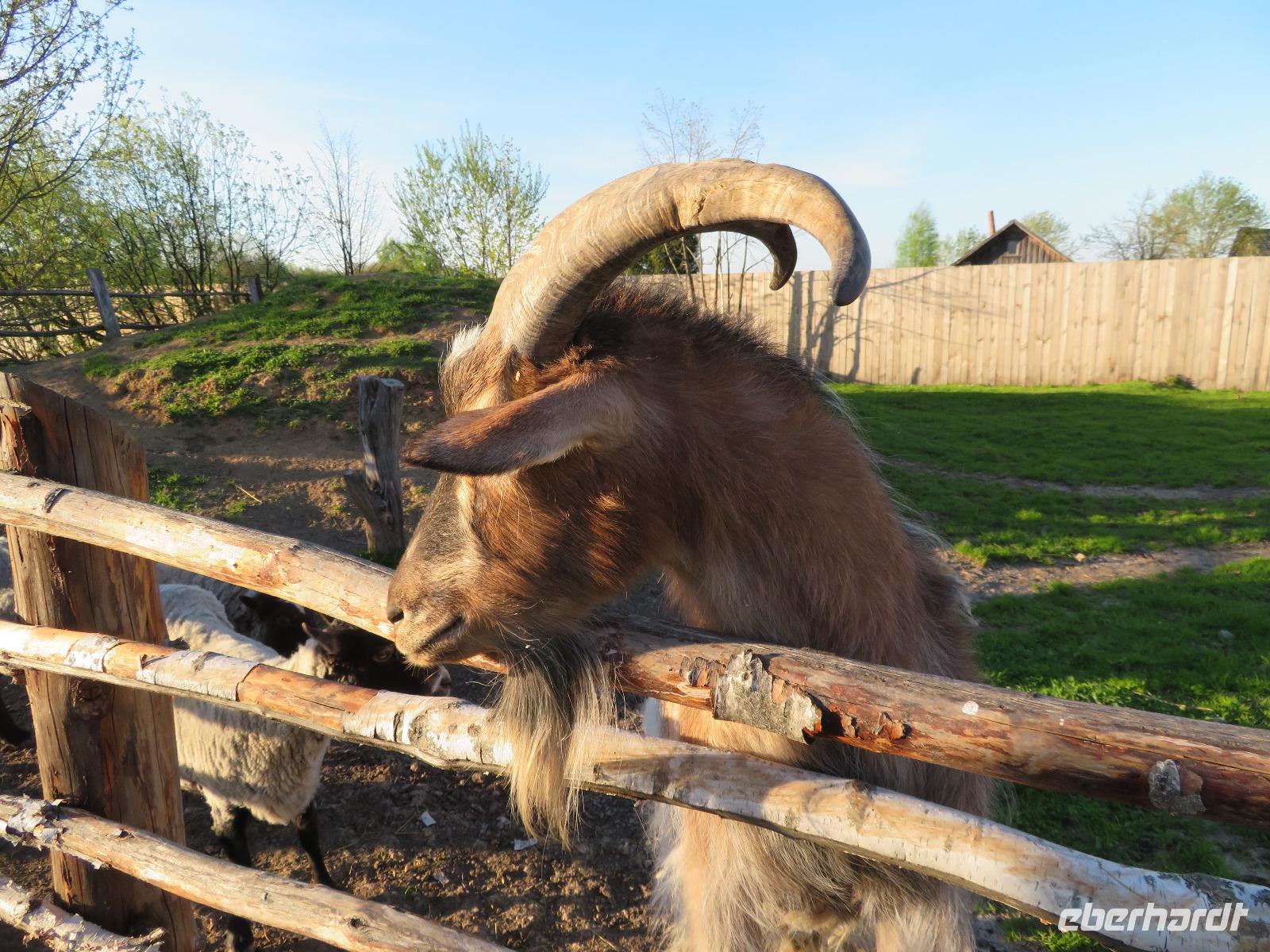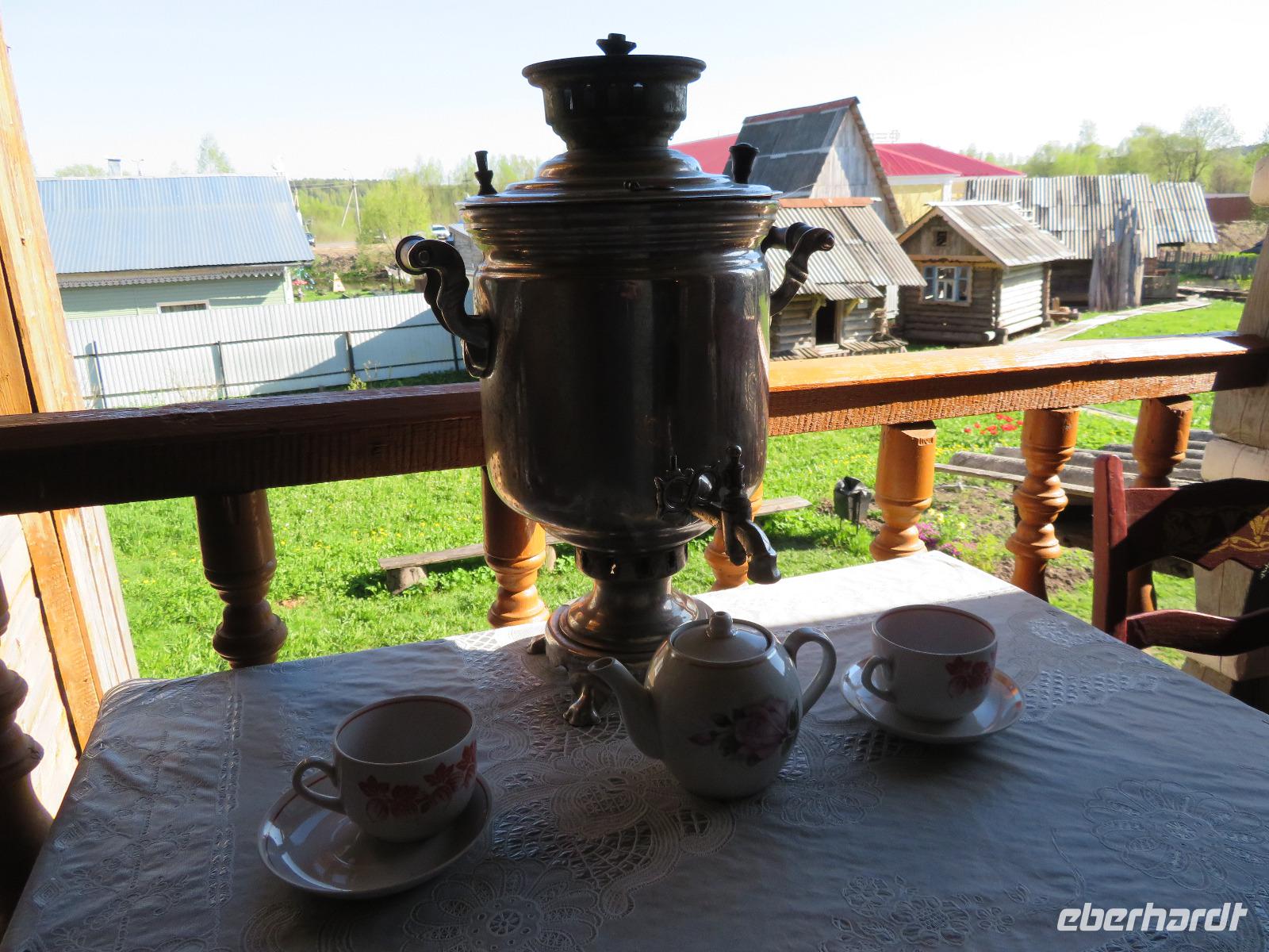 Die Gastgeber boten ein kleines Animationsprogramm und einen bäuerlichen Imbiss: im Ofen überbackenen Kartoffelstampf und Salzgurken. Auf nach Kilometern nicht so langer Strecke ging es beim Sonnenuntergang über erbärmliche Holperpisten nach Uglitsch.