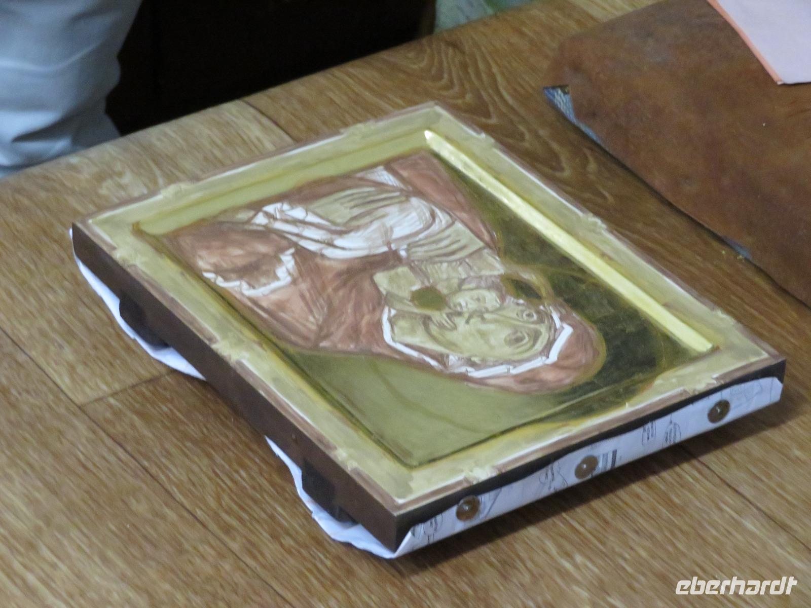 Zum Tagesausklang das i-Tüpfelchen: Besuch einer Ikonenwerkstatt in der St. Nikolai-Kirche mit besten Erklärungen durch Marina.