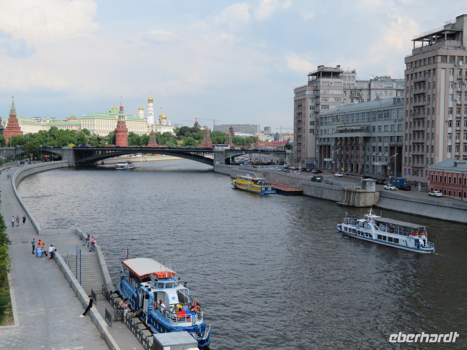 Bei immer wieder drohenden Regen- und Gewitterwolken verblieben einige Gäste in der City und bummelten von „hinter der Moskwa" auf die andere Seite zum Roten Platz; der Hauptteil der Gruppe fuhr zunächst zum Hotel, um später witterungsabhängig das individuelle Abendprogramm zu gestalten.