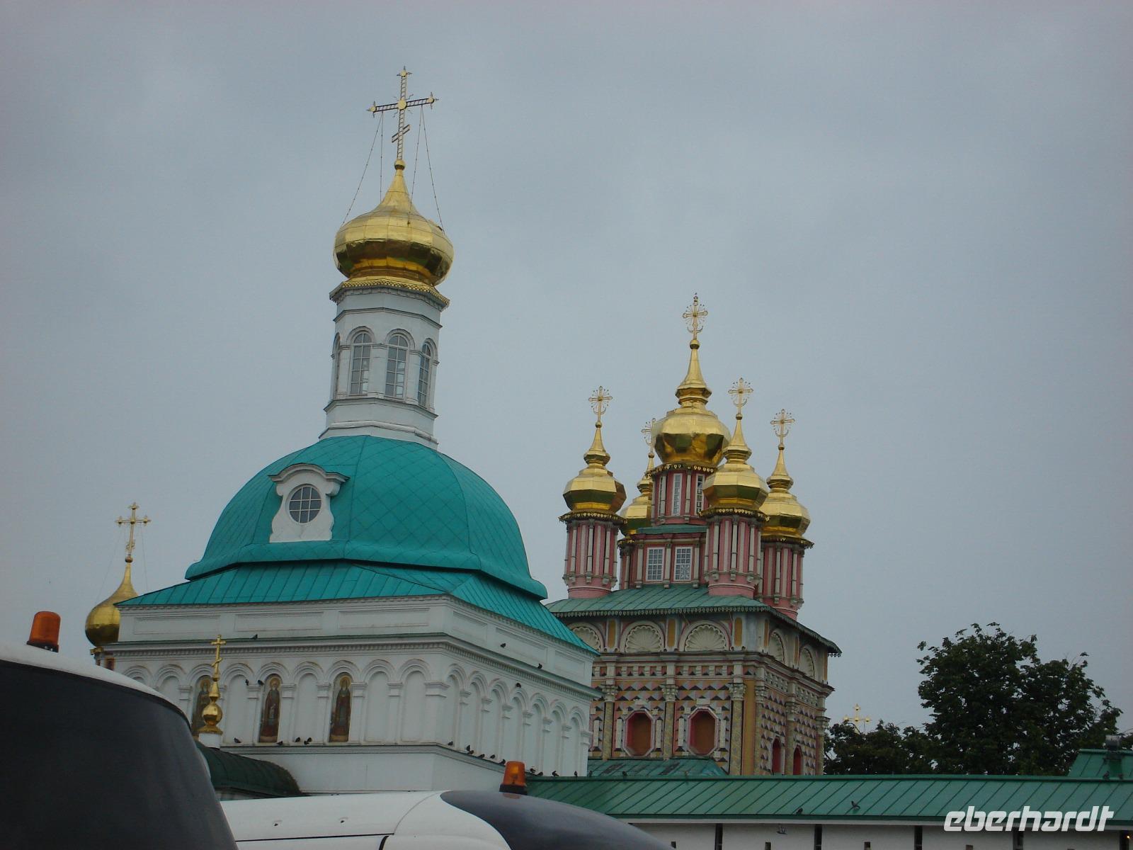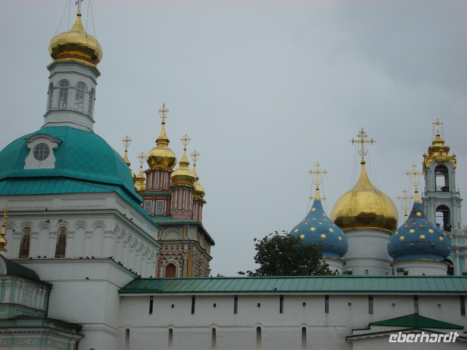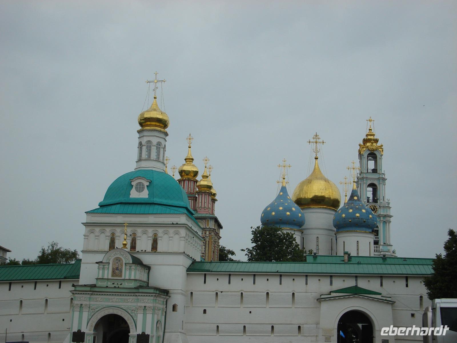 Es handelt sich hier um ein einzigartiges architektonisches Ensemble, um eine beeindruckende Klosteranlage von beachtlicher Größe, bestehend aus ca. 50 Gebäuden. Dieses Dreifaltigkeitskloster steht auf der Weltkulturerbe-Liste der UNESCO und ist als Zentrum der russischen Orthodoxie auch ein bekannter Wallfahrtsort der russischen Gläubigen, den natürlich auch unzählige Touristen sehen wollen, wie wir schnell erkennen konnten. So mussten wir immer wieder auf der Hut sein, dass wir beim Fotografieren und Schauen, beim Gang durch mehrere Kirchen den Anschluss an unsere eigene Gruppe nicht verlieren.