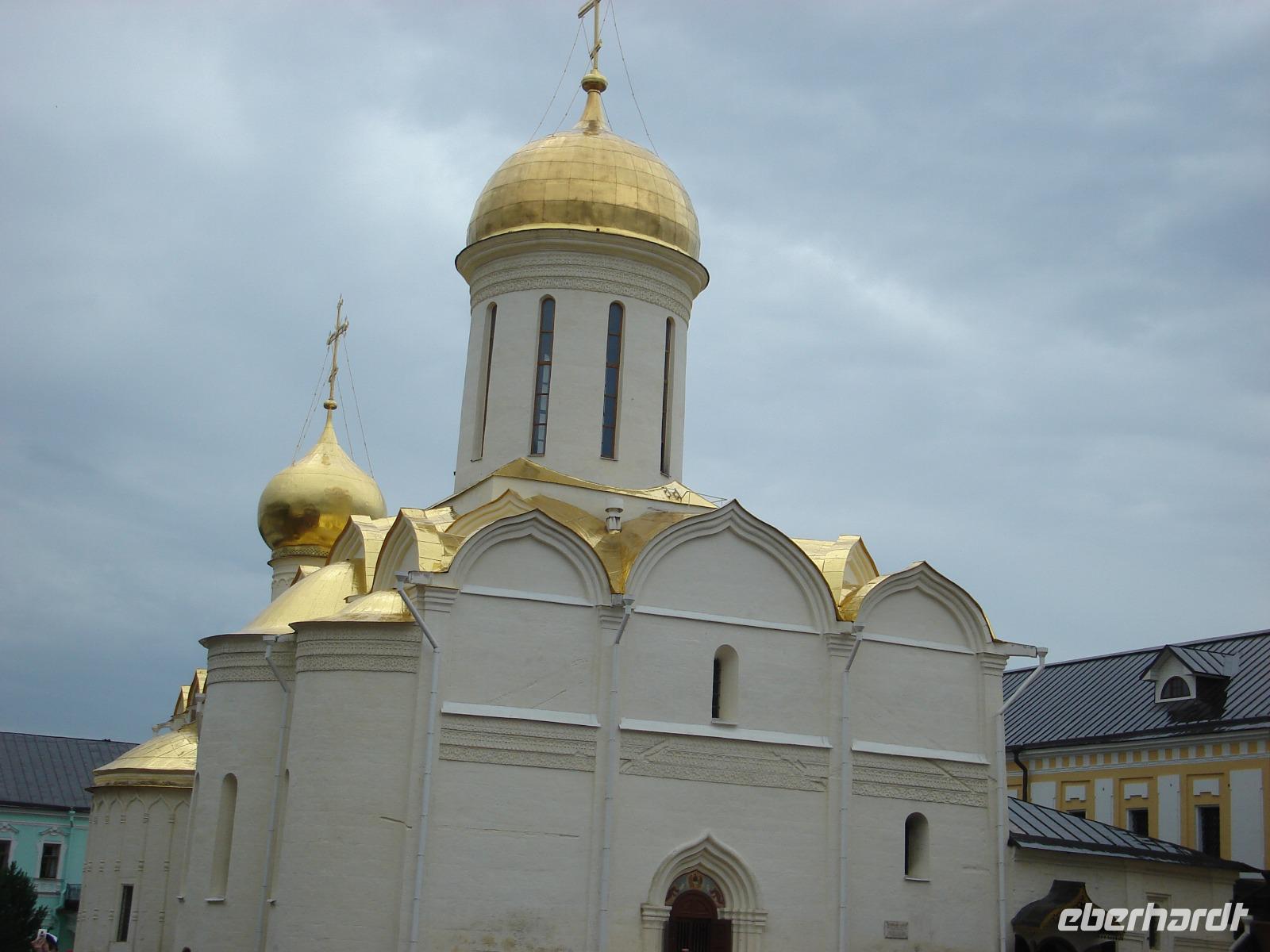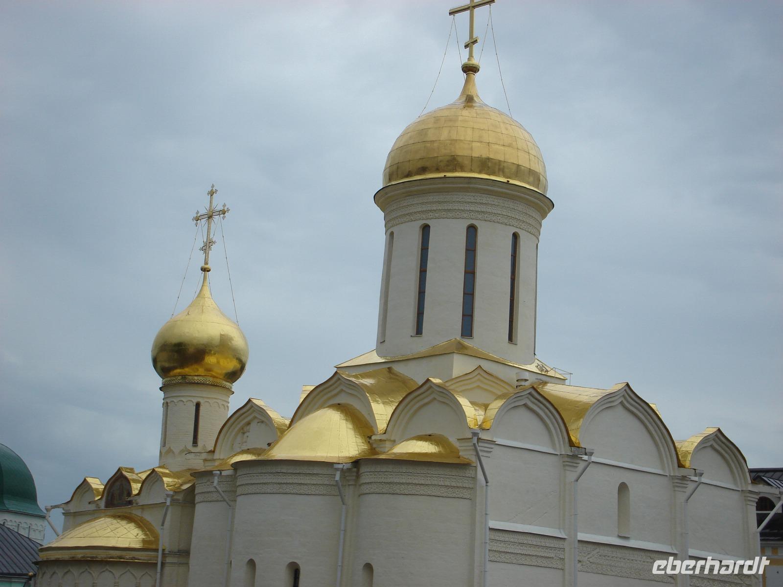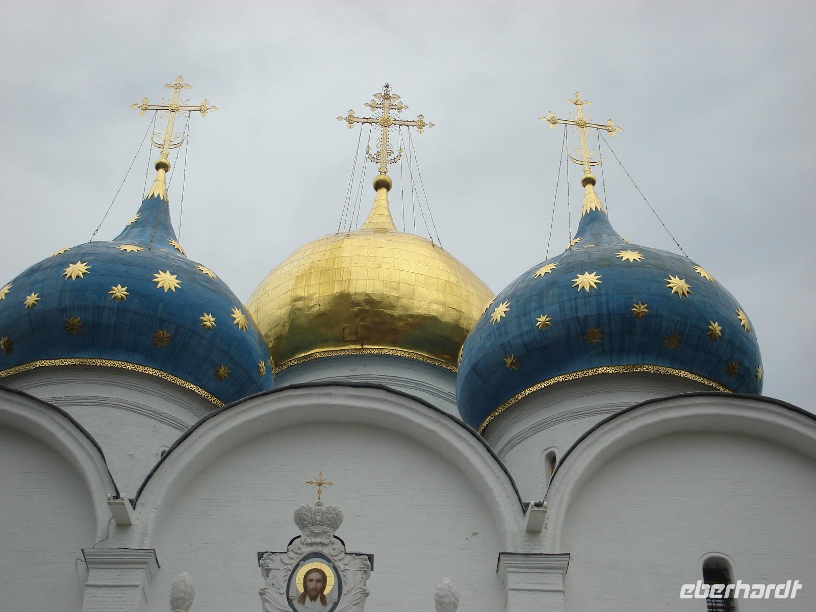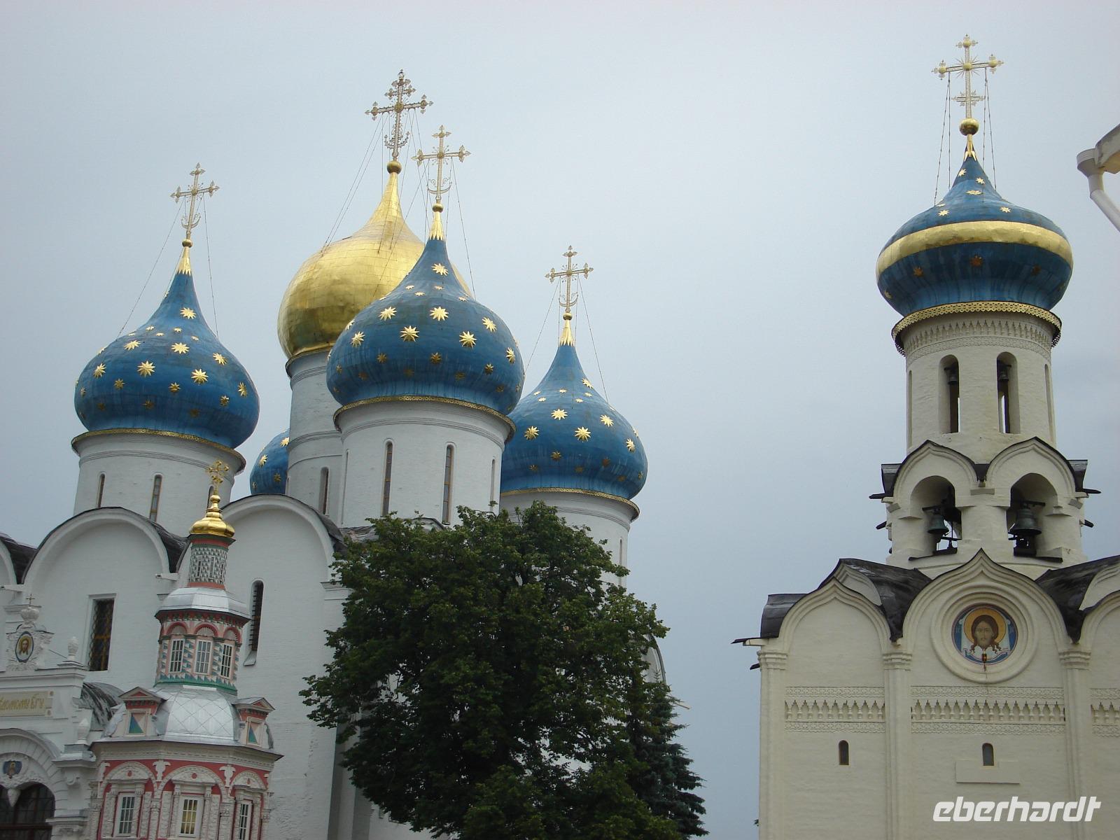 Es handelt sich hier um ein einzigartiges architektonisches Ensemble, um eine beeindruckende Klosteranlage von beachtlicher Größe, bestehend aus ca. 50 Gebäuden. Dieses Dreifaltigkeitskloster steht auf der Weltkulturerbe-Liste der UNESCO und ist als Zentrum der russischen Orthodoxie auch ein bekannter Wallfahrtsort der russischen Gläubigen, den natürlich auch unzählige Touristen sehen wollen, wie wir schnell erkennen konnten. So mussten wir immer wieder auf der Hut sein, dass wir beim Fotografieren und Schauen, beim Gang durch mehrere Kirchen den Anschluss an unsere eigene Gruppe nicht verlieren.