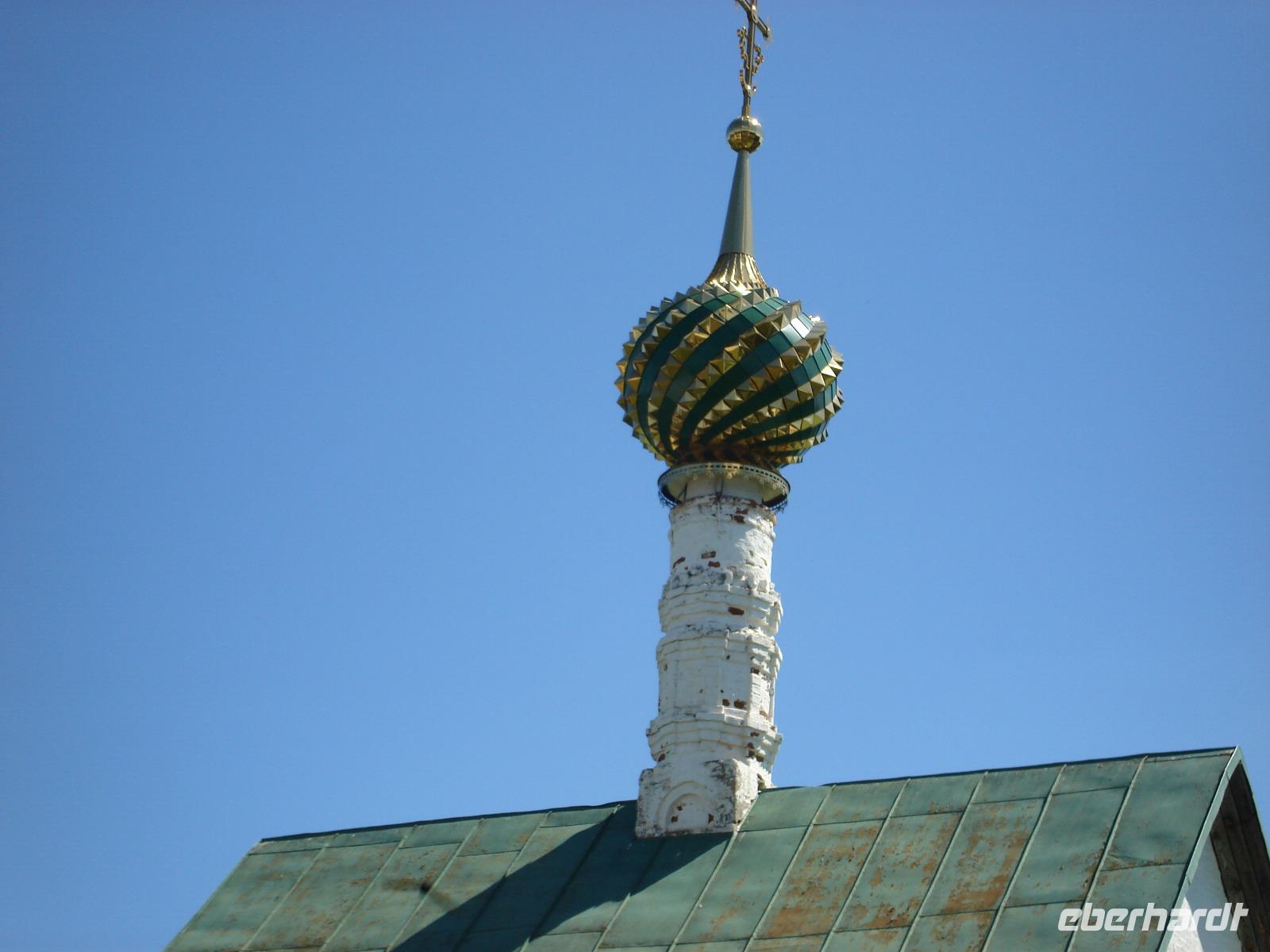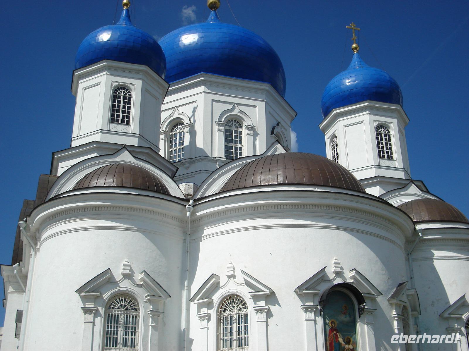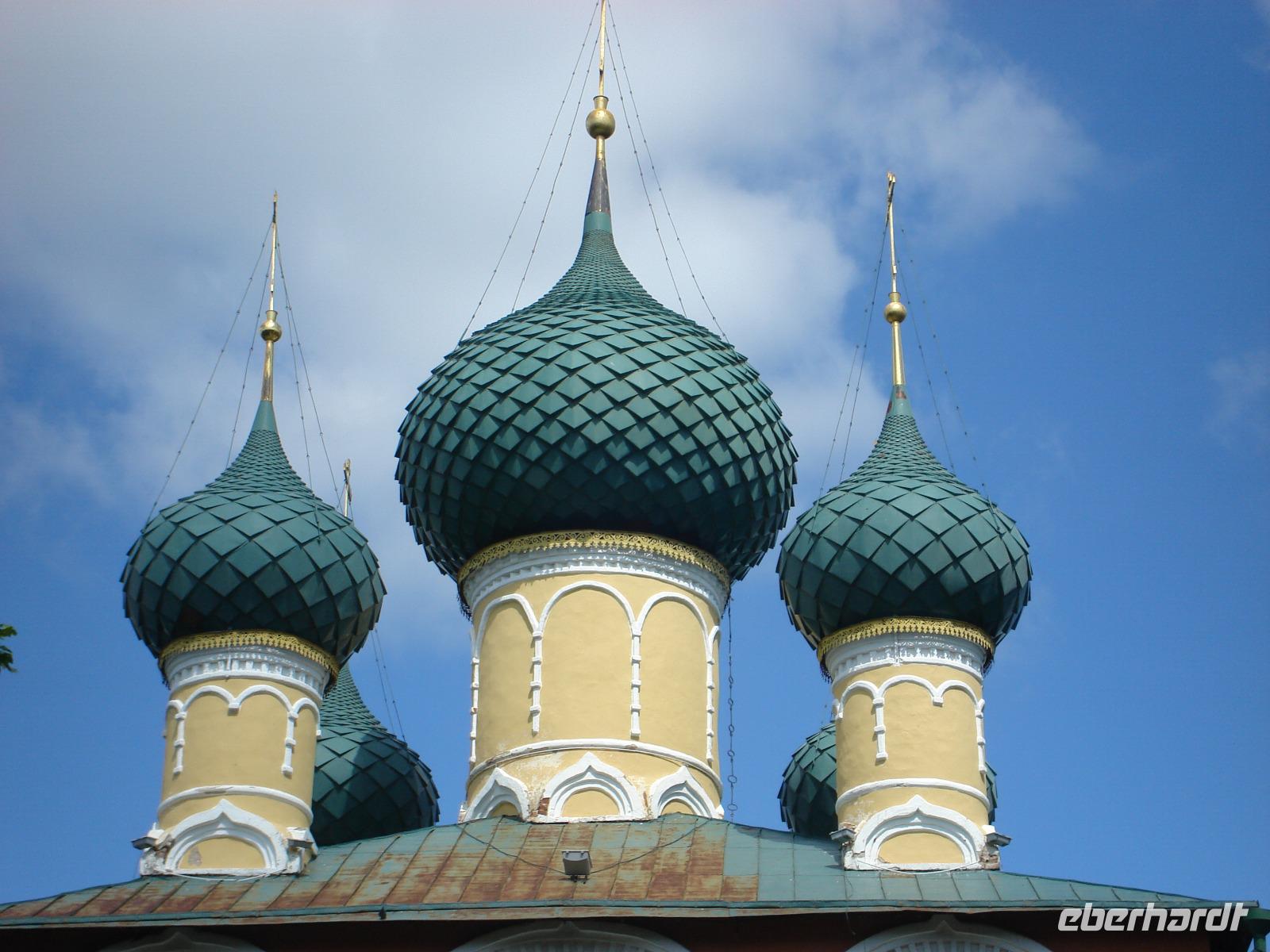 Wir hatten heute noch viel vor. Also bestiegen wir unseren Bus, in dem unser Fahrer Vladimir uns schon erwartete, und weiter ging es nach Tutajew, auch an der Wolga gelegen. Überhaupt gefielen uns die Fahrten über Land sehr, denn so konnten wir auch einen Eindruck von der Umgebung gewinnen. Und wir fragten unsere Oksana auch immer wieder zu allen möglichen Themen. Heute war die Religion an der Reihe.