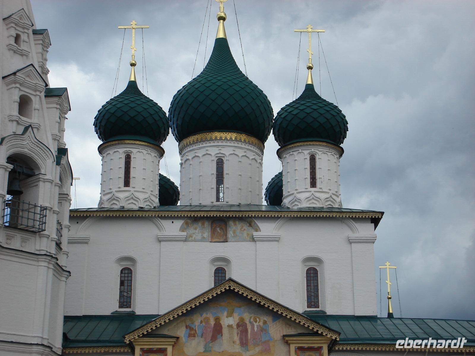 Anschließend besuchten wir die Prophet-Elias-Kirche - die architektonische Perle der Stadt schlechthin. Auch hier erklärte Galina alles ganz genau. Ein kleiner Chor stand schon bereit, und wir hörten einen wunderbaren Gesang.