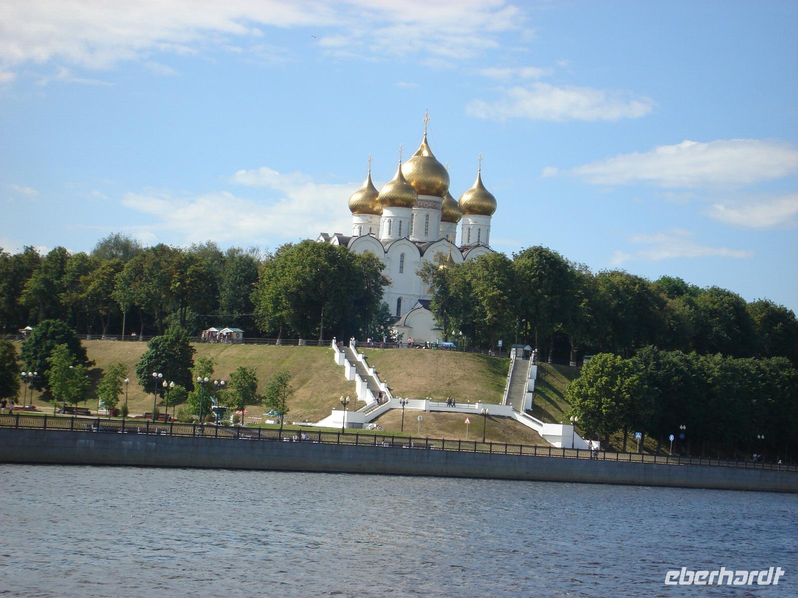 Weiter ging unsere Tour zur wiedererbaute Mariä-Entschlafens-Kathedrale, die weithin sichtbar ist. Anschließend genossen wir die herrliche Aussicht auf die Wolga und die schöne Uferpromenade.