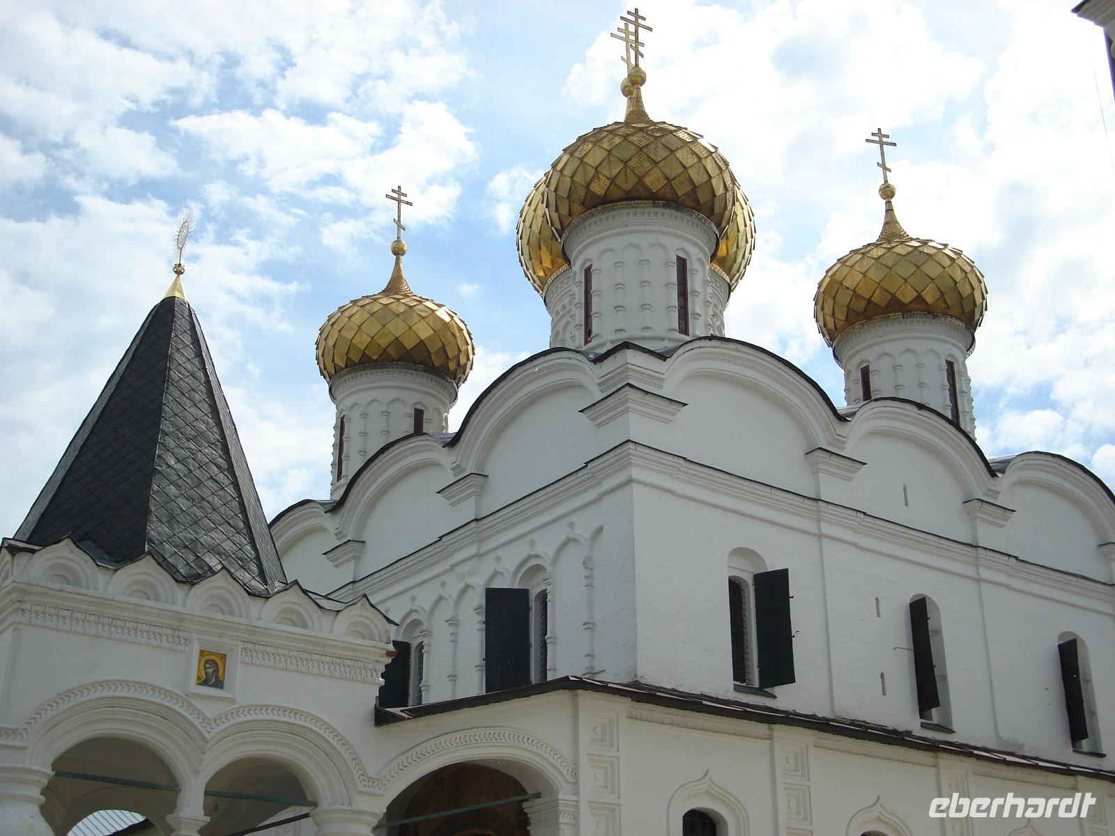 Kostroma gilt als die Wiege der Romanow-Dynastie. Hier im Kloster versteckte sich vor dem Zorn der Godunows einst der 16-jährige Michael Fedorowitsch Romanow, der spätere Gründer der mächtigen Zarendynastie. Unsere örtliche Führerin erzählte uns alles ganz genau. Über die russische Ikonographie wussten wir inzwischen schon allerhand, stellten wir immer wieder fest.