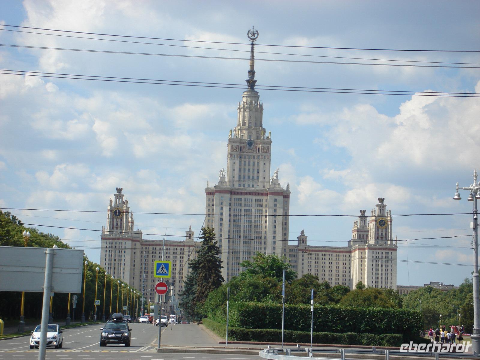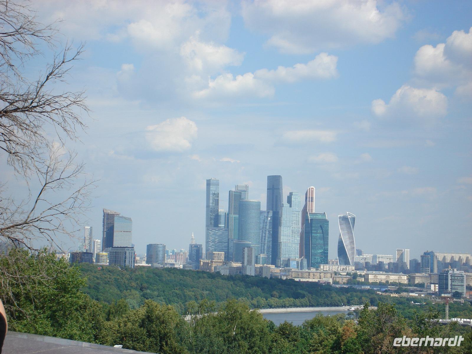 Heute stand eine Stadtrundfahrt auf unserem Programm. Oksana erklärte uns Geschichte und Gegenwart der Hauptstadt Russlands, zeigte und erklärte uns die wichtigsten Sehenswürdigkeiten. Wir sehen auf den Sperlingsbergen die beeindruckende Lomonossow-Universität, und von den Sperlingsbergen aus einige der zahlreichen, in der Stadt verstreut liegenden Hochhäuser aus der Stalin-Zeit. Von hier oben hatten wir einen wunderbaren Panorama-Blick auf Moskau, das alte wie das neue, auf die City, die das moderne Moskau verkörpert.