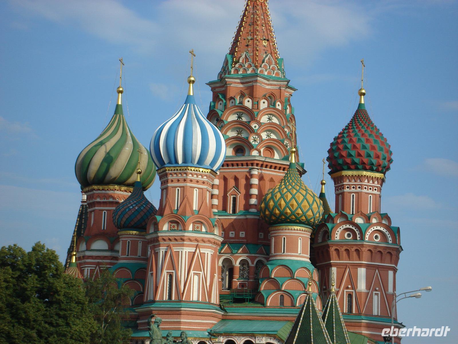 Nun nehmen wir uns die Basiluis-Kathedrale [russ. Chram Vasilija Blažennogo] vor, auch ein Schmuckstück mit überaus reicher Geschichte, die uns Oksana erklärt. Dieses architektonische Meisterwerk gilt als eines der Wahrzeichen Moskaus: Die Kathedrale wurde im Auftrag von Iwan dem Schrecklichen (IV.) zwischen 1555 und 1561 gebaut und ist seinem Sieg über die Goldene Horde gewidmet. Der Legende nach war Iwan der Schreckliche so beeindruckt von der Schönheit der Kathedrale, dass er befahl, den Architekten zu blenden, um sicher zu sein, dass dieser nicht in der Lage sein würde, ein zweites, ähnlich schönes Bauwerk zu schaffen.