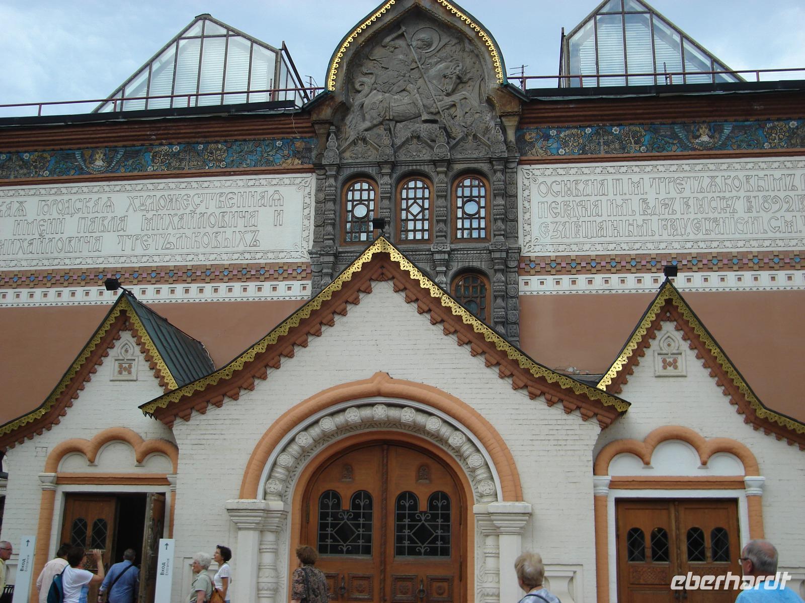 Gleich am Morgen stand zunächst ein Besuch der Tretjakow-Galerie [russ. Tretjakovskaja Galereja] auf dem Programm, einer der größten und berühmtesten Kunstsammlungen in Russland und auch der Welt. Neben der Alten, gibt es noch eine Neue Tratjakow-Galerie mit Werken des 20. Jh. Die müssen wir uns für die Freizeit am Nachmittag oder aber für den nächsten Moskau-Besuch aufheben. Über 140.000 Werke der Malerei, Graphik und Bildhauerei sind in der Tretjakow-Galerie versammelt, darunter auch Ikonen von Andrej Rubljow und die Gemälde der Peredwischniki-Maler [russ.: Peredvižniki], allesamt Meisterwerke der Weltkultur.