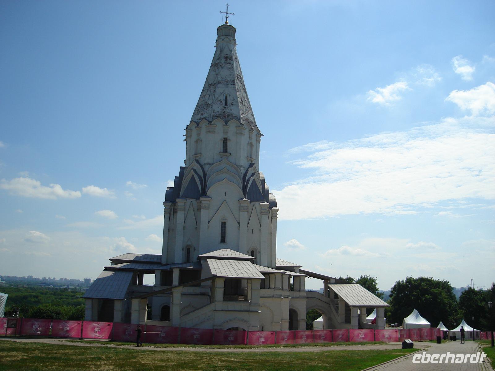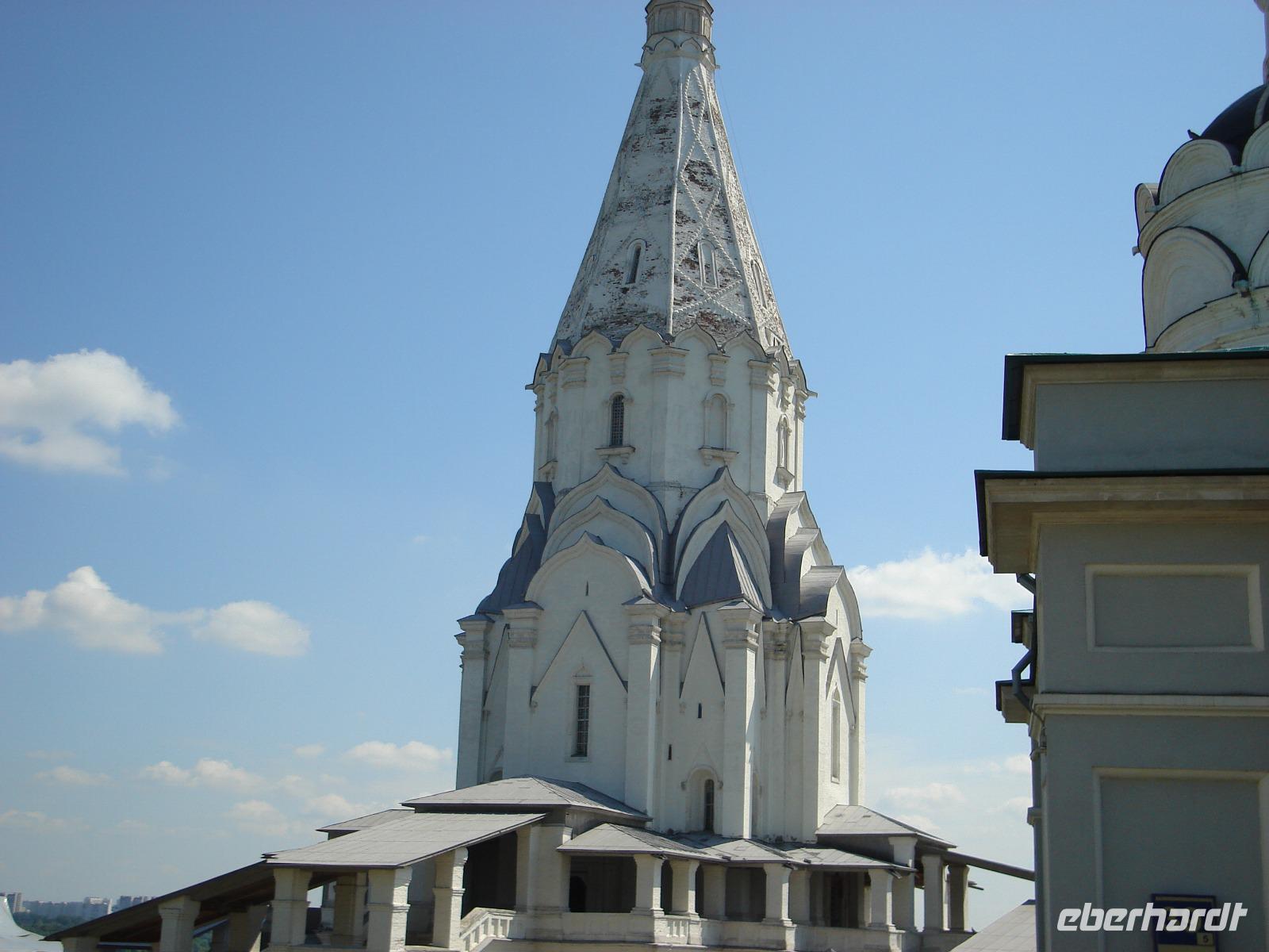 Nach dem Frühstück fuhren wir hinaus nach Kolomenskoje im Südosten der russischen Hauptstadt, oberhalb des Moskwa-Flusses gelegen. Hier befindet sich die einstige Sommerresidenz der russischen Fürsten und Zaren: Hier haben u.a. Wassili III., Iwan der Schreckliche (IV.), Peter I., Katharina die Große und Alexander I. gewohnt.
